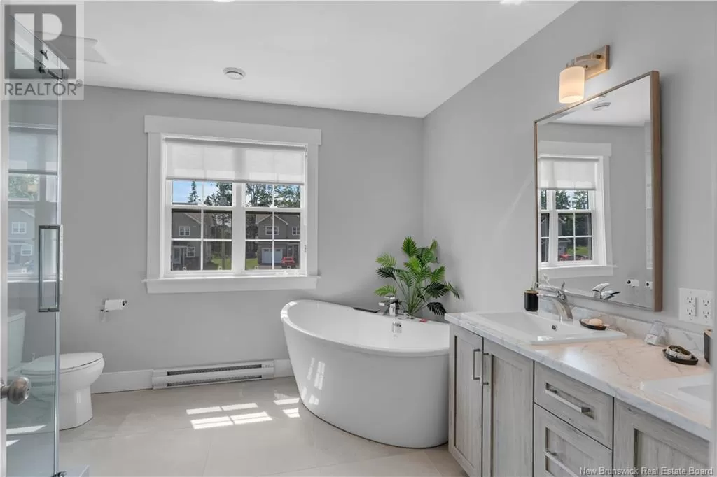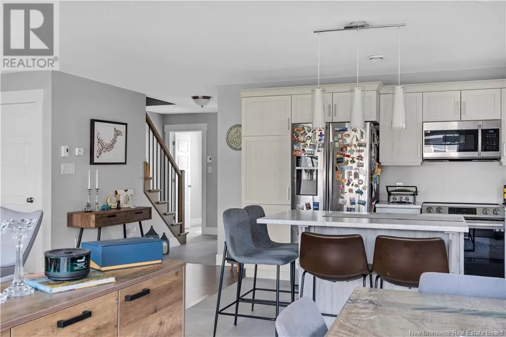 Welcome to 94 Bastarache/ Bienvenue au 94 Bastarache, this stunning executive semi-detached home with garage offers like-new living in a quiet cul-de-sac, perfect for families or anyone seeking comfort and style. Built in 2022 and first occupied in May 2023, the home features three spacious levels, including a fully finished basement completed in early 2023. The bright and open main floor welcomes you with a stylish living room, a comfortable dining area, and a fully equipped kitchen featuring an induction stove, large Samsung fridge, oven, microwave, and dishwasher, all under warranty.To complete the main floor, you'll find a convenient half bath near the front entrance. Step out to a large backyard patio, perfect for relaxing or entertaining, and enjoy the painted front porch with railing. The upper floor boasts three large bedrooms, including a primary suite with a walk-in closet, a modern bathroom with glass shower and soaker tub, plus a laundry closet with Samsung washer and dryer (still under warranty). The basement adds a fourth bedroom, full bathroom, cozy family room, and two closed storage rooms. The garage provides ample space for a vehicle and storage. Located within a short distance to grocery stores, parks, restaurants, trails, and a state-of-the-art aquatic centre, this modern home is move-in ready and designed for easy, comfortable living. Contact your REALTOR® to book your private showing today! (id:27476)