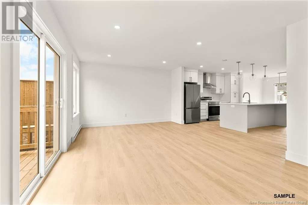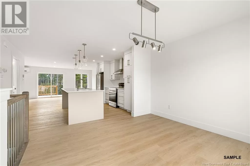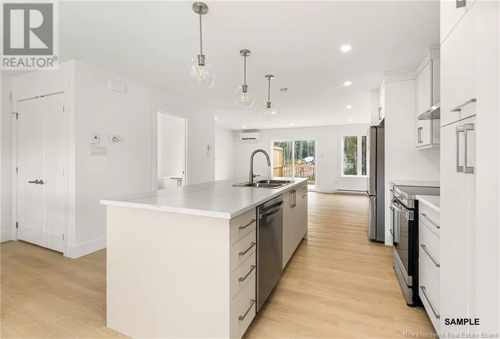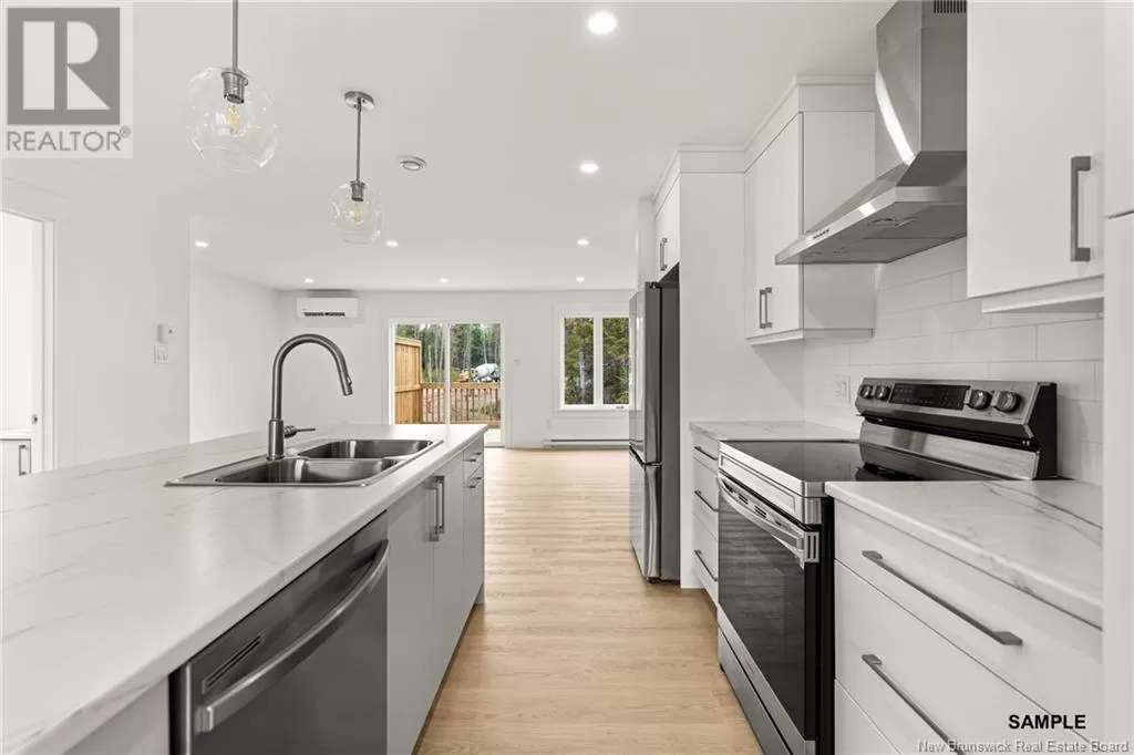 From Dieppe Blvd, turn onto Elsliger Street. MODERN MIDDLE UNIT TOWNHOUSE WITH PAVE AND LANDSCAPING INCLUDED IN DIEPPE! Located on the sought-after ELSLIGER street, this TURN KEY home is within walking distance to Ecole Antonine Maillet et Ecole Le Marais and within easy access to major highways, airport, daycares, walking trails and many other amenities. The main level offers an OPEN CONCEPT DESIGN with front dining room that flows into the CENTER KITCHEN WITH LARGE ISLAND and lots of cabinetry which overlooks the large living area. Patio doors lead you the back deck where you can enjoy the BACKYARD. Half bath completes this level. Down the hardwood staircase, you will find front primary bedroom, full bathroom with double vanity, laundry closet, two additional bedrooms and storage room. These quality built homes offers lots of extras including PAVED DRIVEWAY, FULLY LANDSCAPED, KITCHEN APPLIANCES, MINI SPLIT HEAT PUMP for your comfort and 8 year new LUX home warranty. HST rebate to be assigned to vendor. READY FOR IMMEDIATE OCCUPANCY AND QUICK CLOSING. Call for more details! (id:27476)