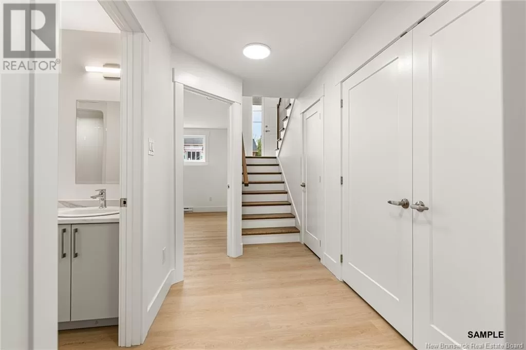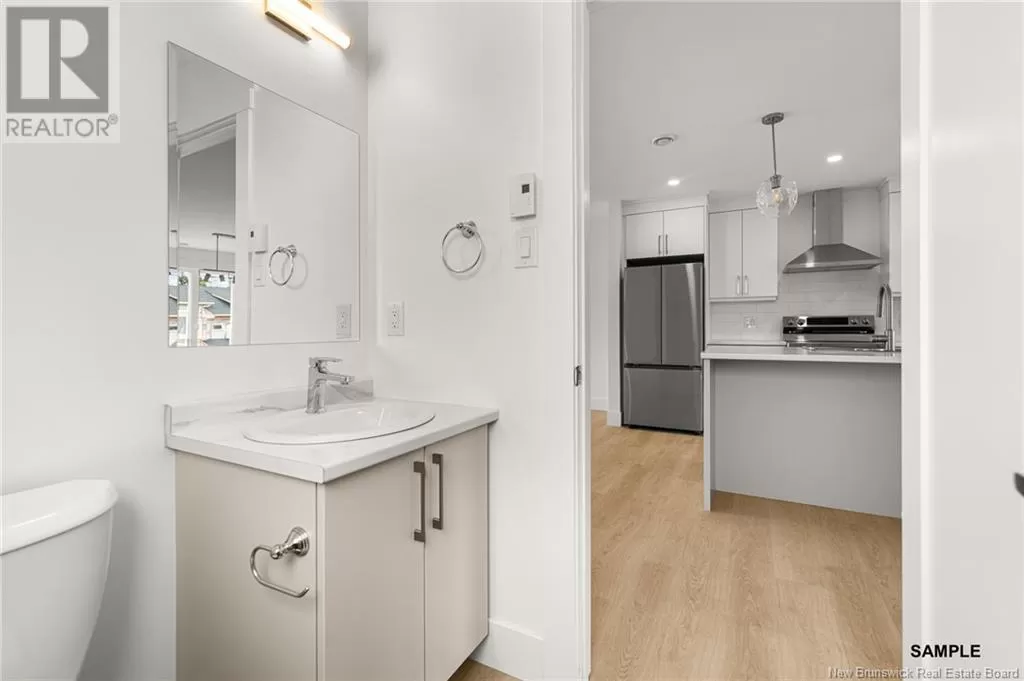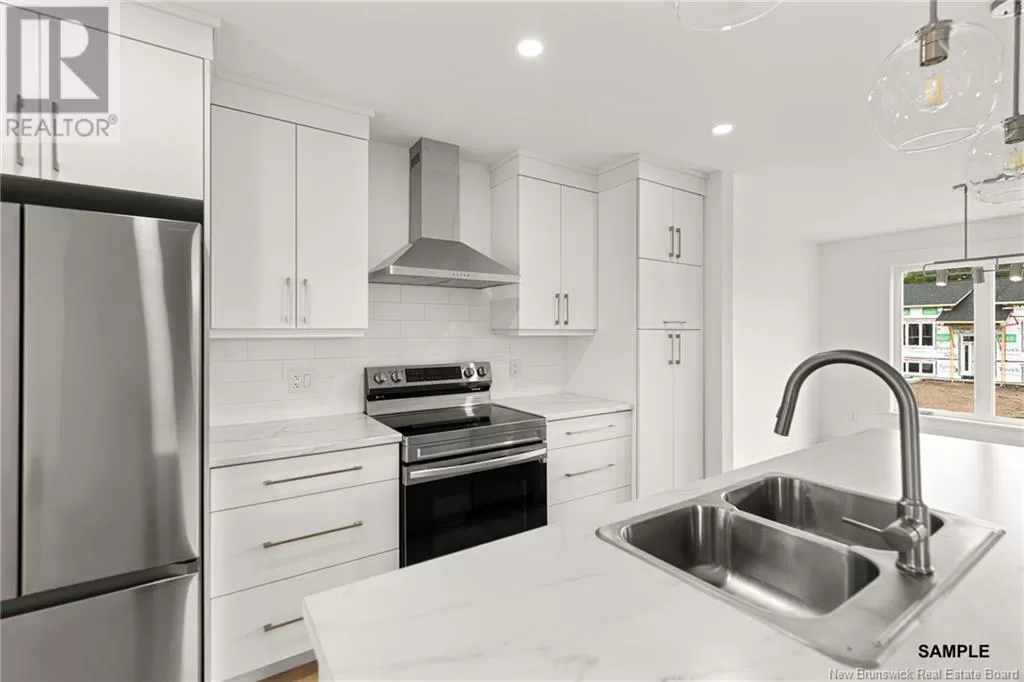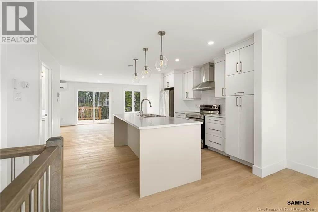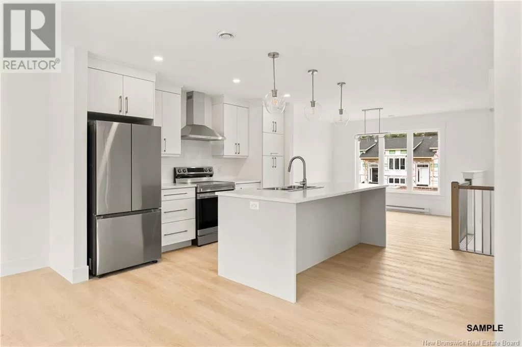 From Dieppe Blvd, turn onto Elsliger Street. MODERN MIDDLE UNIT TOWNHOUSE WITH PAVE AND LANDSCAPING INCLUDED IN DIEPPE! Located on the sought-after ELSLIGER street, this TURN KEY home is within walking distance to Ecole Antonine Maillet et Ecole Le Marais and within easy access to major highways, airport, daycares, walking trails and many other amenities. The main level offers an OPEN CONCEPT DESIGN with front dining room that flows into the CENTER KITCHEN WITH LARGE ISLAND and lots of cabinetry which overlooks the large living area. Patio doors lead you the back deck where you can enjoy the BACKYARD. Half bath completes this level. Down the hardwood staircase, you will find front primary bedroom, full bathroom with double vanity, laundry closet, two additional bedrooms and storage room. These quality built homes offers lots of extras including PAVED DRIVEWAY, FULLY LANDSCAPED, KITCHEN APPLIANCES, MINI SPLIT HEAT PUMP for your comfort and 8 year new LUX home warranty. HST rebate to be assigned to vendor. READY FOR IMMEDIATE OCCUPANCY AND QUICK CLOSING. Call for more details! (id:27476)