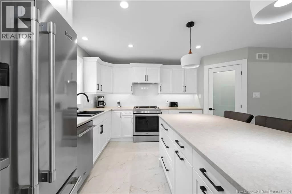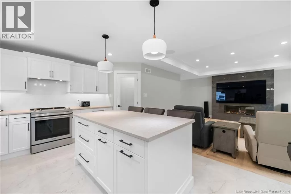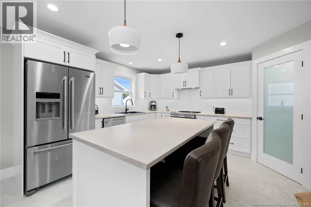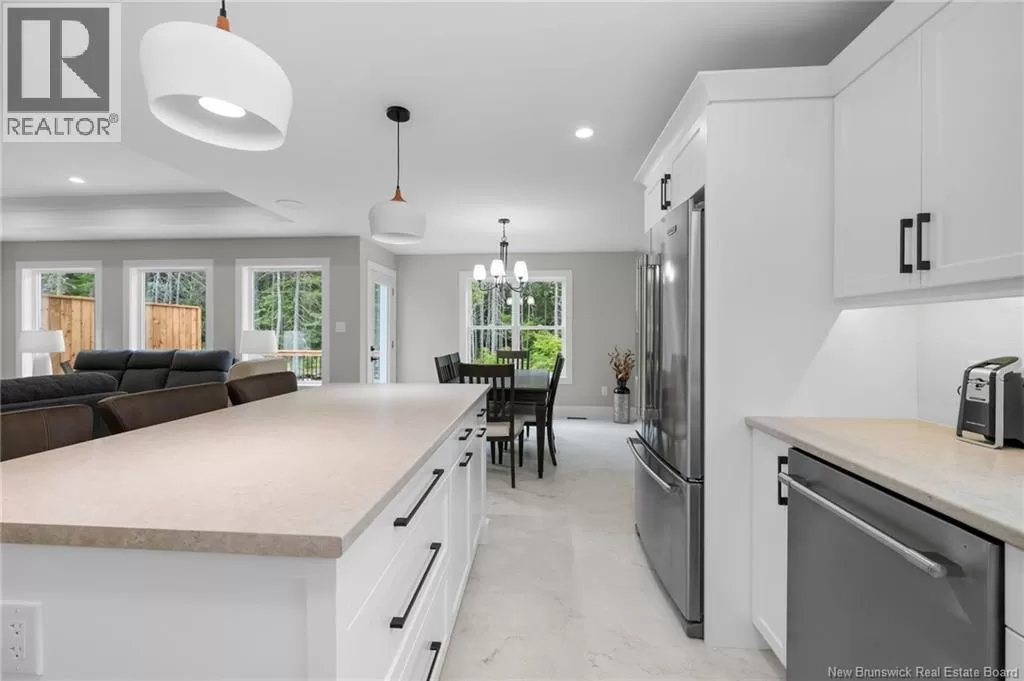 From Amirault, turn onto Carter Street. *Click on link for 3D virtual tour of this property* Welcome to 32 Carter in Dieppe, a spacious, climate-controlled bungalow offering comfort, style & convenience. From the moment you step inside, large windows fill the foyer & open-concept living area with natural light. The kitchen is both functional & elegant, featuring ample white cabinetry, a centre island, sleek ceramic backsplash & a generous pantry for all your storage needs. Flowing seamlessly into the dining area & living room, the space is anchored by a cozy fireplace with a modern accent wall. The main level offers 3 bedrooms, including a primary suite complete with walk-in closet & 3-piece ensuite bath. A 4-piece family bath & main floor laundry add to the homes practicality. The lower level remains unfinished, ready to be customized to suit your lifestyle. Outdoors, enjoy a large patio overlooking the private backyard ideal for relaxing or entertaining. Additional features include a ducted heat pump for efficient year round comfort, a double car garage & peace of mind with new home warranty coverage. Dont miss this opportunity, book your private showing today! HST Rebate to seller. (id:27476)