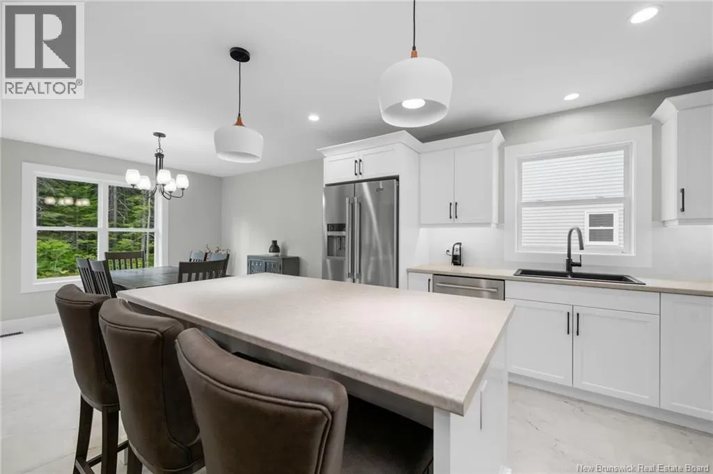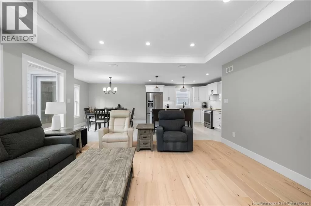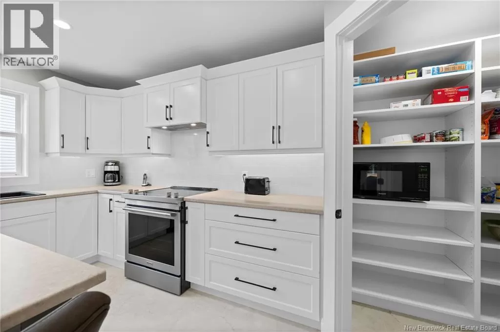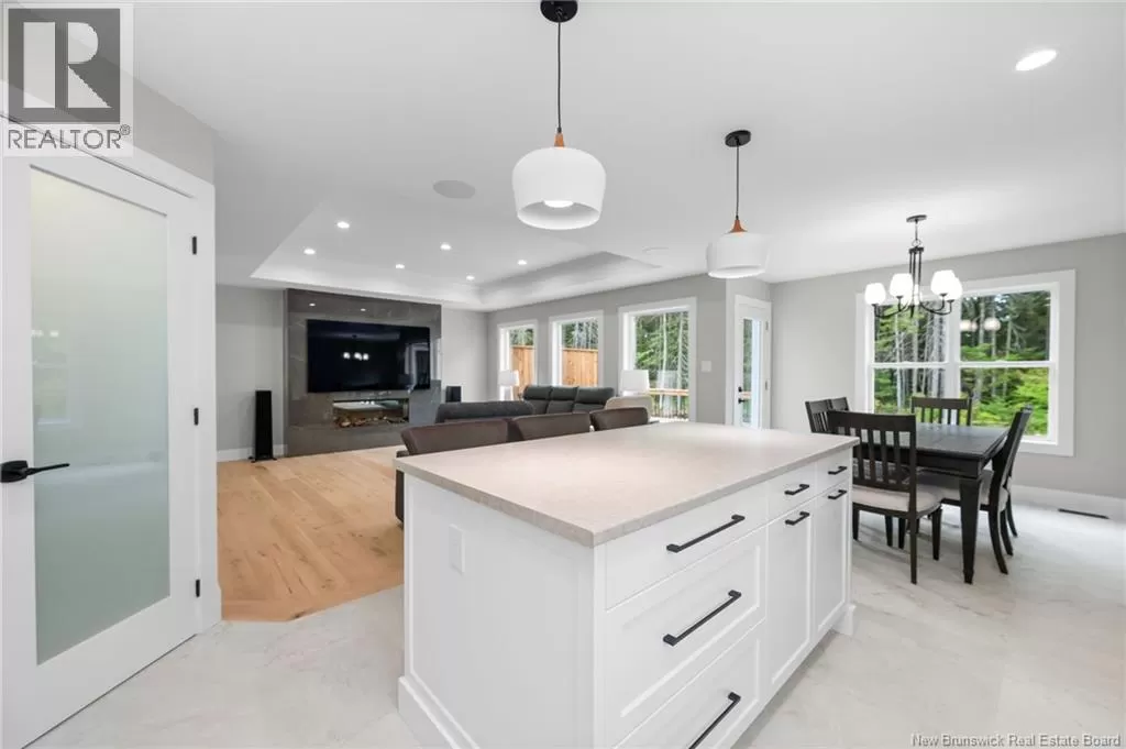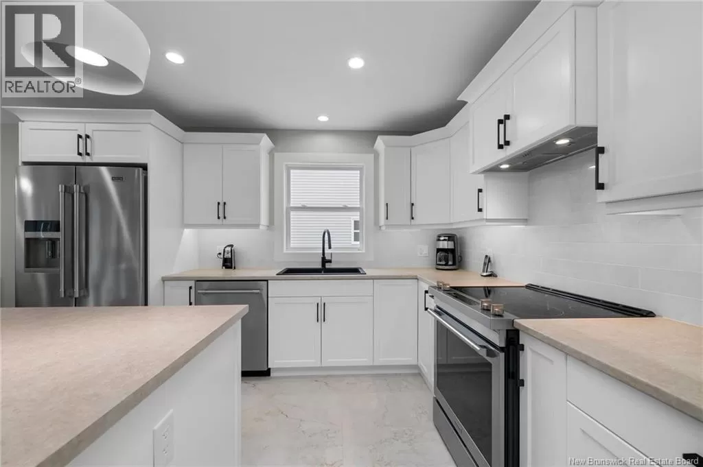 From Amirault, turn onto Carter Street. *Click on link for 3D virtual tour of this property* Welcome to 32 Carter in Dieppe, a spacious, climate-controlled bungalow offering comfort, style & convenience. From the moment you step inside, large windows fill the foyer & open-concept living area with natural light. The kitchen is both functional & elegant, featuring ample white cabinetry, a centre island, sleek ceramic backsplash & a generous pantry for all your storage needs. Flowing seamlessly into the dining area & living room, the space is anchored by a cozy fireplace with a modern accent wall. The main level offers 3 bedrooms, including a primary suite complete with walk-in closet & 3-piece ensuite bath. A 4-piece family bath & main floor laundry add to the homes practicality. The lower level remains unfinished, ready to be customized to suit your lifestyle. Outdoors, enjoy a large patio overlooking the private backyard ideal for relaxing or entertaining. Additional features include a ducted heat pump for efficient year round comfort, a double car garage & peace of mind with new home warranty coverage. Dont miss this opportunity, book your private showing today! HST Rebate to seller. (id:27476)