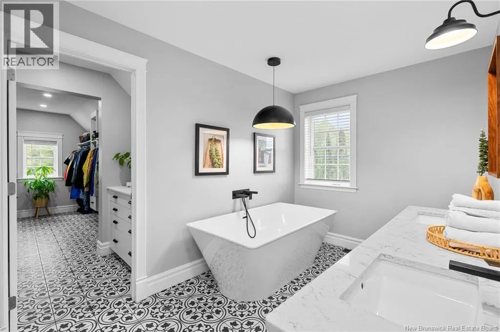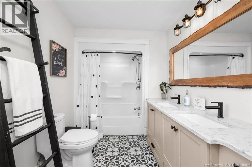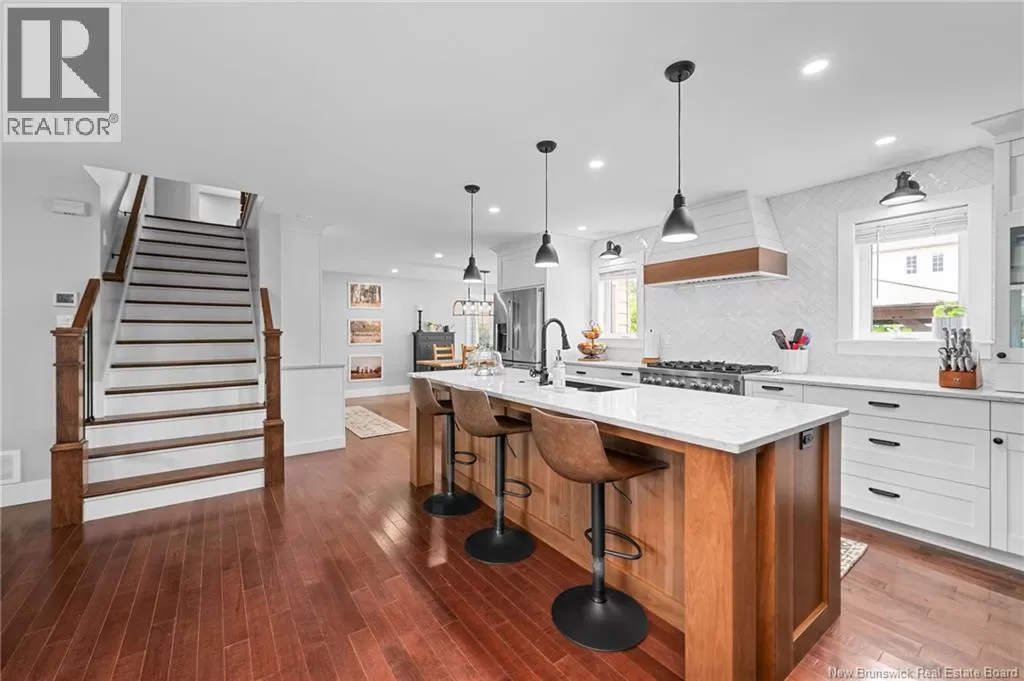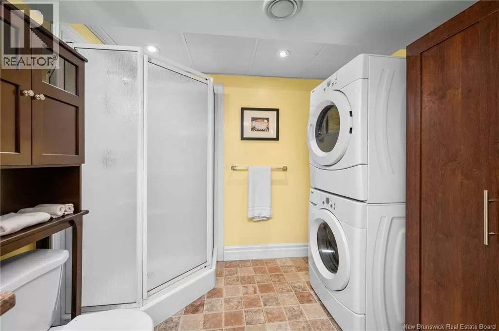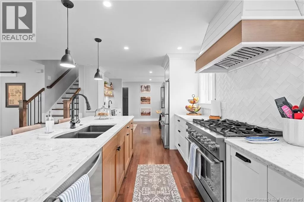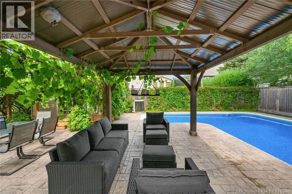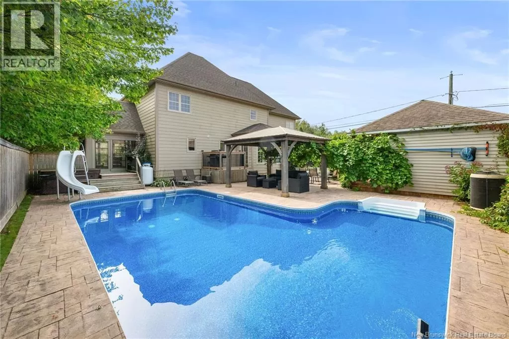 From Champlain Street turn onto Acadie Ave/NB-106 E. Turn right onto Pointe Aux Renards St. Then turn right onto Gillespie St. Home will be on the right hand side on the corner of Gillespie Street and Rue Thibeault. Driveway entrance is on Rue Thibeault side. Welcome to 53 Gillespie Street in Dieppe! This exceptional two-storey home with an in-law suite sits on a desirable corner lot near the Petitcodiac River. From first glance, the curb appeal shines with a new front porch and beautiful landscaping. Inside, the main level offers a warm living room with hardwood floors and a propane fireplace with wood storage niches. The recently renovated open kitchen features quartz countertops, a large island, walk-in pantry with sliding barn doors, propane stove, and a shiplap range hood that ties into the white and natural wood design. The dining area includes floor-to-ceiling windows, a coffee bar with wine fridge, and access to the backyard. A cozy 3-season sunroom, half bath, and office complete the main level. Upstairs, the large primary suite boasts a luxurious 5-piece ensuite with double vanity, soaker tub, tiled shower with two detachable heads and a rain shower, plus a spacious walk-in closet. Four additional bedrooms and a 5-piece bath with laundry area finish off the upper floor. The lower level offers a non-conforming bedroom currently used as a gym, and a separate in-law suite with a full kitchen, living room with electric fireplace, bedroom, full bath, and laundry. The private, fully fenced backyard is an absolute oasis with a stamped concrete patio surrounding an in-ground pool, hot tub, gazebo, and 12x16 storage shed. An attached triple car garage (extended in 2020) and a new ducted heat pump (2024) complete this dream home!! (id:27476)