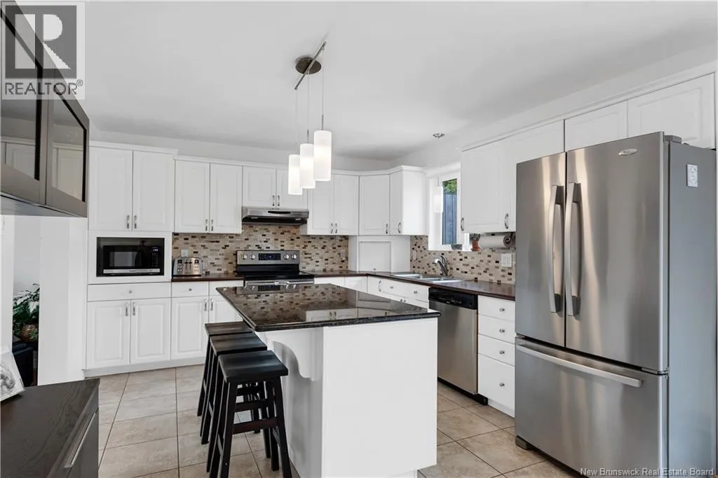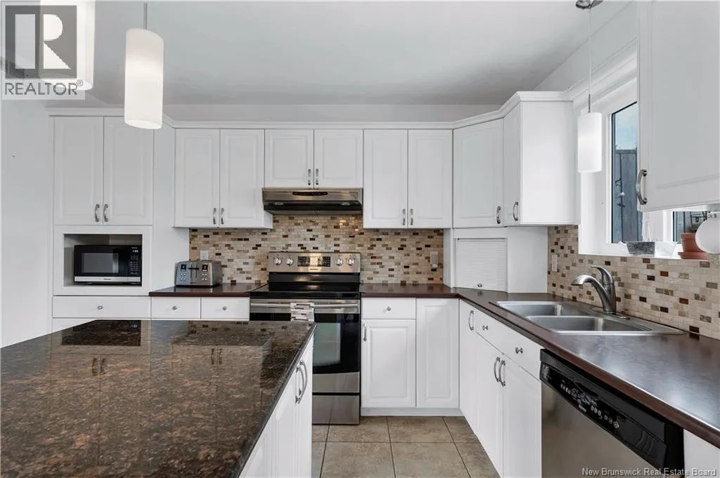 From Champlain St., turn at the Starbucks onto rue Du College. At the end, turn Right onto Gaspe. Civic #409 will be on your left. WELCOME/BIENVENUE to 409 Gaspé, where your quality-built OASIS awaits you! This turn-key property is sure to impress from the moment you approach the picture-perfect front yard! Perfectly landscaped, you'll notice the maintenance-free composite decking as a welcoming sight. Entering the front door, the bright and spacious entrance leads to a cozy living room with crown moulding. Towards the back of this immaculate home, you're invited into a spacious kitchen and dining room complete with a huge GRANITE island, wired for all your cooking needs, and with white cabinets spanning the heart of this home! The impressive multi-level back deck checks all the boxes with a remote controlled awning, ambiance lighting and privacy wall! The backyard has been professionally landscaped (with mature trees) and is completely fenced. A half bath & laundry room complete the main level. Upstairs, the huge primary suite has a walk-in closet and an extra door to the 4-pc family bathroom, updated with glistening tile flooring and a quartz countertop. Two addition well-sized bedrooms complete the upstairs. The fully-finished basement has an extra large family room, a non-conforming bedroom and another 3pc bathroom with a standup shower. Attached garage is spotless with an epoxy floor & upgraded door opener. What's more? Recently updated mini spit heat pump, HVAC unit, flooring, storage shed, and has been fully repainted! This home is ideally located for the ultimate in quiet, family-focused living. (id:27476)