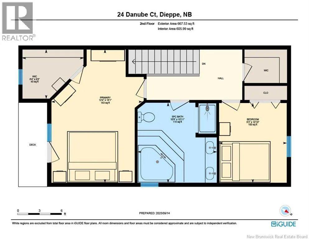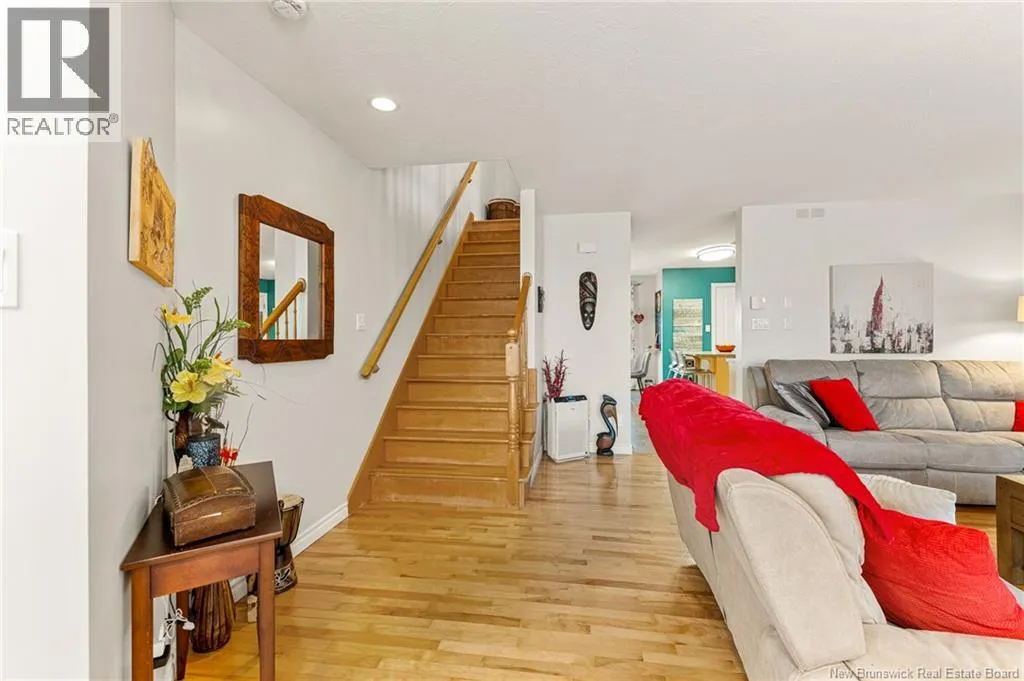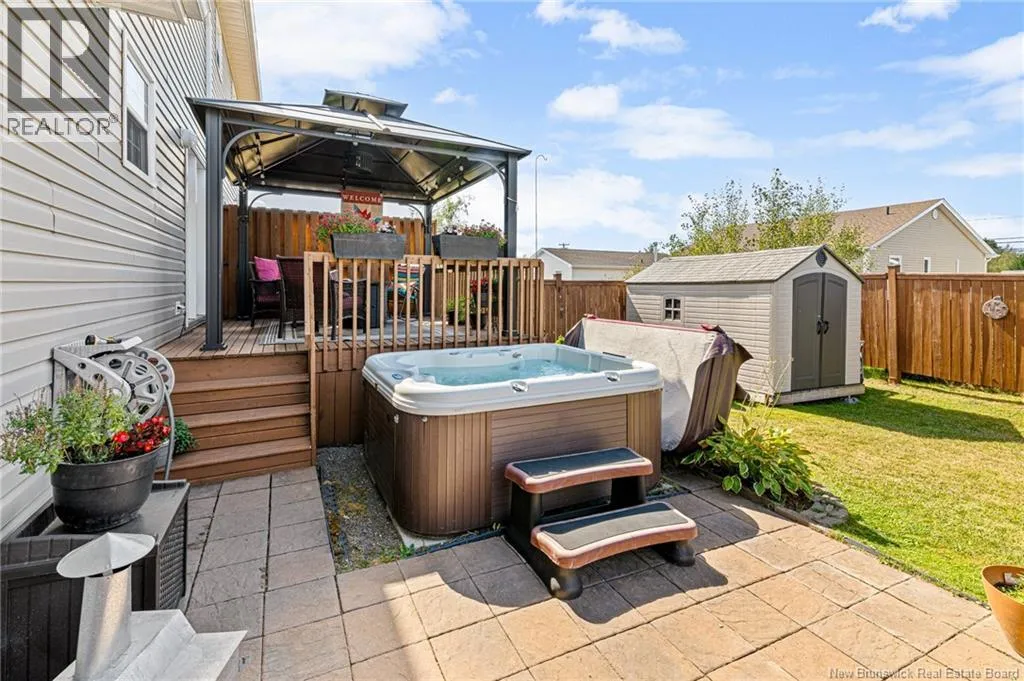 Off Chartersville, turn left onto Vautour, Left on Fournier & then left again on Danube. Welcome to 24 Danube a charming semi-detached home with attached garage, located on a quiet court in Dieppe. This well-maintained property features a brand-new garage door and a double paved driveway. Inside, youll find a spacious living room with hardwood floors, leading into an open-concept kitchen complete with a center island, birch cabinetry, pantry, and a convenient half bath. Upstairs, the primary bedroom impresses with a walk-in closet and patio doors to a private balcony. A second bedroom and a luxurious 5-piece bathroom complete the upper level, offering a double vanity, stand-up shower, and a large whirlpool tub. The finished basement adds even more living space with a large family room, dedicated office, and laundry/storage area. Outside, enjoy the FULLY FENCED YARD, ideal for kids or pets, plus a HOT TUB for year-round relaxation. Additional features include: 3 mini-split heat pumps, a 2-year-old roof, and excellent curb appeal in a desirable neighborhood. Call today for more info or for your private viewing. For your convenience floor plan and virtual tour attached. (id:27476)