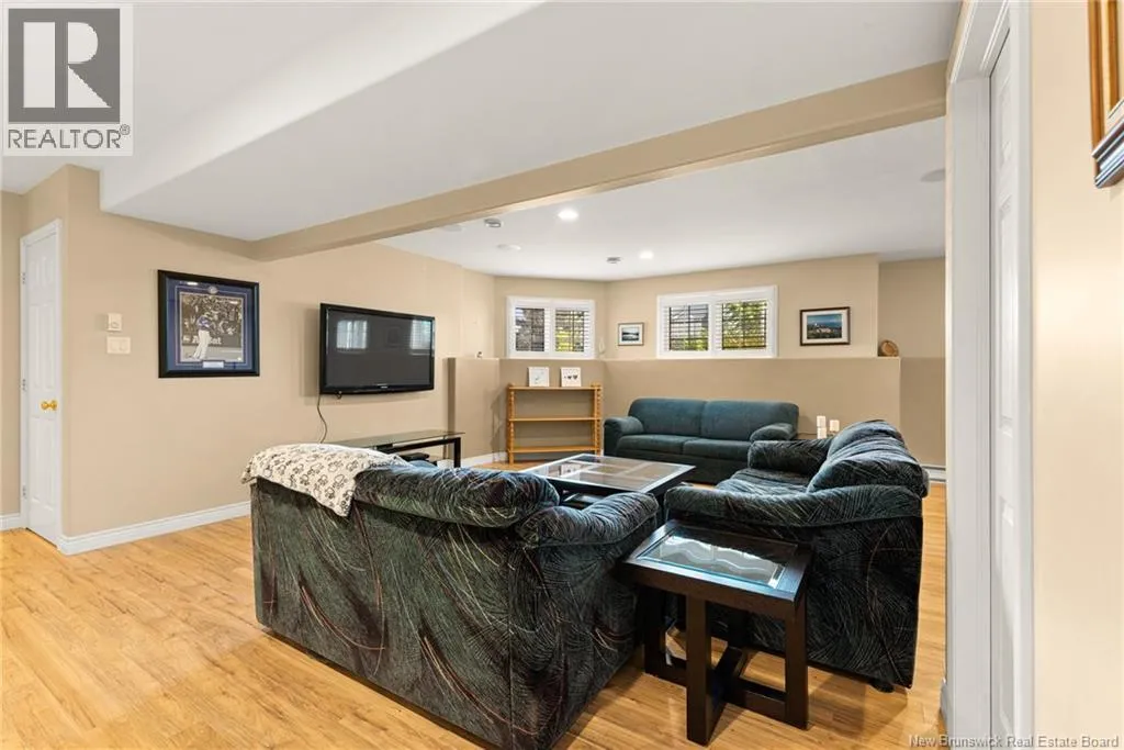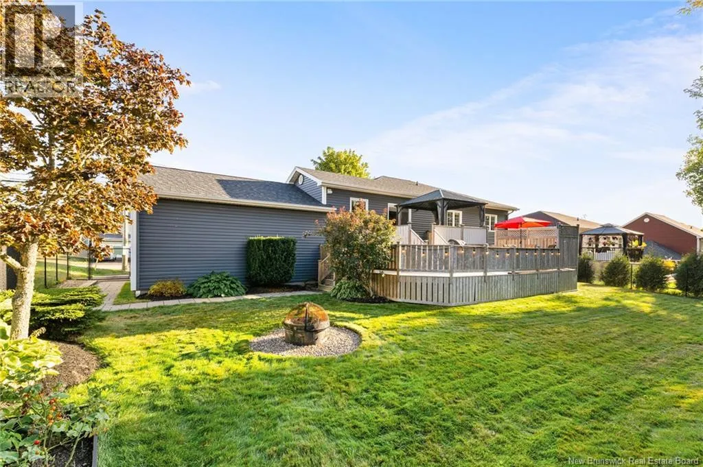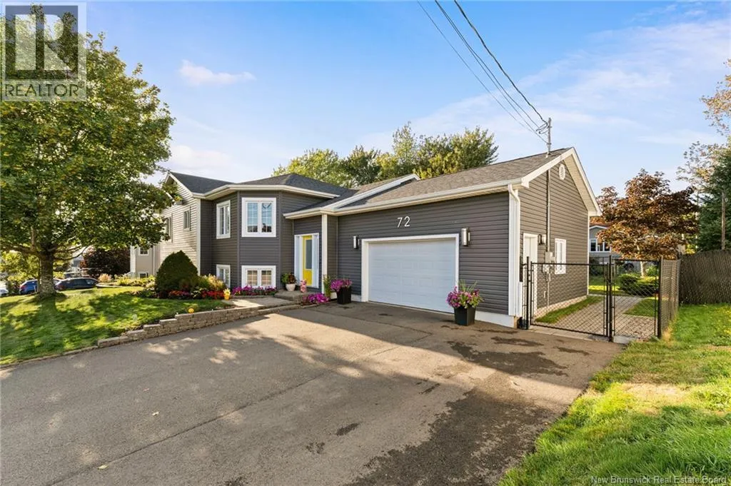 Take Amirault Street past Fox Creek Rd and make a left onto Pelagie. Welcome to 72 Pelagie in Dieppe. This meticulously maintained home with FULLY DUCTED FORCED AIR CENTRAL HEAT and an ATTACHED DOUBLE GARAGE has been tastefully updated through the years and radiates pride of ownership. The bright, open-concept main level features an impressive kitchen with contemporary shaker cabinets, a quartz island, KitchenAid stainless steel appliances, new ceramic tile, and ample storage, creating the ideal gathering place for family and friends. The dining area flows seamlessly into an expansive back deck and screened gazebo, overlooking a manicured, fully fenced yard with easy-care perennials, perfect for outdoor living. Inside, the living room features a striking stone wall with a built-in electric fireplace and a custom wood mantle, blending warmth and modern elegance. Hunter Douglas window coverings, wired speakers, and an alarm system add comfort and security. Down the hall are three generous bedrooms and a renovated, spa-inspired bathroom with in-floor heating, a washer and dryer tucked behind double doors, a quartz vanity, a full wall mirror, custom cabinetry, modern lighting, and porcelain tile. The lower level, featuring oversized windows, expands your lifestyle with a spacious family room and wet bar, two additional large bedrooms, a full bath, and ample storage. Outside, enjoy an extra-wide paved driveway and easy access to ATV trails at the end of the street. This move-in-ready home truly has it all. Equalized billing for heat and lights $397 (id:27476)