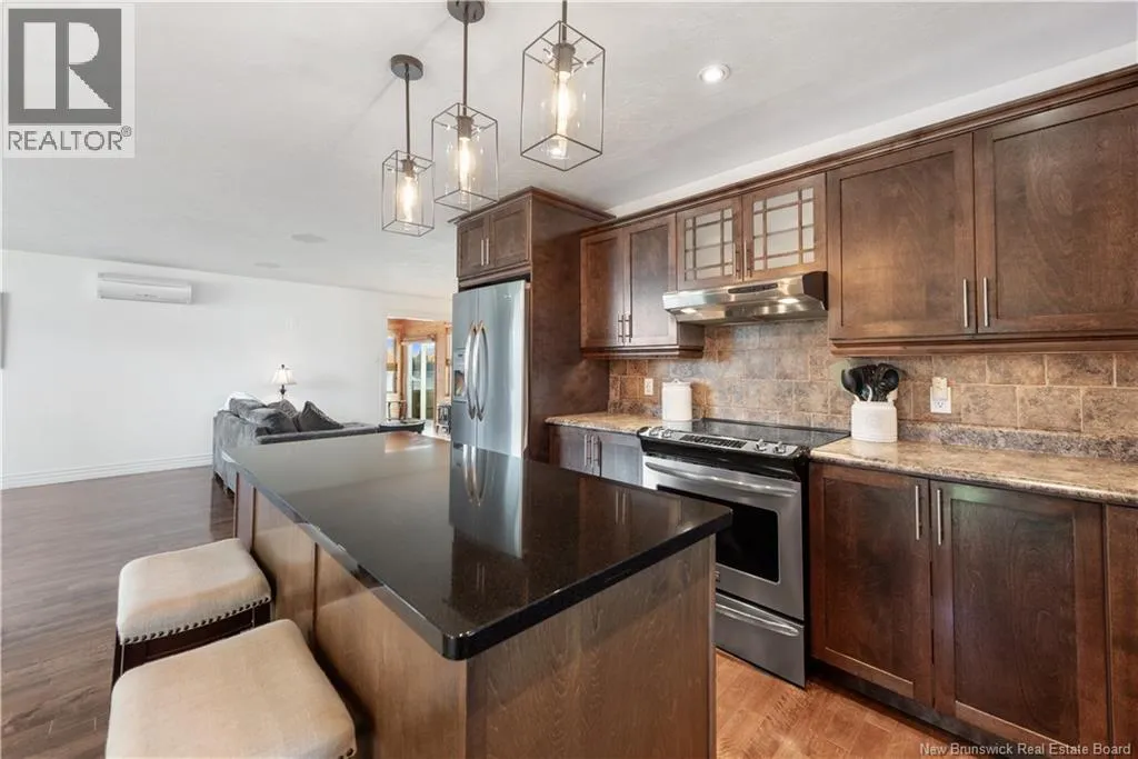 Take Chartersville Road, cross Dieppe Blvd. 799 is on the left. Upon entering this well-maintained home, you are greeted by a spacious foyer. To the right, a large mudroom, ideal for an office or home-based business. Upstairs, the open-concept kitchen, dining, and living areas create a great space for everyday living and entertaining. The kitchen features loads of cabinetry with pull-out shelves, pot drawers, a pantry area, and generous counter space and a stylish backsplash. The island has a granite countertop, wine rack, and lovely pendant lighting over it. The adjoining dining area has a large window which allows for lots of natural light, while the living room features built-in speakers and flows seamlessly into a four-season sunroom. From here, step out to an expansive deck with a 30 round above-ground pool and a sweet pool house. Lets not forget the 24 x 30 detached garageevery mans dream. The main level also includes a spacious primary bedroom, a second bedroom, and a five-piece bath with a granite-topped vanity and two undermounted sinks. The lower level offers a large rec room with a wood stove, a non-conforming bedroom currently used as an office, and another versatile room suitable for a gym, playroom, or another bedroom. Additional highlights include four mini-split heat pumps, exterior security cameras (not monitored), new shingles in 2022, a pool liner replaced in 2019, a new pool pump in 2024, fresh interior paint, updated light fixtures, and a new dryer in 2024. A perfect blend of comfort and style. (id:27476)