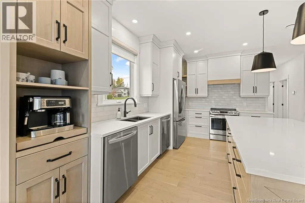 From Bourque St, Turn onto Norbert St, then turn left on Donat and lastly, turn right on Louis-Arthur, the house will be on the right. WALKOUT BUNGALOW | INCOME POTENTIAL | DIEPPE CHARTERSVILLE AREA | NEAR FOX CREEK GOLF CLUB Welcome to this stunning custom-built walkout bungalow showcasing premium finishes, bright open spaces, and modern comfort throughout. The main level features a spacious open-concept design with tray ceiling, electric fireplace, and a gourmet kitchen complete with quartz countertops, two dishwashers, and custom motorized blinds. The dining area opens to a beautiful three-season sunroom overlooking the private backyard ideal for relaxing or entertaining. The main floor also offers two bedrooms and two full baths, including a luxurious 5-piece ensuite with tiled shower and double vanity. The lower level provides excellent flexibility with a walkout design, a large family room with wet bar, three additional bedrooms (one currently used as a gym), and another full bathroom perfect for guests or income potential. Additional highlights include central air heating and cooling, an electrical sub panel, wired for hot tub, and a paved driveway accommodating up to 8 vehicles. (id:27476)