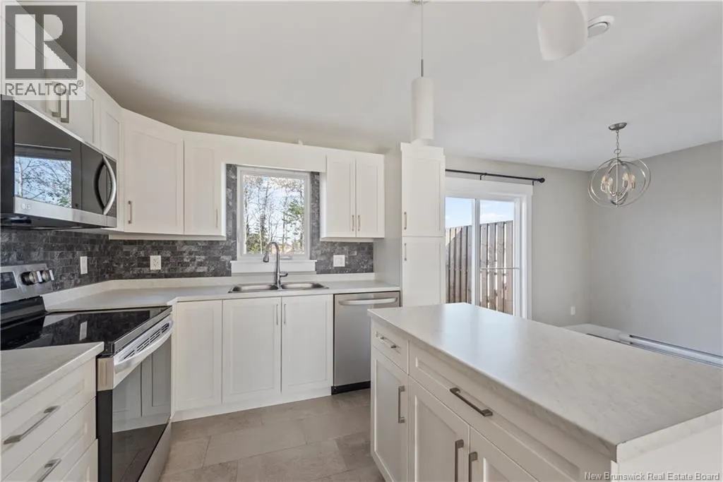 Continue on Rue Champlain/NB-132 E to Alain-Gillette St, Exit the roundabout onto Alain-Gillette St Take Chartersville Rd to Norbert St, Turn right onto Norbert St, Destination will be on the right Welcome to 161 Ernest, a stunning split-entry townhouse perfectly situated in a quiet, family-friendly neighborhood just minutes from Champlain Street. This middle-unit gem offers the perfect blend of style, comfort, and functionalityideal for families, professionals, or anyone seeking modern living in a prime location. Step inside and fall in love with the bright, open-concept design, where every detail has been carefully crafted. The high-end kitchen features sleek white cabinetry, stainless steel appliances, a large center island, and plenty of storageperfect for cooking and entertaining. The kitchen flows seamlessly into the spacious dining and living area, highlighted by a gorgeous accent wall and oversized windows that flood the space with natural light. Step through the patio doors to enjoy your private outdoor oasisa beautiful deck ideal for morning coffee, BBQs, or simply relaxing after a long day. The main level also includes a convenient half bath with laundry, while a mini-split heat pump ensures year-round comfort. On the lower level, youll find a generous primary bedroom with ample closet space, two additional bedrooms, a modern full bathroom, and a storage area. Each room has been designed with comfort and functionality in mind, offering plenty of natural light and a clean, modern aesthetic. Located close to walking trails, bus routes, shopping, schools, and all the fantastic amenities Dieppe has to offer, this home truly has it all. (id:27476)