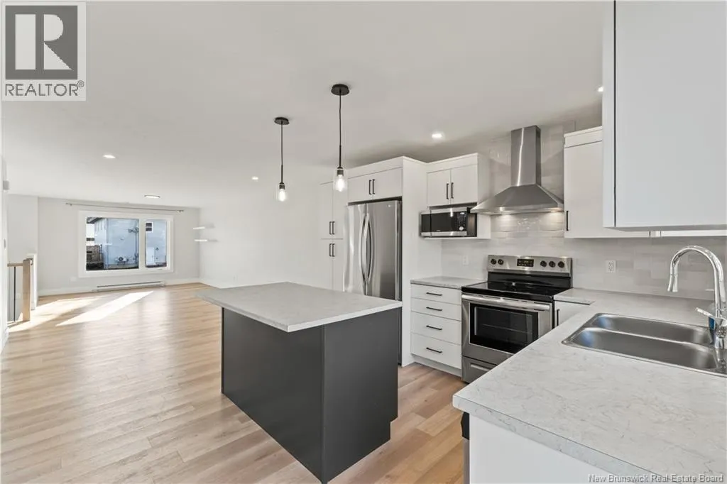 off Melanie, turn onto Delta Welcome to 56 Delta Street, an elegant corner unit townhome in Dieppes prestigious Fox Creek Golf Community. Built in 2023, this 2-level home offers 1,450 sq ft of refined living space with a bright, open-concept layout. The main floor features a sun-filled living room, sleek kitchen with stainless-steel appliances, and a stylish dining area that opens to a private deckperfect for coffee or cocktails. Downstairs, the fully finished lower level includes three spacious bedrooms, a luxe 4-piece bath, and a dedicated laundry area. A second powder room upstairs adds everyday ease. Enjoy ductless heat pump comfort, modern finishes, a double paved driveway, and move-in-ready convenience. Just minutes from Fox Creek Golf Course, scenic trails, Champlain Place, top-rated bilingual schools, and local dining. 56 Delta is where style meets serenity, ideal for first-time buyers or downsizers with elevated tastes. (id:27476)