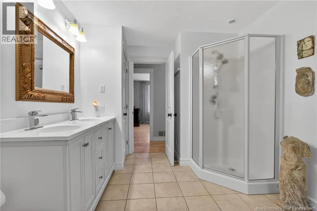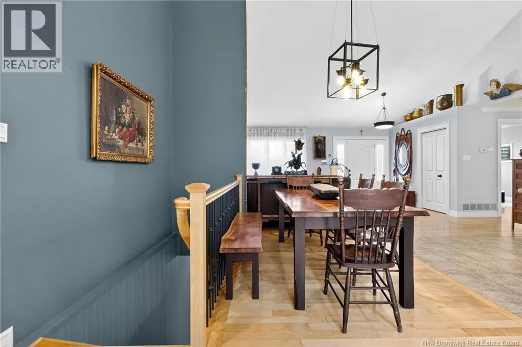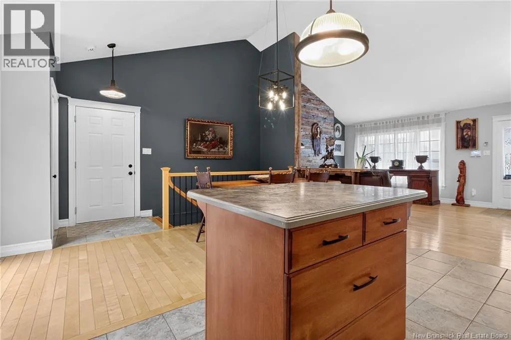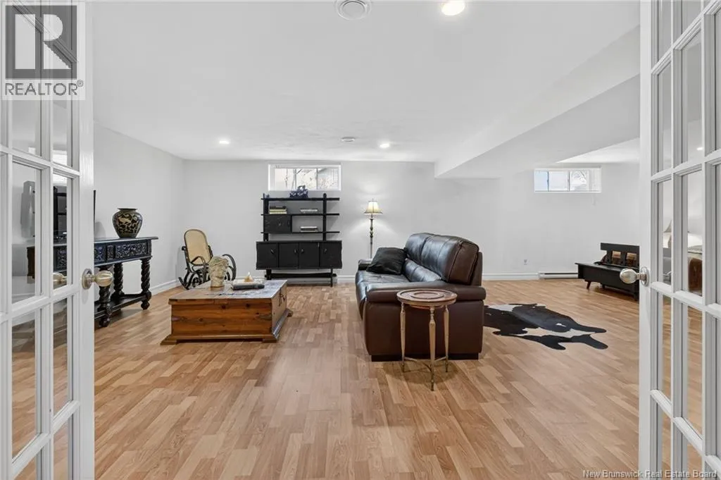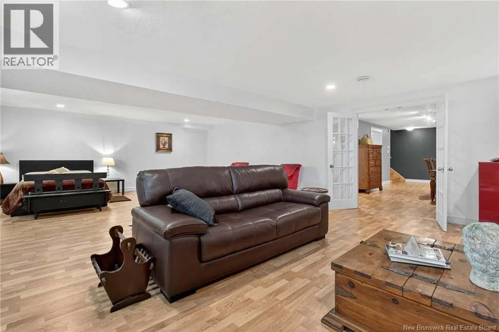 From Amirault St turn onto rue Grande Vallee, house is on the left This beautifully designed bungalow-style home in a highly sought-after Dieppe neighbourhood offers a sense of grandeur the moment you step inside. The main living area is enhanced by soaring cathedral ceilings, warm hardwood floors throughout, and a stunning mantel with natural board details framing the electric fireplace, creating a striking yet inviting focal point. The bright, open-concept living, dining, and large kitchen areas flow seamlessly together, perfect for everyday living and entertaining. The kitchen is ideal for anyone who loves to cook. Patio doors open to a large deck and a beautifully landscaped backyard, offering privacy, space for family gatherings, room for a garden, and an existing shed. The main floor features a spacious primary bedroom with an ensuite and large closet, plus two additional good-sized bedrooms, one currently used as an office. The main bathroom includes a double vanity, corner shower, and relaxing jet tub. The fully finished lower level offers a large family room, a separate area used as a bedroom, an open space for a rec room or customization, and a storage/mechanical room. A full bathroom with laundry and ample storage completes this level. The home boasts a striking stone and vinyl exterior, a large double attached garage, and a driveway for four cars. With a newer ducted heat pump and nothing to do but move in, this home blends style, comfort, and privacy in a truly exceptional setting. (id:27476)
