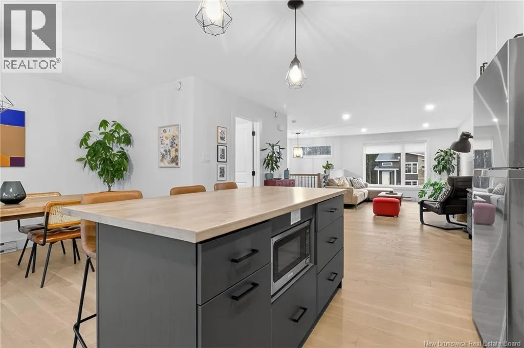 From Chartersville Rd., turn onto Bourque Rd., turn right onto Norbert St., then turn left onto Donat Cres. *Click on link for 3D virtual tour of this property* This modern end-unit townhouse offers contemporary living in a prime Dieppe location. Clean lines, stylish exterior finishes & a welcoming façade create strong curb appeal from the moment you arrive. Step inside to an open concept main floor that blends the living, dining & kitchen areas into one bright, cohesive space. Large windows bring in natural light while the well-planned layout supports both everyday living & effortless entertaining. A convenient 2pc powder room completes this level. Patio doors open to a private deck overlooking the walking trail, giving you a peaceful outdoor retreat for relaxing, dining or enjoying fresh air year-round. The lower level is thoughtfully designed with 3 comfortable bedrooms, a 4pc main bath & an efficient laundry area. Other features include: mini split, centre island in kitchen for additional workspace, kitchen appliances & laundry to remain & much more. Located close to schools, shopping, restaurants & community amenities, this end-unit delivers exceptional value, comfort & a modern lifestyle. Lit Size (Approx.): 30x99 (id:27476)