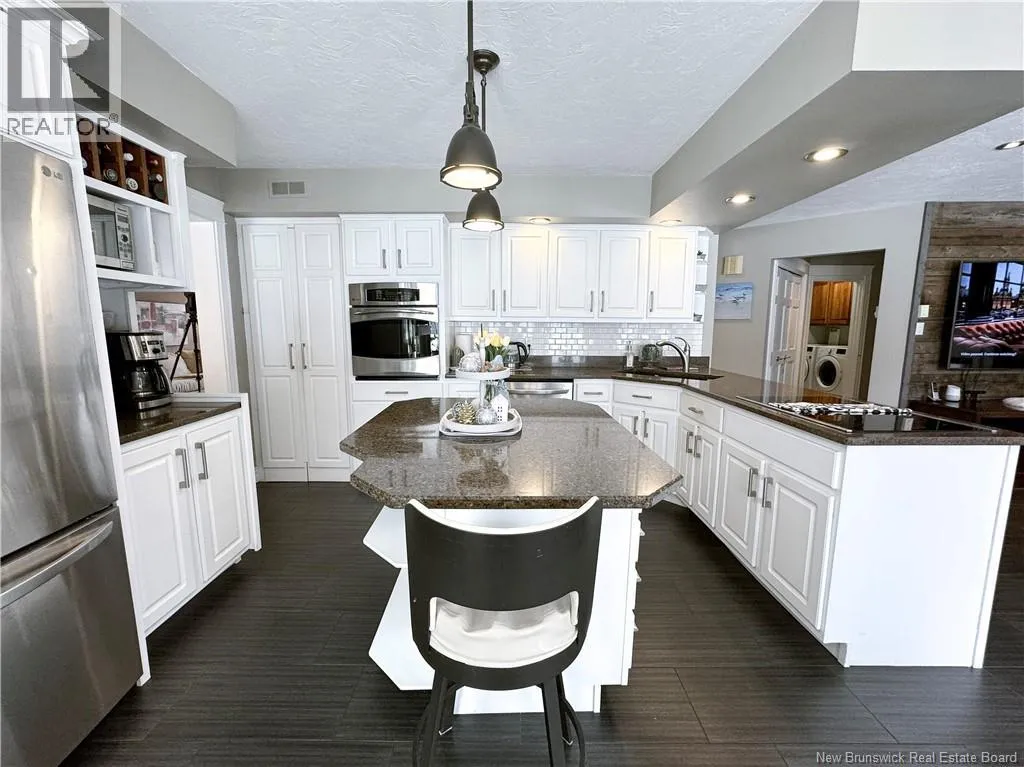 From Amirault St to Lavoie Welcome to 313 Lavoiea spectacular 6-bedroom, two-storey executive house situated in one of Dieppes most prestigious neighborhoods. Offering over 5,000 sq. ft. of luxury living plus a fully private in-law suite, this home blends sophistication with exceptional functionality. The main level features a formal living and dining room, a bright office, and an open-concept eat-in kitchen enhanced with quartz countertops, built-in appliances, and a propane stove. A spacious family room opens to the private backyard, while a mudroom, laundry room, and powder room complete this level. Upstairs, the primary suite includes an ensuite bath, walk-in closet, sunroom, and balcony. Two additional bedrooms and a full bath provide comfort for the whole family. The fully finished basement includes a large bedroom, recreation room, full bath, ample storage, a cold room, wine cellar, and a workshop beneath the garage. The in-law suite with its own entrance, offers an open-concept living room with a fireplace, private deck, two bedrooms plus a loft, full bath, and laundryperfect for extended family or rental income.. Recent upgrades include full house painting, two new decks, and a propane stove & range hood in the in-law suite (2021), a new swimming pool with deck, and fencing (2022), a pavilion, fishing pond, and landscaping (2022), complete siding repaint (2024), a Tesla charging station (2024), and two sets of washers & dryers (2025). Contact your REALTOR® today for a private viewing! (id:27476)