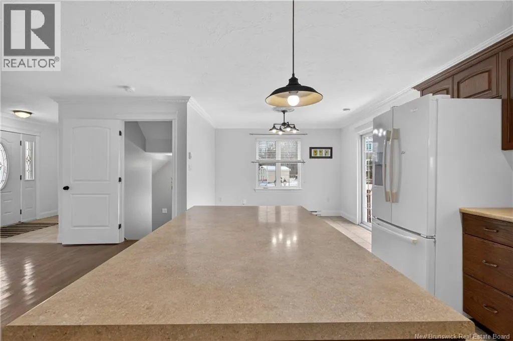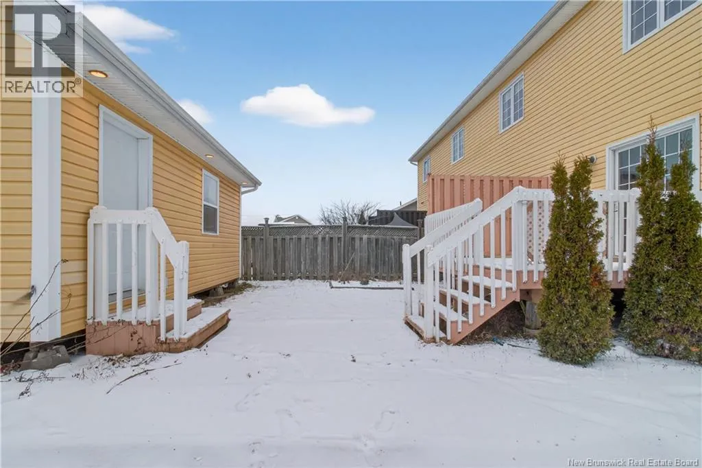 From Dieppe Blvd, turn right onto Champlain St, then left onto Pascal Ave. Turn right onto Gauvin Rd, followed by a left onto Thomas St. Continue on Thomas St for approximately 2.7 km, then turn right onto Avant-Garde St. Finally, turn left onto Bernard St-the home will be on your right in approximately 350 metres. SEPARATE SIDE ENTRANCE & GREAT RENTAL POTENTIAL! Welcome to 877 Bernard, a rare find located in a quiet, family-friendly neighbourhood of Dieppe-close to schools, scenic walking trails, Fox Creek Golf Course, and just a 10-minute drive to downtown Moncton. This well-maintained semi-detached home sits on a corner lot and offers a private lower-level living space with excellent income potential. With its own separate side entrance and driveway, the lower level includes a kitchenette, living and dining area, one bedroom, and a full 4-piece bathroom-providing flexibility, privacy, and multiple living options. The main level features a bright, open-concept living area with hardwood floors, flowing seamlessly into a functional kitchen with island and a spacious dining area-perfect for entertaining. Upstairs youll find three bedrooms and a large 4-piece bathroom with laundry. The primary bedroom stands out with cathedral ceilings, a walk-in closet, and a large picture window that fills the space with natural morning light. Additional highlights include a 16x20 garage with ample storage, all set on a desirable corner lot. Ideal for buyers seeking extra living space or added income potential, this home delivers versatility, comfort, and a fantastic location. Book your private showing today! (id:27476)