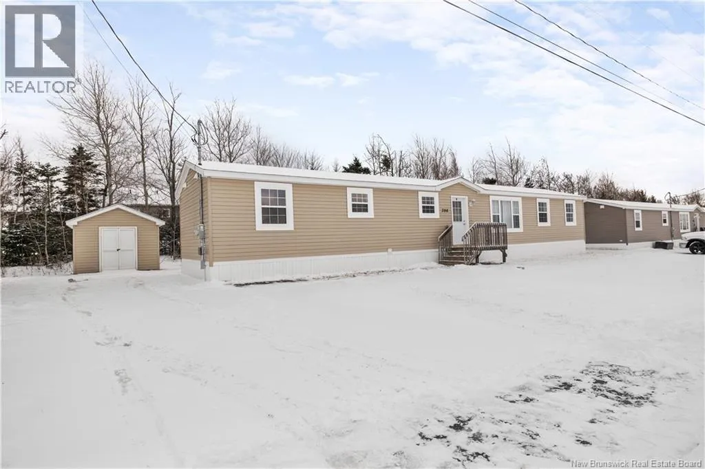 civic #396 on Nepisiguit This well-maintained 2014 mini home offers comfortable, modern living in a convenient in-town location while still providing exceptional privacy. Featuring 3 spacious bedrooms and 1 full bathroom, this home is ideal for families, first-time buyers, or those looking to downsize without sacrificing space. The home boasts a large, functional kitchen with ample cabinetry and counter space, flowing seamlessly into a dedicated dining area, perfect for everyday meals or entertaining guests. The generous living room provides plenty of room for relaxing and gathering, with natural light enhancing the open and welcoming layout. Heating and cooling are efficiently handled by a mini-split heat pump, offering both energy-efficient warmth in the winter and air conditioning in the summer, ensuring year-round comfort. Step outside to enjoy a SUPER private backyard, a rare find for an in-town property. The outdoor space includes a deck, ideal for BBQs, morning coffee, or relaxing evenings, as well as a storage shed that provides convenient space for tools, lawn equipment, or seasonal items. Located right in town, this home offers easy access to shops, schools, and local amenities, combining convenience with the peace and privacy of a secluded outdoor setting. Clean, move-in ready, and thoughtfully laid out, this property is an excellent opportunity to own an affordable, efficient home in a desirable location. (id:27476)