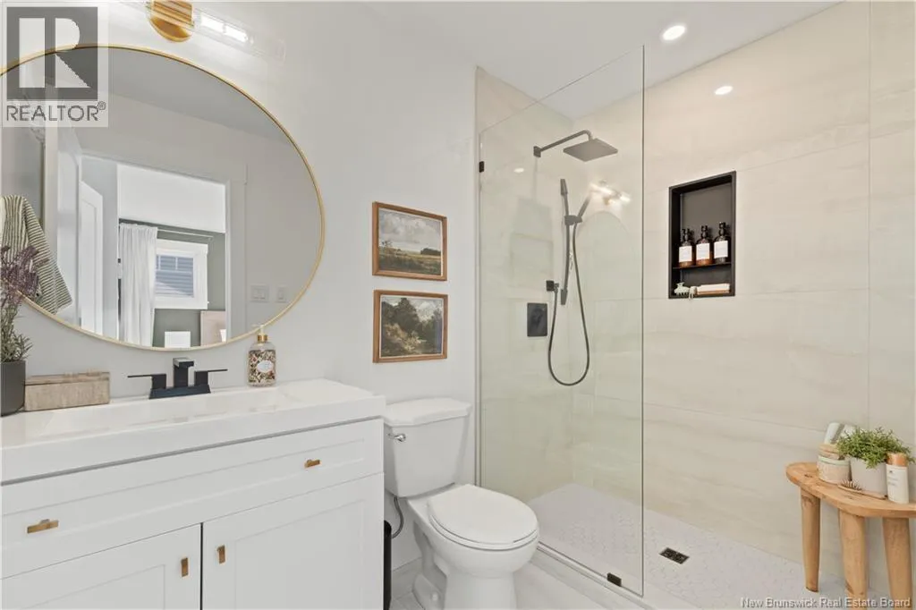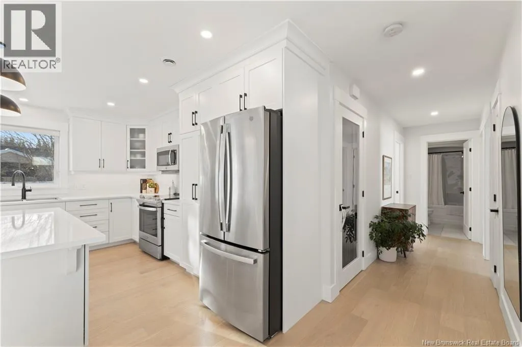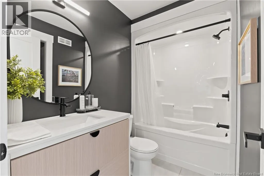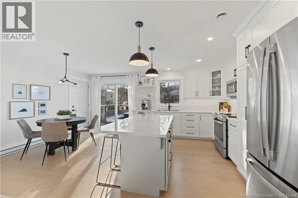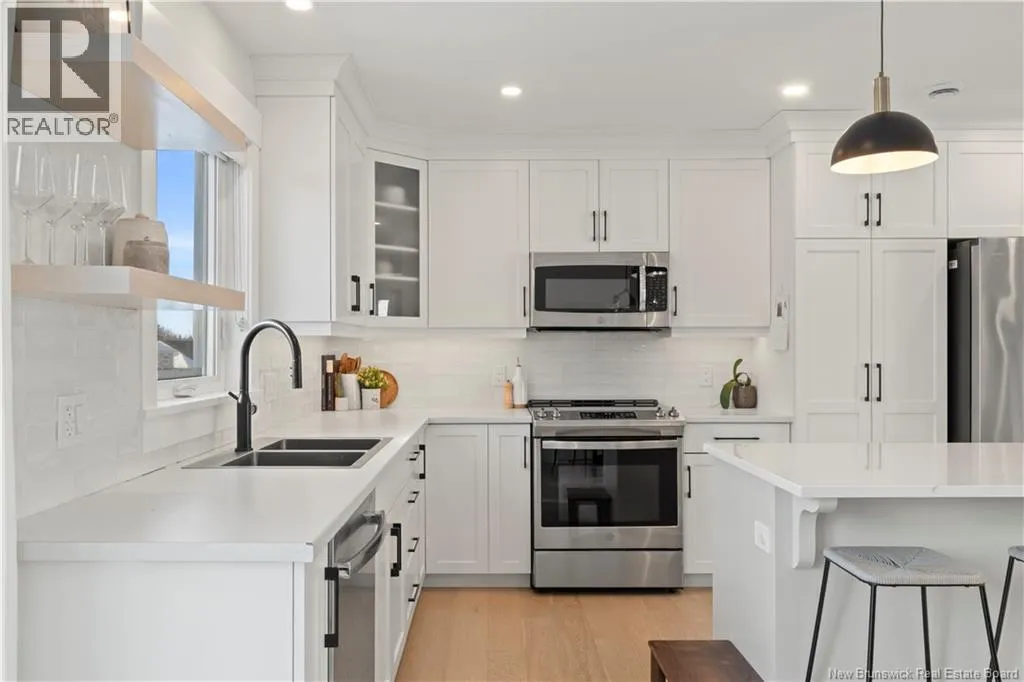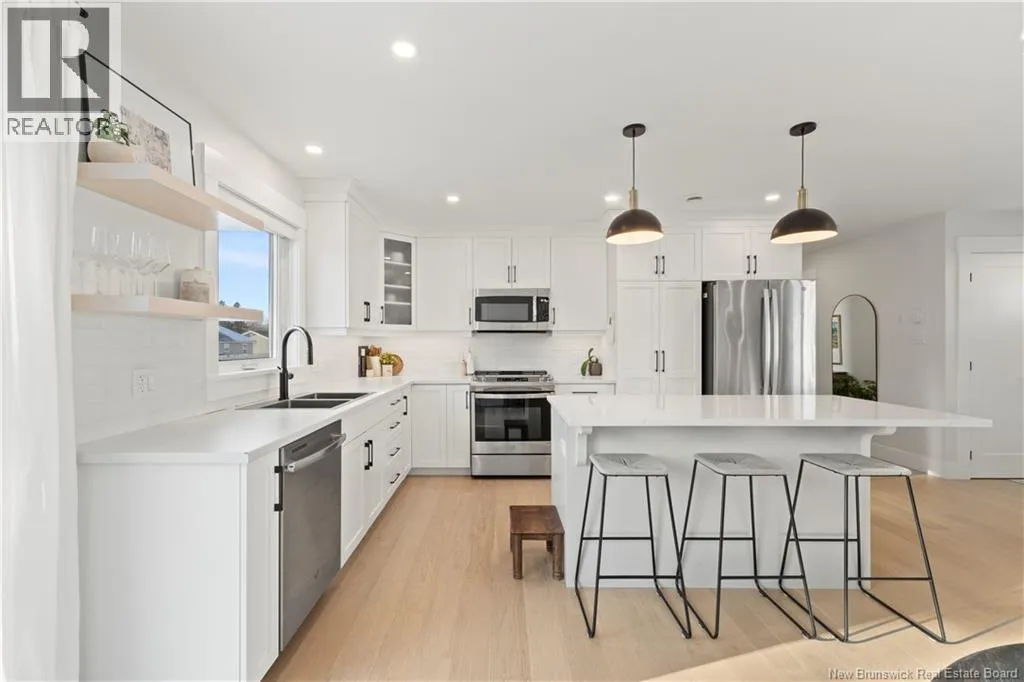 From Melanson Street in Dieppe, proceed to Fox Creek Road, then turn onto Doiron Street. The destination is 133 Doiron Street. BUILT IN 2021 | FINISHED BASEMENT | HIGH-END FINISHES | ENSUITE BATHROOM | Welcome to this charming, newer bungalow located in a thriving, family-oriented neighbourhood in the heart of Dieppe. This beautifully maintained home offers a bright, open-concept main level featuring a modern kitchen with crisp white cabinetry, QUARTZ COUNTERTOPS, a functional island, and seamless flow into the dining and living areasperfect for both everyday living and entertaining.The main floor includes three well-appointed bedrooms, highlighted by a spacious PRIMARY SUITE complete with a WALK-IN CLOSET and a private ENSUITE BATHROOM featuring a custom TILED SHOWER, along with a full guest bathroom and a conveniently located laundry area. Downstairs, the FINISHED BASEMENT provides exceptional additional living space, including a warm and inviting family room with large windows with great sunlight exposure, a stylish wet bar with mini fridge, a full guest bathroom, and a dedicated storage room. Additional highlights include an ATTACHED GARAGE, contemporary finishes throughout, 2 mini-split heat pumps, and a beautiful backyard with a deckperfect for enjoying outdoor living. Ideally situated close to schools, parks, arenas, and all amenities, this move-in-ready home offers comfort, style, and an exceptional location for growing families. (id:27476)