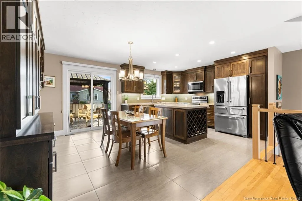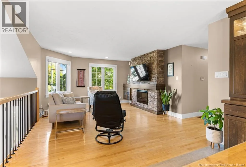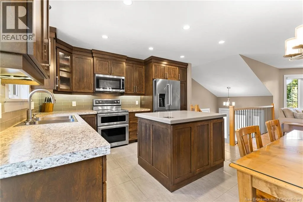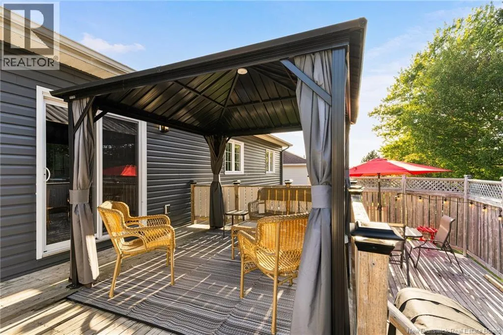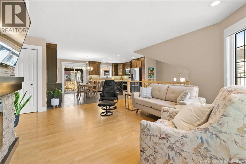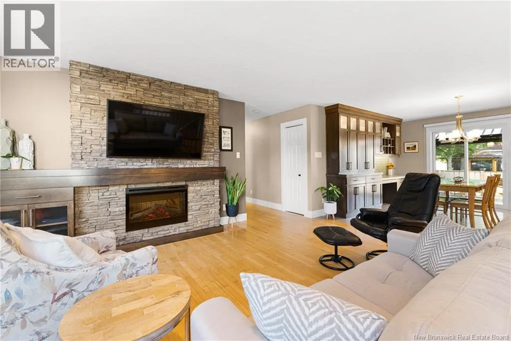 Take Amirault Street past Fox Creek Rd and make a left onto Pelagie. Welcome to 72 Pelagie, Dieppe. This meticulously maintained home offers fully ducted forced-air heating, an attached double garage, and significant updates completed over the past decade, including new windows and doors, updated siding, a fully renovated kitchen, and a newer roof. The bright, open-concept main level features an impressive kitchen with contemporary shaker cabinets, a quartz island, KitchenAid stainless steel appliances, new ceramic tile, and ample storage, creating the ideal gathering place for family and friends. The dining area flows seamlessly into an expansive back deck and screened gazebo, overlooking a manicured, fully fenced yard with easy-care perennials, perfect for outdoor living. Inside, the living room features a striking stone wall with a built-in electric fireplace and a custom wood mantle, blending warmth and modern elegance. Hunter Douglas window coverings, wired speakers, and an alarm system add comfort and security. Down the hall are three generous bedrooms and a renovated, spa-inspired bathroom with in-floor heating, a washer and dryer tucked behind double doors, a quartz vanity, a full wall mirror, custom cabinetry, modern lighting, and porcelain tile. The lower level, featuring oversized windows, expands your lifestyle with a spacious family room and wet bar, two additional large bedrooms, a full bath, and ample storage. This move-in-ready home truly has it all. Equalized billing for heat and lights is $397. (id:27476)