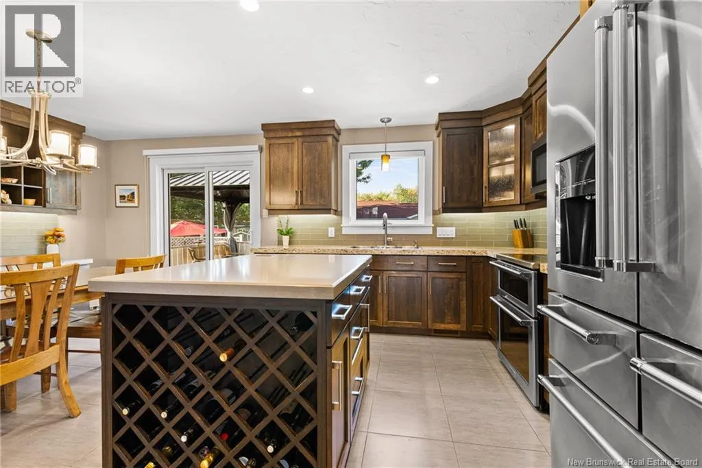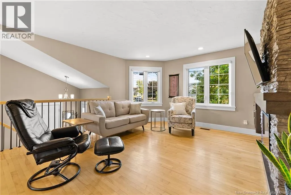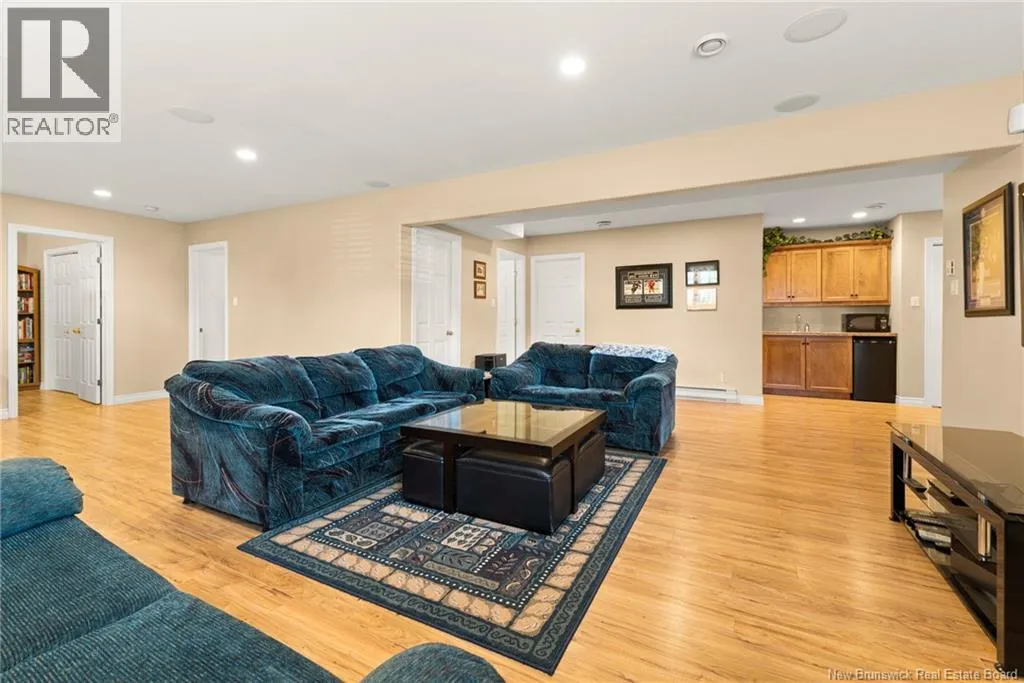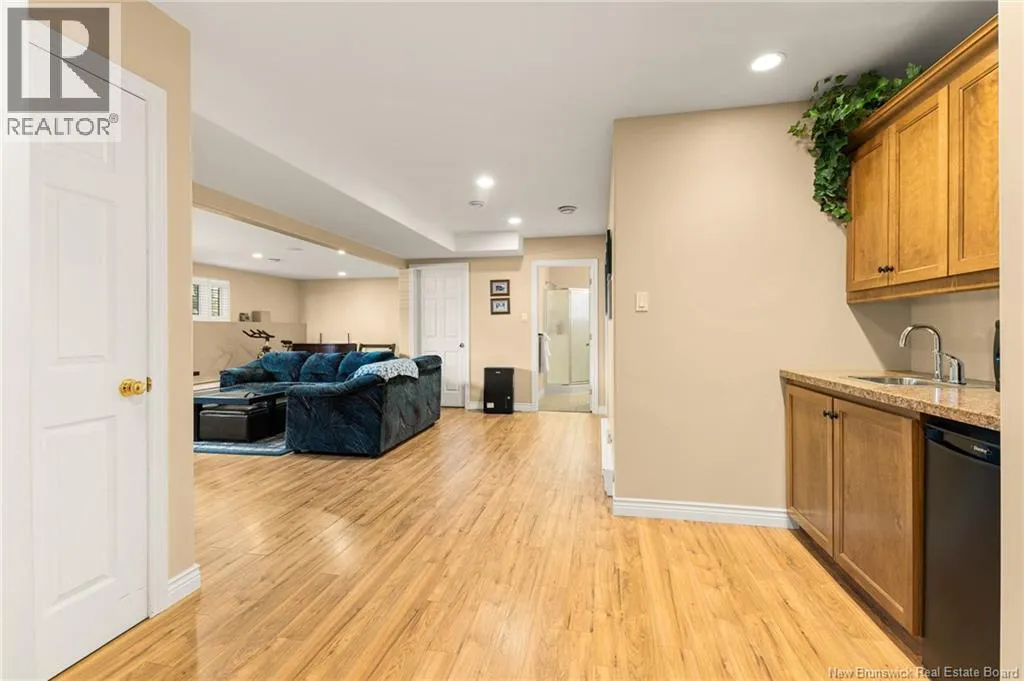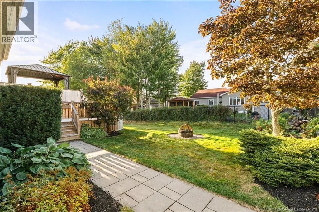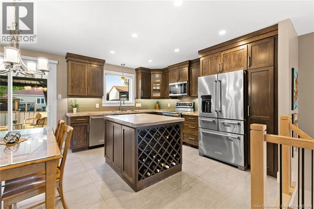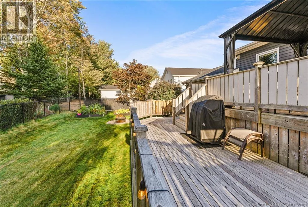 Take Amirault Street past Fox Creek Rd and make a left onto Pelagie. Welcome to 72 Pelagie, Dieppe. This meticulously maintained home offers fully ducted forced-air heating, an attached double garage, and significant updates completed over the past decade, including new windows and doors, updated siding, a fully renovated kitchen, and a newer roof. The bright, open-concept main level features an impressive kitchen with contemporary shaker cabinets, a quartz island, KitchenAid stainless steel appliances, new ceramic tile, and ample storage, creating the ideal gathering place for family and friends. The dining area flows seamlessly into an expansive back deck and screened gazebo, overlooking a manicured, fully fenced yard with easy-care perennials, perfect for outdoor living. Inside, the living room features a striking stone wall with a built-in electric fireplace and a custom wood mantle, blending warmth and modern elegance. Hunter Douglas window coverings, wired speakers, and an alarm system add comfort and security. Down the hall are three generous bedrooms and a renovated, spa-inspired bathroom with in-floor heating, a washer and dryer tucked behind double doors, a quartz vanity, a full wall mirror, custom cabinetry, modern lighting, and porcelain tile. The lower level, featuring oversized windows, expands your lifestyle with a spacious family room and wet bar, two additional large bedrooms, a full bath, and ample storage. This move-in-ready home truly has it all. Equalized billing for heat and lights is $397. (id:27476)