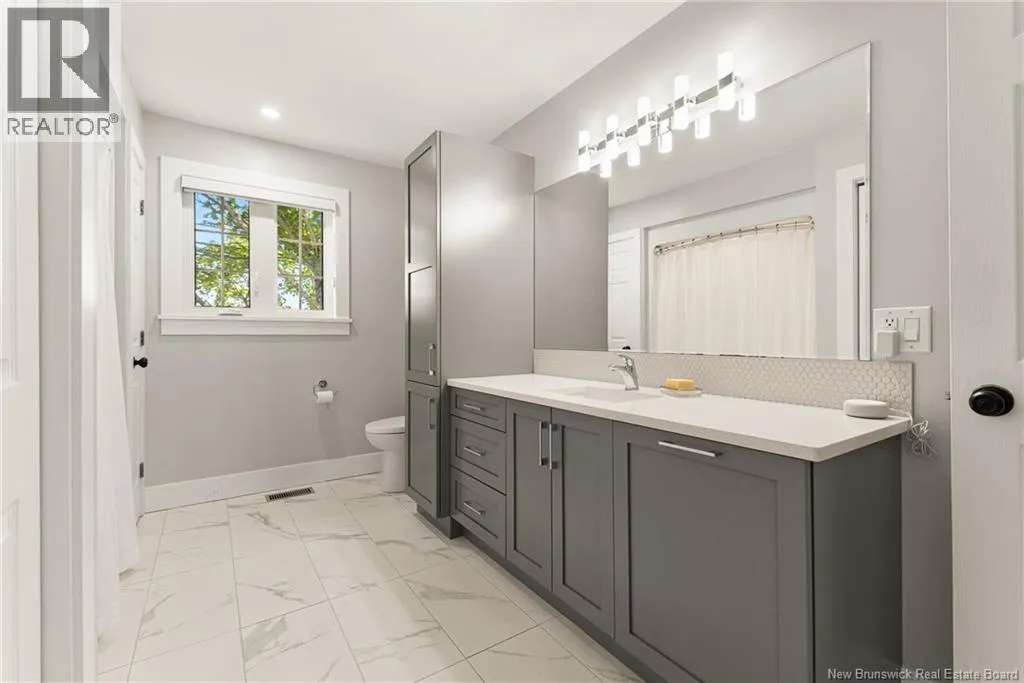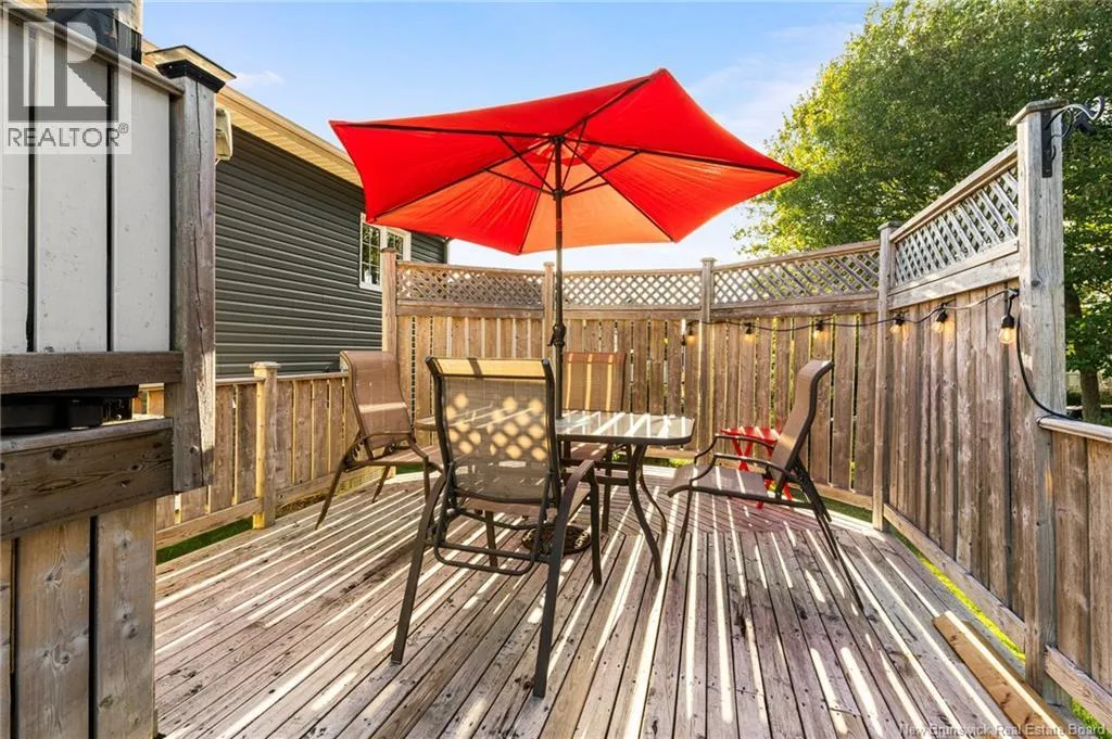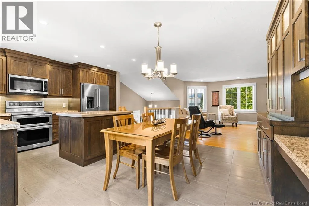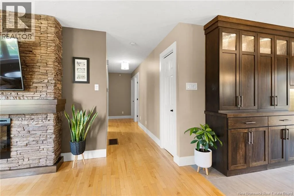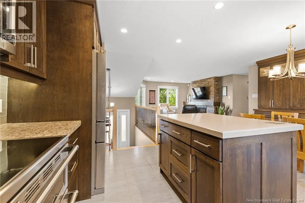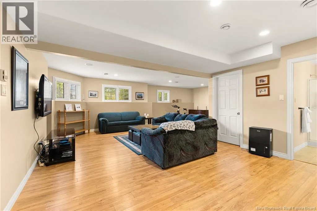 Take Amirault Street past Fox Creek Rd and make a left onto Pelagie. Welcome to 72 Pelagie, Dieppe. This meticulously maintained home offers fully ducted forced-air heating, an attached double garage, and significant updates completed over the past decade, including new windows and doors, updated siding, a fully renovated kitchen, and a newer roof. The bright, open-concept main level features an impressive kitchen with contemporary shaker cabinets, a quartz island, KitchenAid stainless steel appliances, new ceramic tile, and ample storage, creating the ideal gathering place for family and friends. The dining area flows seamlessly into an expansive back deck and screened gazebo, overlooking a manicured, fully fenced yard with easy-care perennials, perfect for outdoor living. Inside, the living room features a striking stone wall with a built-in electric fireplace and a custom wood mantle, blending warmth and modern elegance. Hunter Douglas window coverings, wired speakers, and an alarm system add comfort and security. Down the hall are three generous bedrooms and a renovated, spa-inspired bathroom with in-floor heating, a washer and dryer tucked behind double doors, a quartz vanity, a full wall mirror, custom cabinetry, modern lighting, and porcelain tile. The lower level, featuring oversized windows, expands your lifestyle with a spacious family room and wet bar, two additional large bedrooms, a full bath, and ample storage. This move-in-ready home truly has it all. Equalized billing for heat and lights is $397. (id:27476)