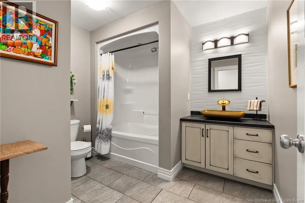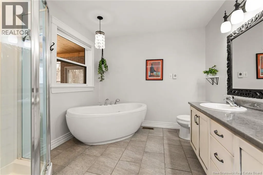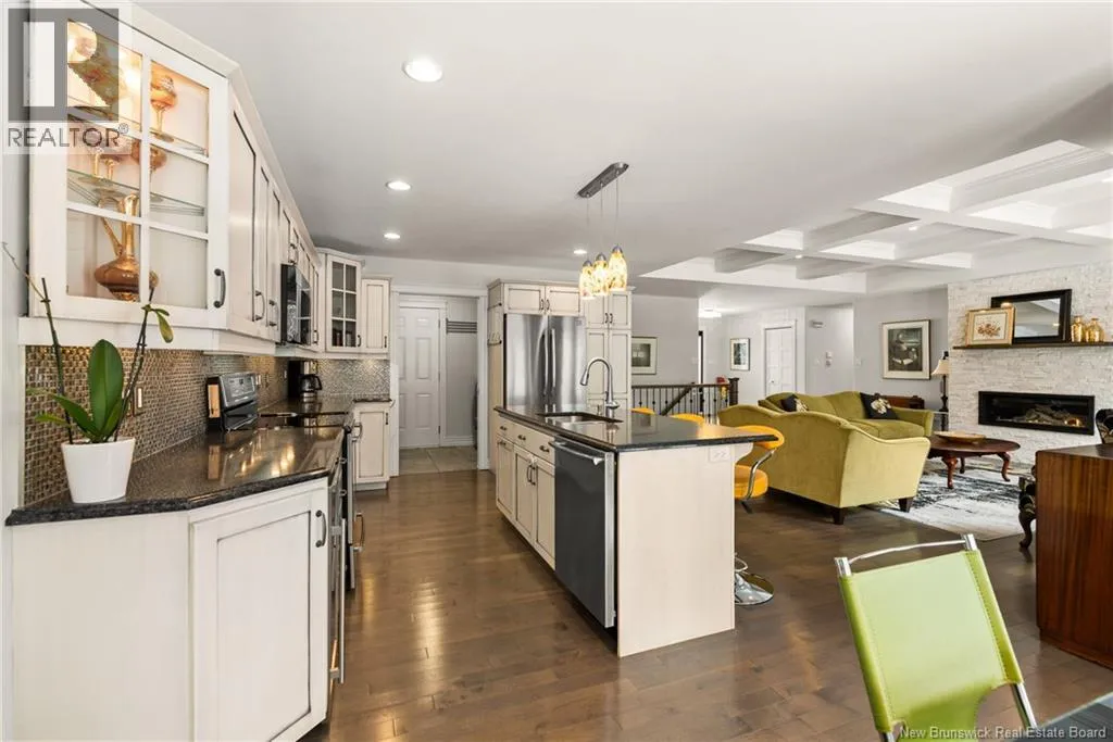 From Chartersville Rd., turn onto Bonaventure St., then right on Larochelle St. 177 Larochelle - CUSTOM EXECUTIVE BUNGALOW // OVER 3000sq.ft. FINISHED // CUL-DU-SAC // LARGE PRIVATE LOT // CENTRAL HEATING & COOLING // 3 + 2 BEDROOMS // 3 FULL BATHS // INDOOR HOT TUB // HIGH-END FINISHES THROUGHOUT. Needless to say, this is one of Dieppes finest examples of quality craftsmanship! Through the front door, you will be welcomed into the large foyer that pulls you into the warm open-concept living room, kitchen and dining room, featuring a focal propane fireplace, multi-tray ceiling, and a full bank of eastern-facing windows. Down the hall, the primary suite features a spacious 5-piece ensuite bath with in-floor heating, walk-in closet, and access to your own private spa/relaxation room with hot tub. The fully finished basement lends additional living space for family and guests alike, with two additional bedrooms, a full bathroom, large family/games room and more! Ample storage space to suit any and all. The backyard provides an extra large composite deck, a focal fire pit, and an additional platform deck overlooking the private treed green space. Built to a high standard, on a slow family-friendly street, with an exceptionally functional layout, this could be your next home! (id:27476)
