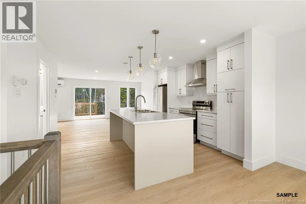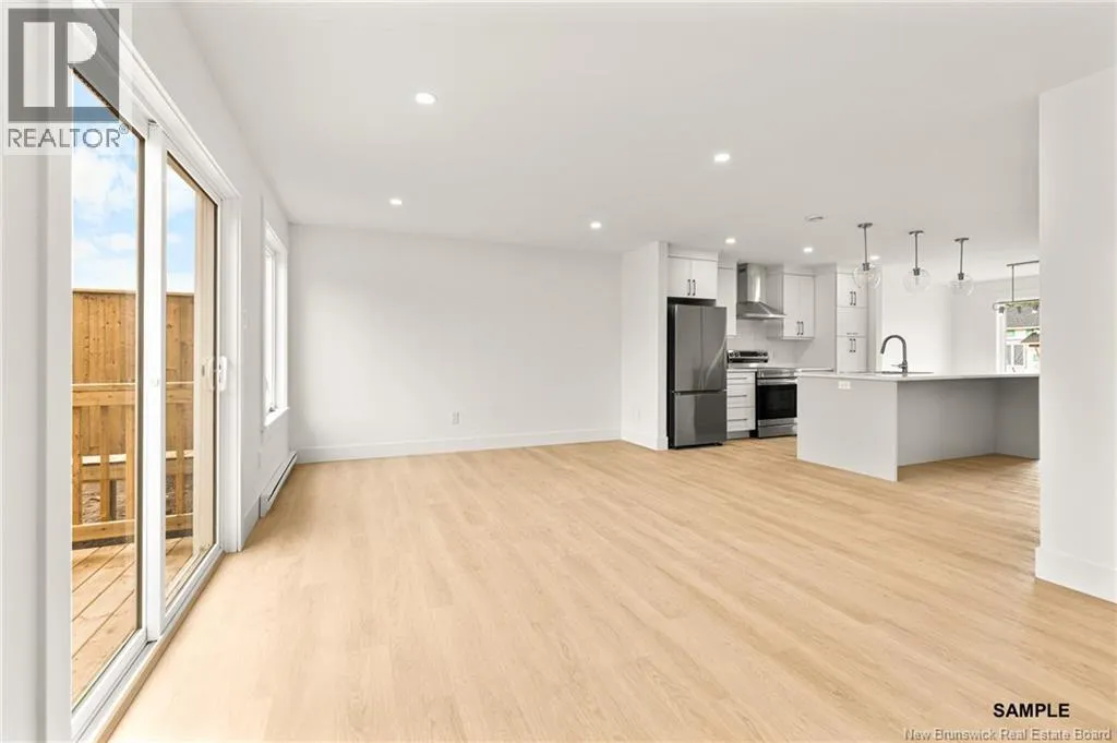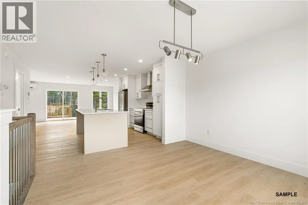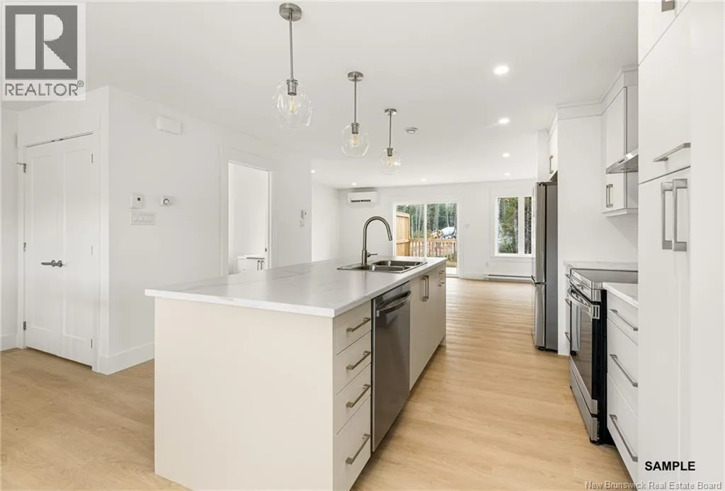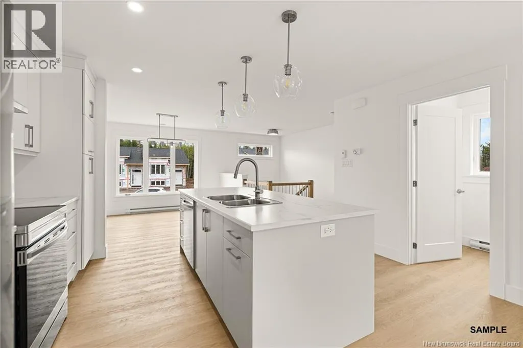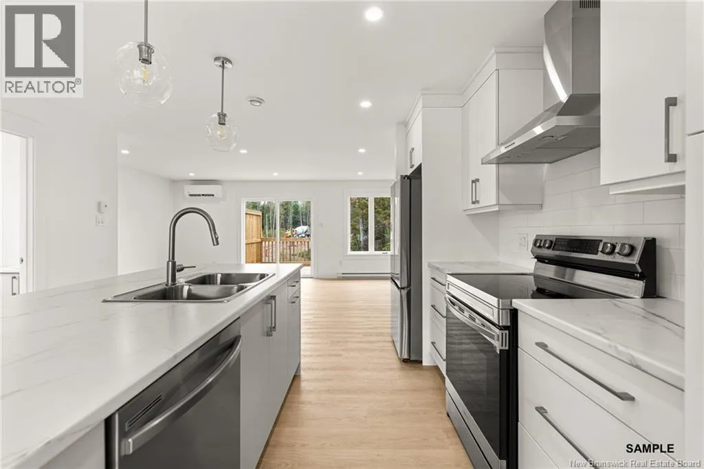From Dieppe Blvd, turn onto Elsliger Street. MODERN MIDDLE UNIT TOWNHOUSE WITH PAVE AND LANDSCAPING INCLUDED IN DIEPPE! Located on the sought-after ELSLIGER street, this TURN KEY home is within walking distance to Ecole Antonine Maillet et Ecole Le Marais and within easy access to major highways, airport, daycares, walking trails and many other amenities. The main level offers an OPEN CONCEPT DESIGN with front dining room that flows into the CENTER KITCHEN WITH LARGE ISLAND and lots of cabinetry which overlooks the large living area. Patio doors lead you the back deck where you can enjoy the BACKYARD. Half bath completes this level. Down the hardwood staircase, you will find front primary bedroom, full bathroom with double vanity, laundry closet, two additional bedrooms and storage room. These quality built homes offers lots of extras including PAVED DRIVEWAY, FULLY LANDSCAPED, KITCHEN APPLIANCES, MINI SPLIT HEAT PUMP for your comfort and 8 year new LUX home warranty. HST rebate to be assigned to vendor. READY FOR IMMEDIATE OCCUPANCY AND QUICK CLOSING. The photos are Sample. Call for more details! (id:27476)