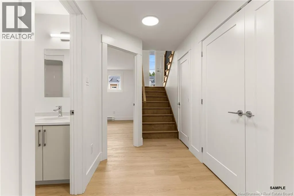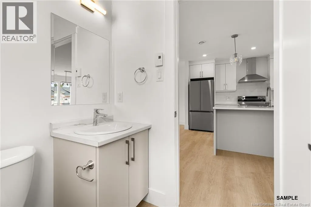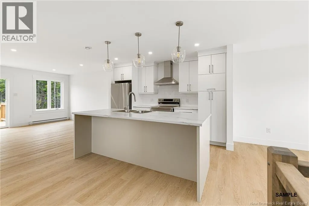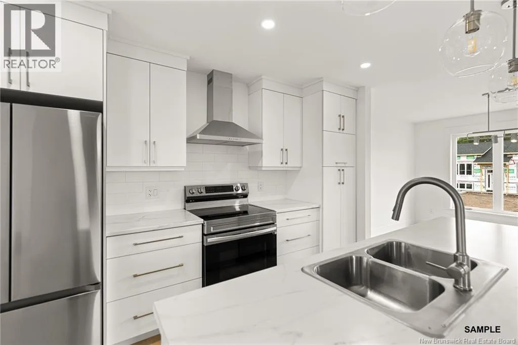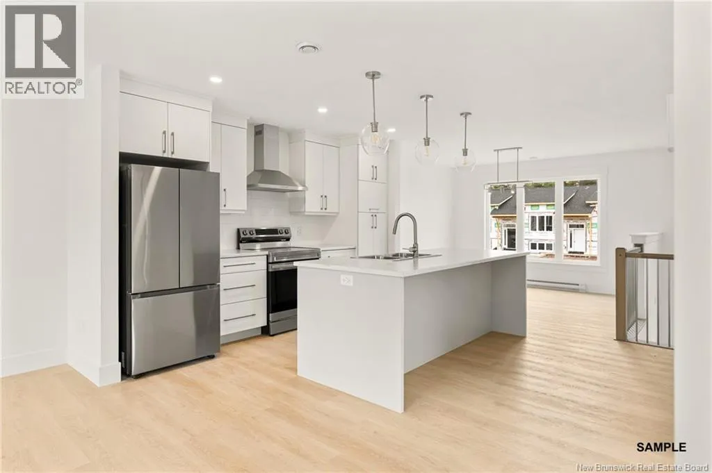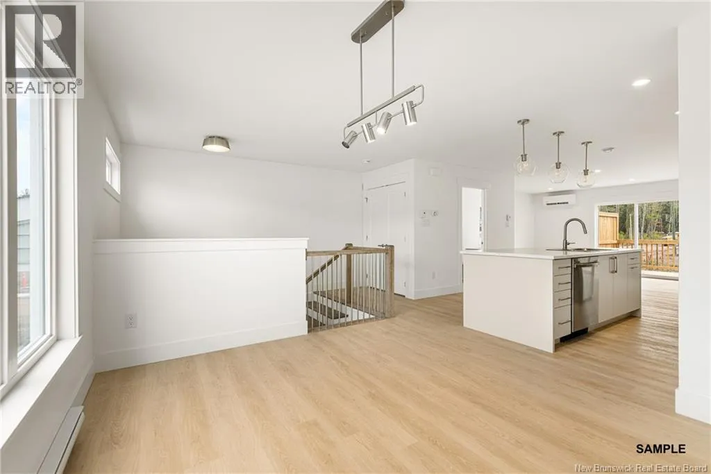 From Dieppe Blvd, turn onto Elsliger Street. MODERN MIDDLE UNIT TOWNHOUSE WITH PAVE AND LANDSCAPING INCLUDED IN DIEPPE! Located on the sought-after ELSLIGER street, this TURN KEY home is within walking distance to Ecole Antonine Maillet et Ecole Le Marais and within easy access to major highways, airport, daycares, walking trails and many other amenities. The main level offers an OPEN CONCEPT DESIGN with front dining room that flows into the CENTER KITCHEN WITH LARGE ISLAND and lots of cabinetry which overlooks the large living area. Patio doors lead you the back deck where you can enjoy the BACKYARD. Half bath completes this level. Down the hardwood staircase, you will find front primary bedroom, full bathroom with double vanity, laundry closet, two additional bedrooms and storage room. These quality built homes offers lots of extras including PAVED DRIVEWAY, FULLY LANDSCAPED, KITCHEN APPLIANCES, MINI SPLIT HEAT PUMP for your comfort and 8 year new LUX home warranty. HST rebate to be assigned to vendor. READY FOR IMMEDIATE OCCUPANCY AND QUICK CLOSING. The photos are Sample. Call for more details! (id:27476)