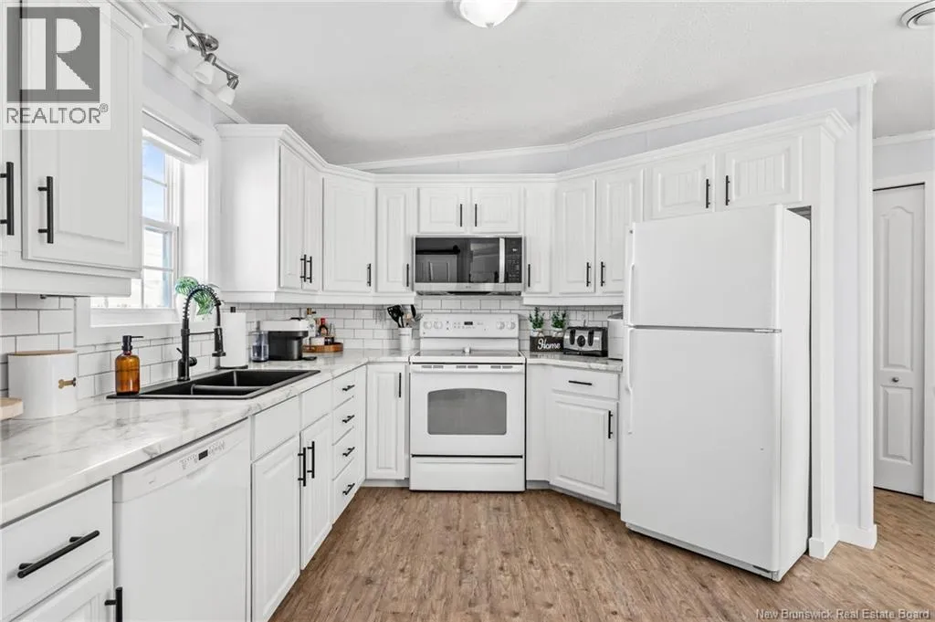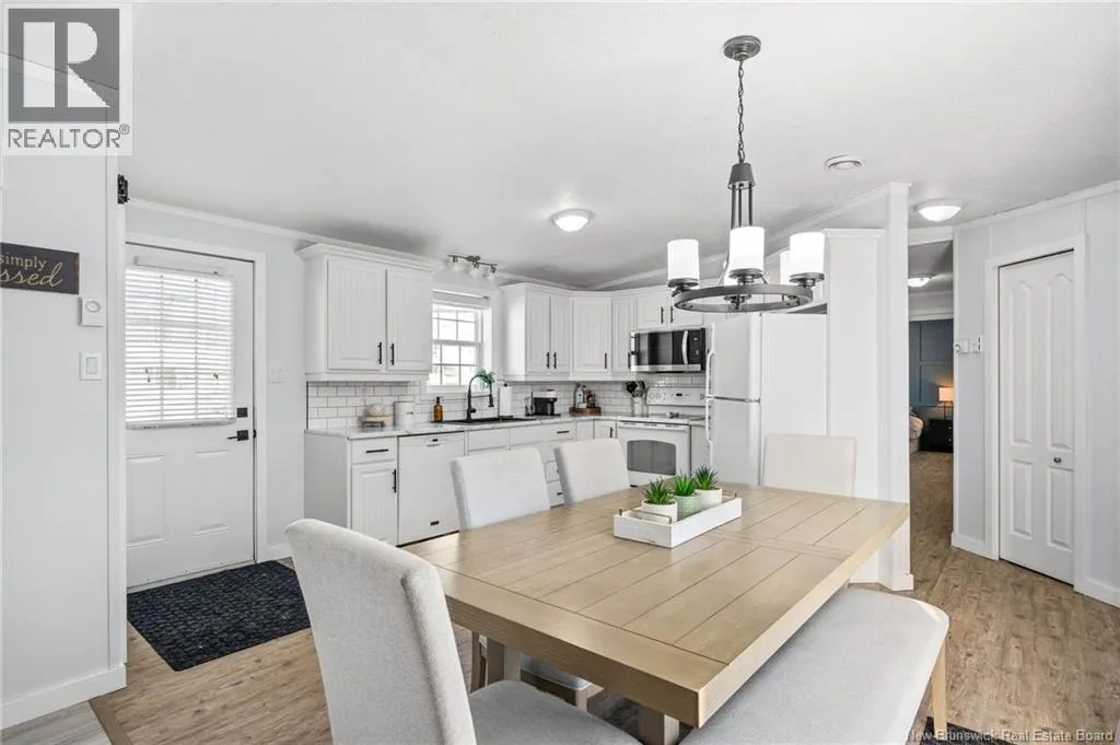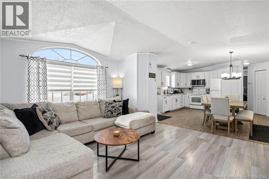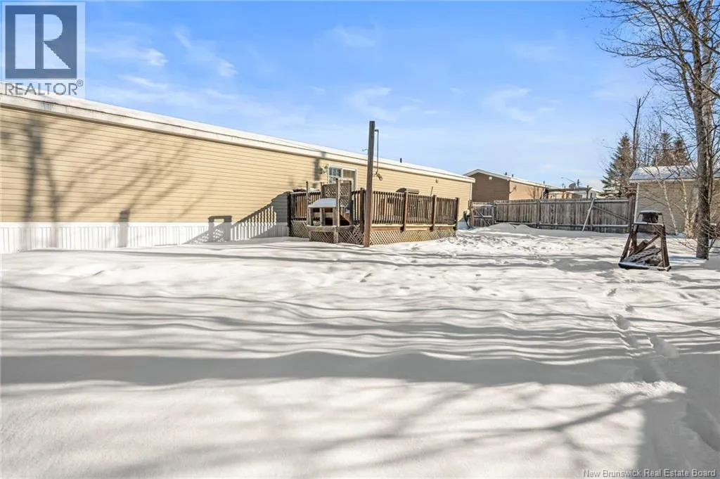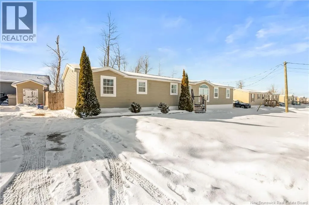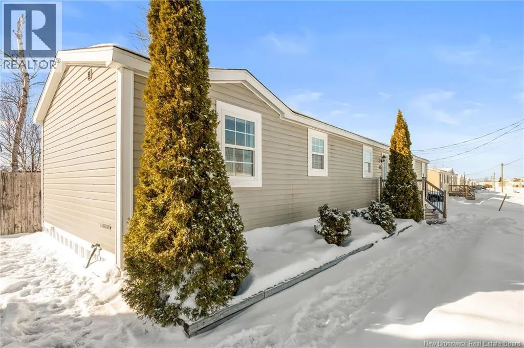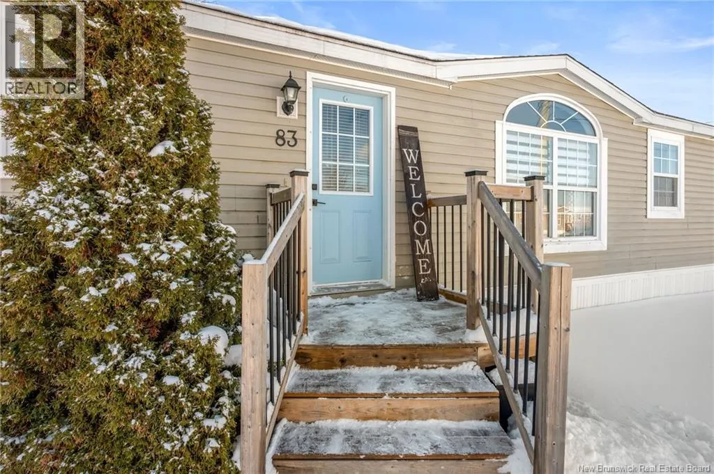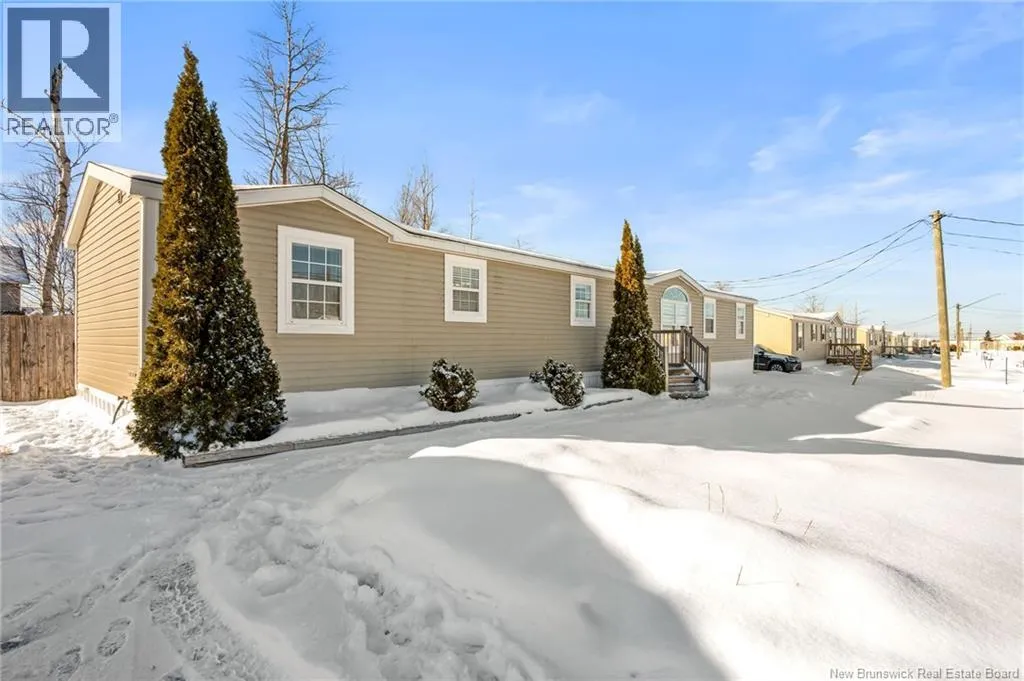 From Champlain Street, turn onto Dieppe Blvd then turn left onto Lakeburn Ave. Turn left at the 1st cross street onto Kedgwick Dr and then turn right onto Tracadie Drive. The property will be on your right. Welcome to 83 Tracadie Drive in Domaine Du Ruisseau! This beautifully renovated and modern mini home offers a bright, stylish interior and a layout that flows effortlessly from inside to out. Step into the stunning white kitchen, open to the dining area, featuring a crisp white backsplash, matching appliances, and sleek black accent hardware. The dining space is filled with natural light thanks to a large sliding patio door. From here, youre welcomed into the bright living room showcasing a beautiful shiplap feature wall with an electric fireplace and dedicated space to mount your TV, the perfect cozy focal point. On the opposite side of the kitchen, youll find a convenient laundry area, the spacious primary bedroom, and a 4-piece bathroom. The primary bedroom offers a sophisticated muted teal feature wall and a large double-door closet. The bathroom includes a stand-up shower and a relaxing corner soaker tub. On the other end of the home, two additional well-sized bedrooms complete the layout. Step outside to a large back deck overlooking a fully fenced backyard complete with a baby barn. The property is beautifully landscaped, features a double-wide driveway, and is ideally positioned facing the road. Move-in ready and sure to impress, this home would be perfect for first-time buyers, small families, or those looking to downsize without compromising on style or comfort. Book your private viewing today! (id:27476)