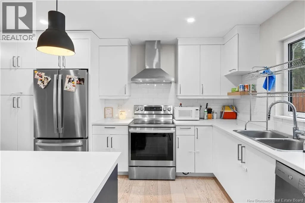 From Dieppe Blvd, turn onto Rue Belle Foret, then turn left on Rue des Erables Welcome to beautiful 165 Rue Des Erables, Situated in the highly desirable Fox Creek neighbourhood, this move-in ready home offers convenient access to Dieppe Blvd, the new French schools, daycares, walking trails, and a variety of nearby amenities. The main floor features a bright, open-concept layout. A welcoming front living room with a striking fireplace feature wall seamlessly connects to the stylish kitchen, complete with a center island, abundant cabinetry, and clear sightlines to the dining area. Patio doors open onto the back deck, providing the perfect spot to relax and enjoy the private backyard. A convenient half bath completes this level. A hardwood staircase leads to the lower level, where youll find the spacious primary bedroom at the front of the home, a full bathroom with double vanity, a dedicated laundry closet, two additional bedrooms, and a storage room. Built with quality craftsmanship, these homes include thoughtful upgrades such as a paved driveway, full landscaping, and a mini-split heat pump for year-round comfort. This house is still covered by an 8-year Lux Home Warranty. Contact your prefered realtor to book a viewing. (id:27476)