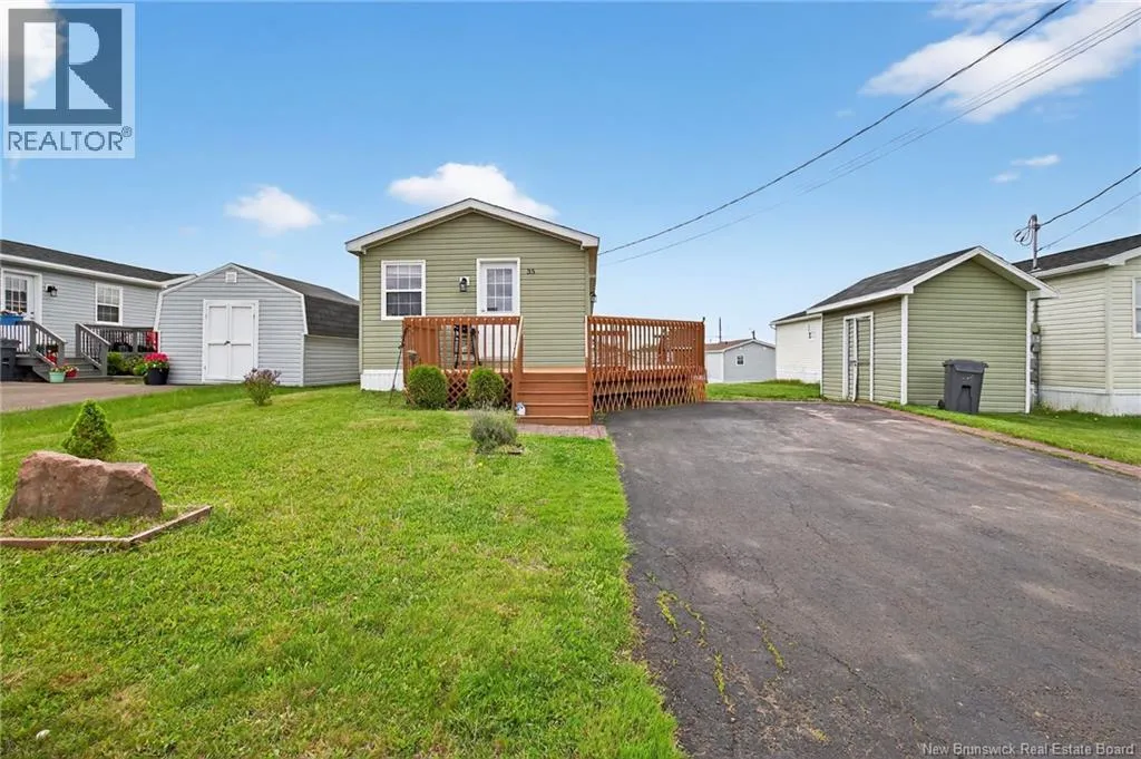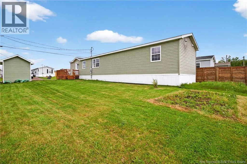 from Canaan dr turn right onto Restigouche, left onto Tracadie then left onto Pollett MOVE IN READY - Modern 3-Bedroom Mini Home in Sought-After Domaine du Ruisseau Welcome to this beautifully maintained, modern mini home located in the highly desirable community of Domaine du Ruisseau. This stylish 3-bedroom, 1-bath home offers comfort, convenience, and a contemporary layout perfect for families, first-time buyers, or downsizers. Step into a bright and airy open-concept living space filled with natural light. The heart of the home is the sleek, modern kitchen featuring a large center islandperfect for meal prep, casual dining, or entertaining. Enjoy outdoor living on the spacious deck, ideal for summer gatherings and BBQs. A large wired storage shed with electricity offers plenty of space for tools, hobbies, or additional storage. This move-in ready home combines style, function, and an unbeatable location. Book your private viewing today! (id:27476)