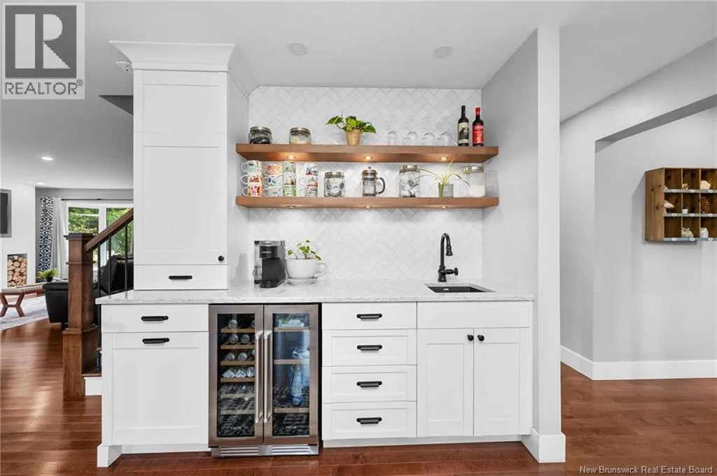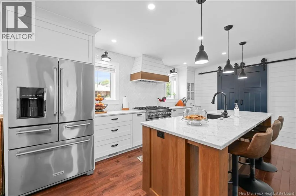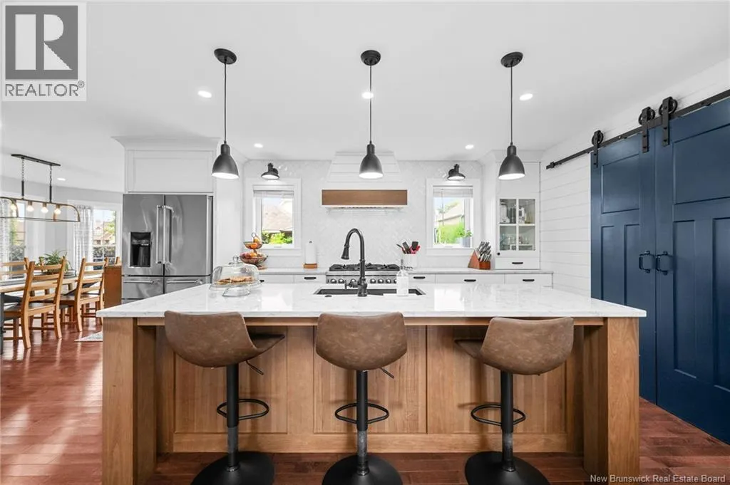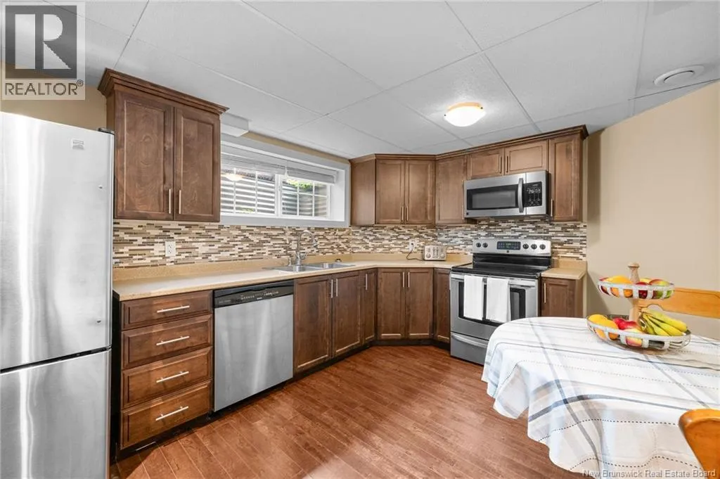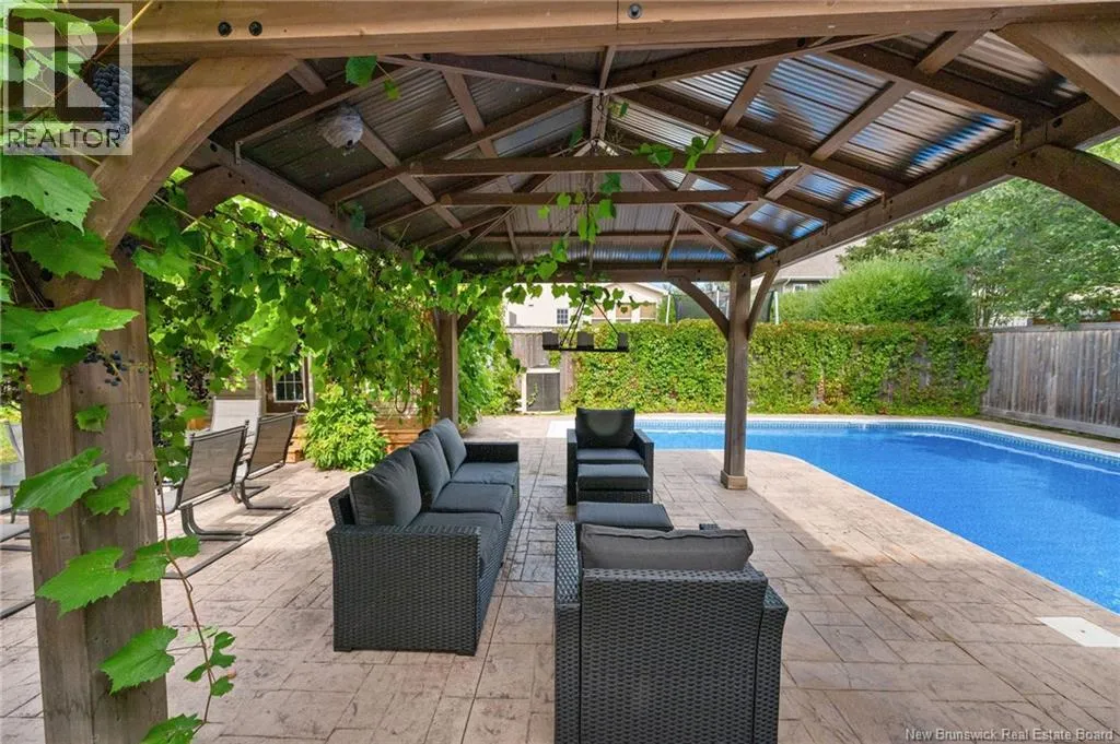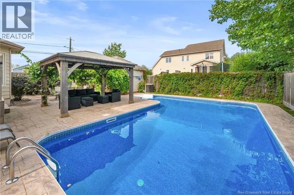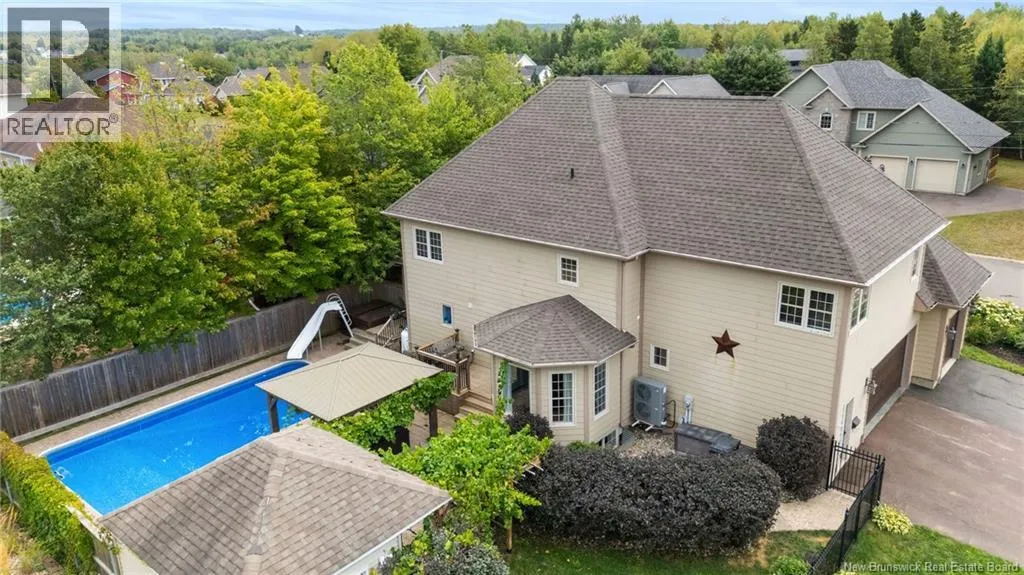 From Champlain Street turn onto Acadie Ave/NB-106 E. Turn right onto Pointe Aux Renards St. Then turn right onto Gillespie St. Home will be on the right hand side on the corner of Gillespie Street and Rue Thibeault. Driveway entrance is on Rue Thibeault side. Welcome to 53 Gillespie Street in Dieppe! This exceptional two-storey home with an in-law suite sits on a desirable corner lot near the Petitcodiac River. From first glance, the curb appeal shines with a new front porch and beautiful landscaping. Inside, the main level offers a warm living room with hardwood floors and a propane fireplace with wood storage niches. The recently renovated open kitchen features quartz countertops, a large island, walk-in pantry with sliding barn doors, propane stove, and a shiplap range hood that ties into the white and natural wood design. The dining area includes floor-to-ceiling windows, a coffee bar with wine fridge, and access to the backyard. A cozy 3-season sunroom, half bath, and office complete the main level. Upstairs, the large primary suite boasts a luxurious 5-piece ensuite with double vanity, soaker tub, tiled shower with two detachable heads and a rain shower, plus a spacious walk-in closet. Four additional bedrooms and a 5-piece bath with laundry area finish off the upper floor. The lower level offers a non-conforming bedroom currently used as a gym, and a separate in-law suite with a full kitchen, living room with electric fireplace, bedroom, full bath, and laundry. The private, fully fenced backyard is an absolute oasis with a stamped concrete patio surrounding an in-ground pool, hot tub, gazebo, and 12x16 storage shed. An attached triple car garage (extended in 2020) and a new ducted heat pump (2024) complete this dream home!! (id:27476)