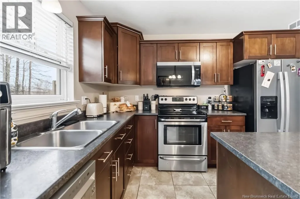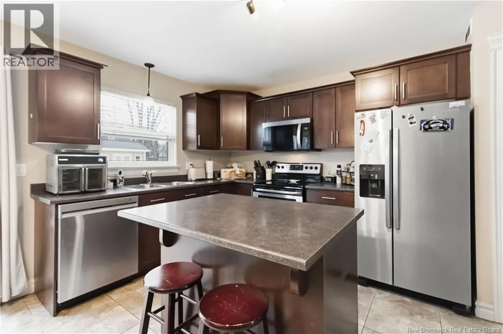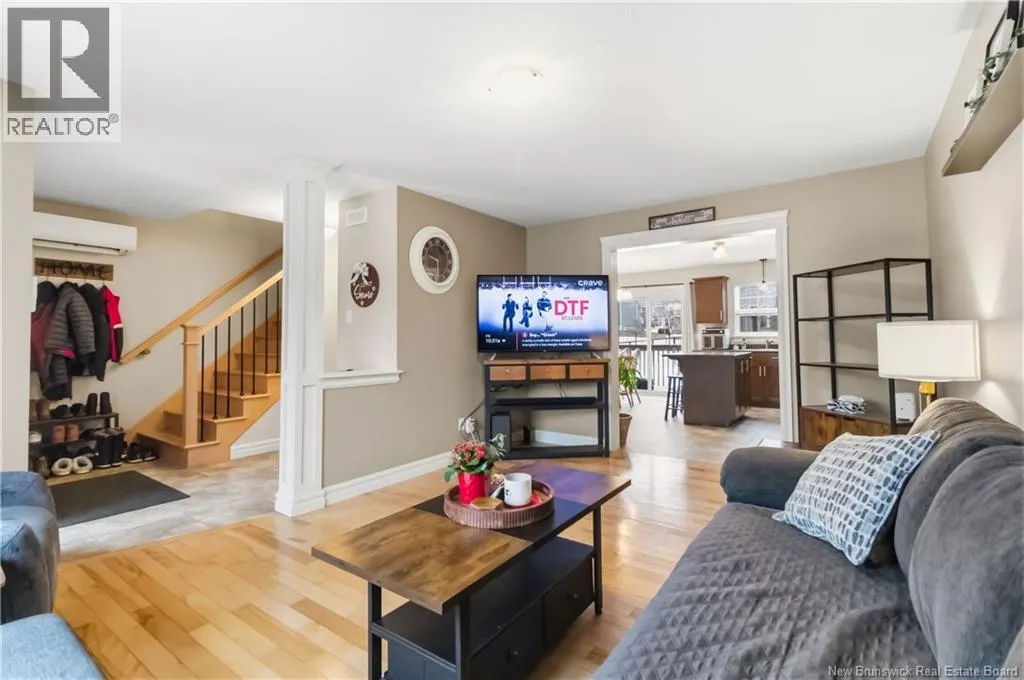 From Route 15, take Dieppe boulevard exit, travel on Dieppe Blvd for approximately 5 km, at the 2nd traffic circle Belle-Foret will be the first exit on the traffic circle. 193 will be on your left. Welcome to 193 Rue Belle-Foret, a semi-detached home in the Fox Creek area of Dieppe! The main floor offers an open-concept layout with a spacious living room that flows into the kitchen and dining area, stainless steel appliances included. A convenient powder room rounds out this level. Upstairs, you'll find three generously sized bedrooms, including a primary suite with a walk-in closet. The five-piece bathroom includes a corner jetted tub, separate shower, and double vanity. The basement has a partially developed space (just finish the ceiling and you're done) along with a separate storage area. Outside, enjoy a double-wide paved driveway, a charming front verandah, a back deck, and a fully fenced yard. A mini-split heat pump on the main level keeps things comfortable year-round. Property is currently taxed as non-owner occupied. This is a solid home in a great Dieppe neighbourhood. Contact your REALTOR® today to book your private showing! (id:27476)