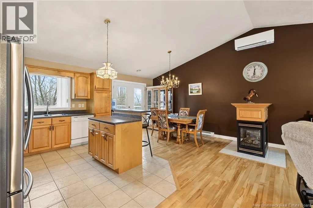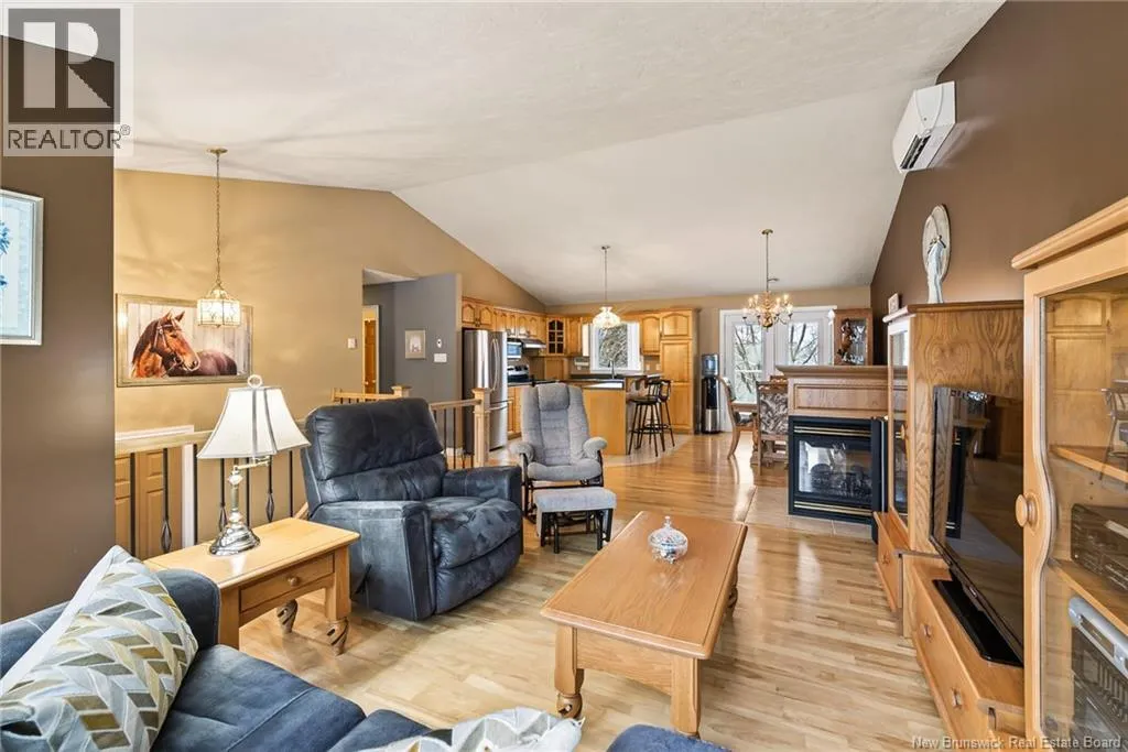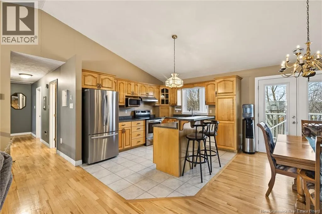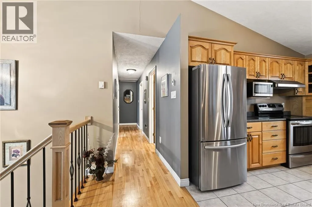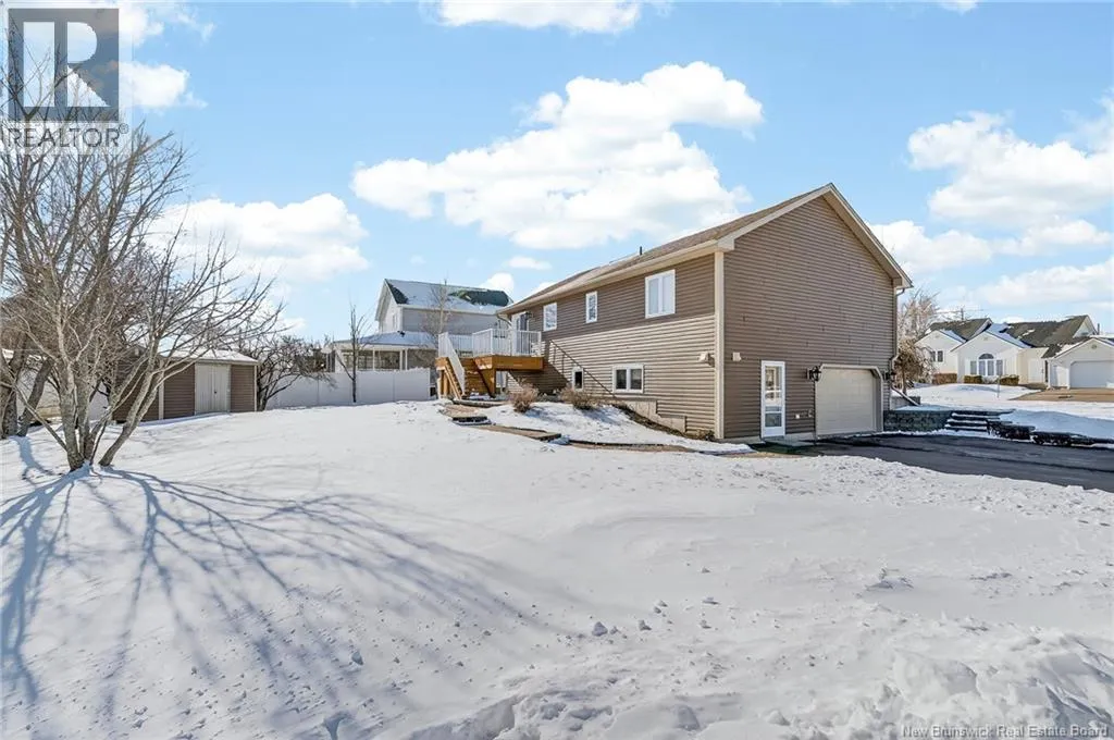 : From Champlain Street in Dieppe, turn onto Pascal Avenue, then turn left onto Delia Street. The property will be located on your right-hand side. Welcome to this beautiful raised bungalow located on a corner lot in a quiet and family-friendly neighborhood in Dieppe, offering potential for an in-law suite. This well-maintained home offers comfort, functionality, and space for the whole family. The main floor features a bright open-concept layout with vaulted ceilings, a spacious living room, and a cozy propane fireplace creating a warm, inviting atmosphere. The kitchen offers ample cabinetry, stainless steel appliances, and a functional island, while the dining area provides patio doors leading to a large PVC back deck, perfect for relaxing or entertaining with no maintenance required. The main level features three bedrooms, including a spacious primary bedroom with Jack and Jill access to the main bathroom. Beautiful hardwood flooring flows throughout the main living areas. The fully finished lower level offers extra living space with a large family room currently used as a home cinema, a fourth bedroom, and a full bathroom with laundry. You will also find a den or family room with direct access to the outside, offering flexibility and potential for an in-law suite. The basement also provides direct access to the attached garage. Outside you will find a nicely landscaped lot with a paved driveway, storage shed, and interlocking stone walkways surrounding the home. Roof, gutters, vinyl siding, and PVC deck were updated in 2018. Located close to schools, parks, and amenities. Dont miss this great opportunity! (id:27476)