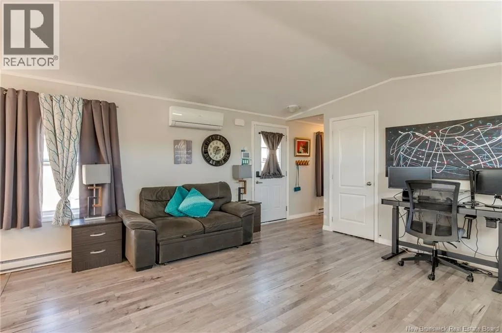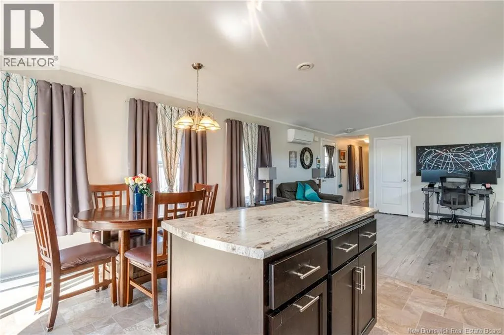 Take Amirault Street, south on Dover Road. west on Ulysse Drive. Telex Lane is on your right. Motivated Seller: Just like new 2019 mini home. Enjoy calm and relaxation living in Dover Estates Mini Home Park. In the Summer or Winter, you can enjoy the beautiful sunsets off your back deck! This mini home has 2 bedrooms with a full bathroom including the laundry area. The living room has a cathedral ceiling, nice modern kitchen with dark cabinets, pull outs in pantry, and an island with a power outlet, as well as a nice size dining area. Mini home comes with a mini split that gives you heating efficiency in the winter and cooling in the summer. Shed is 12 x 8 feet, great for your seasonal storage needs. 3 years remaining on the 10-year Atlantic Home Warranty. Seller is leaving all appliances including the washer and dryer, as well as the King bed in the primary bedroom with side tables (USB/Outlets) and all curtains. Book your showing today. (id:27476)