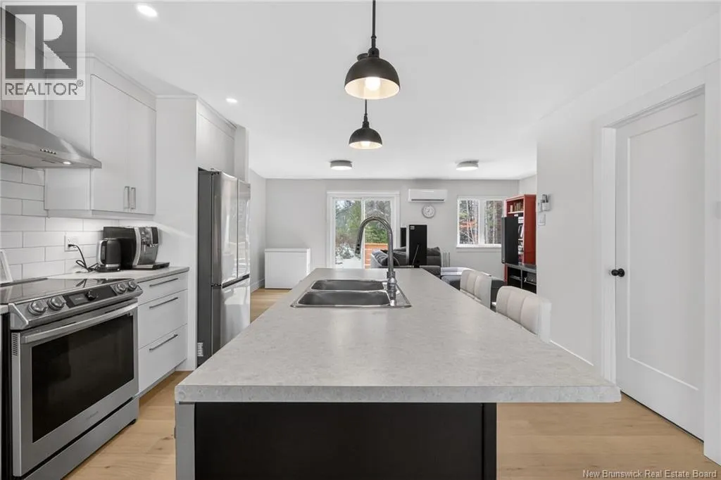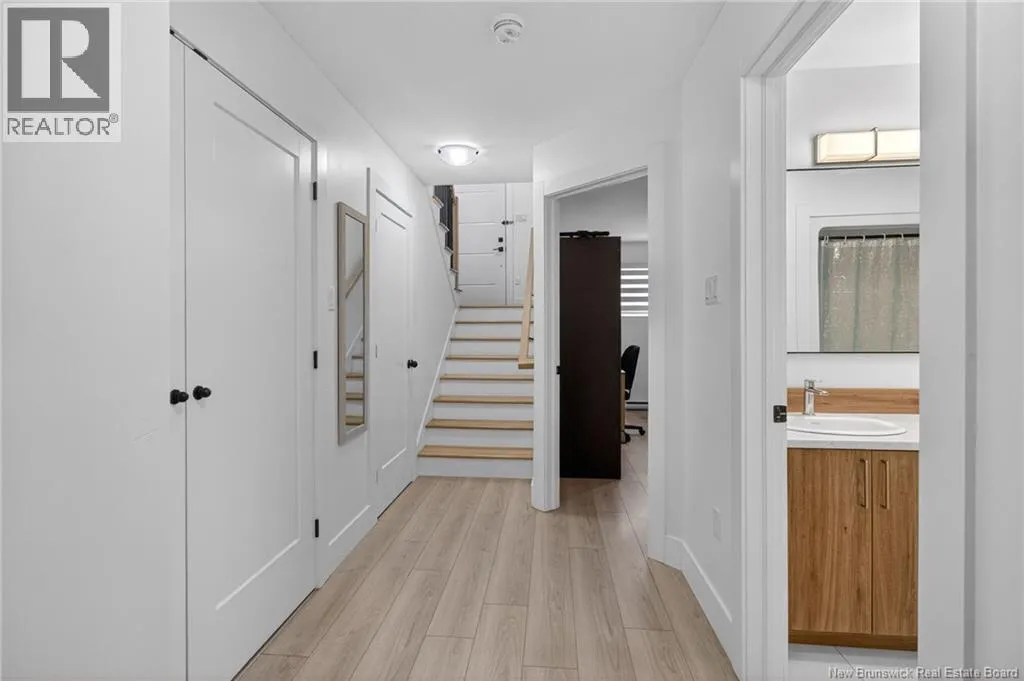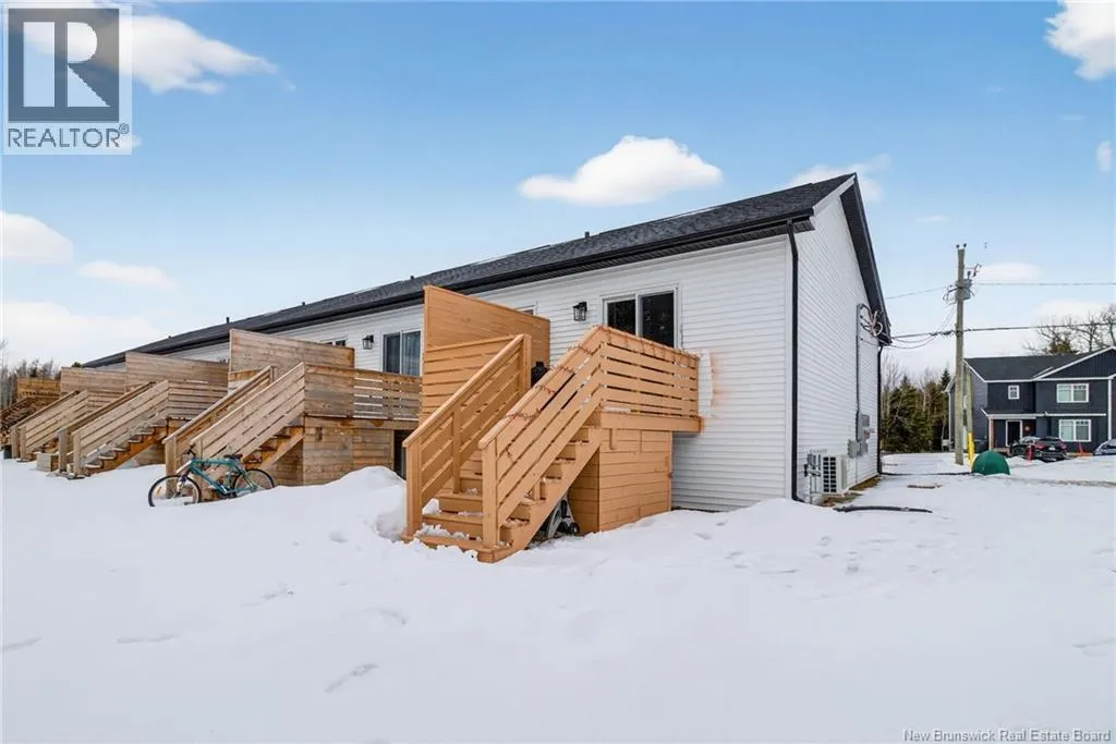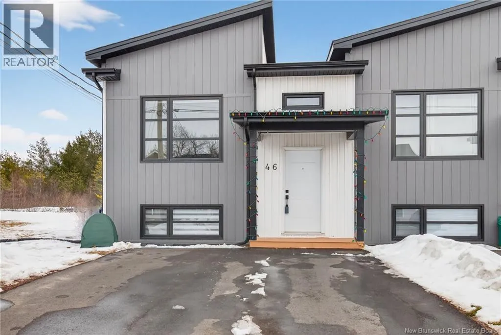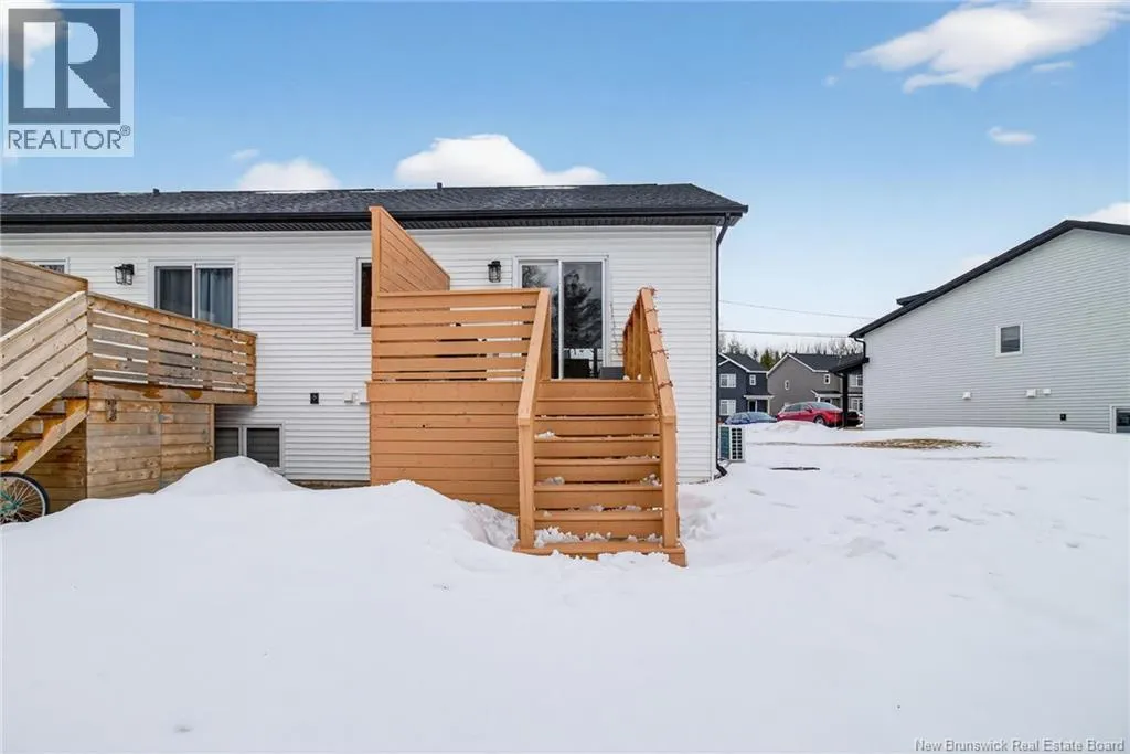 From Centrale St, turn onto Beau Domaine St. # 46 will be on the left side of the street. Welcome to 46 Beaux-Domaine Street, Dieppe Modern CORNER Townhouse Backing on a Walking Trail Built in 2024 modern construction with remaining new home warranty Corner split-entry townhouse offering extra natural light and privacy Backs onto a walking trail no rear neighbours and a PRIVATE backyard feel 3 bedrooms 1.5 bathrooms Main Features: Bright open-concept living space Electric fireplace in the living room for a warm and inviting atmosphere Mini-split heat pump for year-round comfort and energy efficiency Owner Improvements Since 2024: Blinds installed throughout the home Programmable thermostats in bedrooms and lower bathroom for energy efficiency Updated light fixture above the kitchen island Shelf added in primary bedroom closet TV wall-mount hinge system installed in the living room Swing bar security door guard on entrance door Exterior & Outdoor Features: Painted deck Enclosed storage under the deck Eavestrough extension added to direct water away from the foundation Rhododendron and rose bushes planted for added curb appeal Located close to schools, amenities, and walking trails and move-in ready home in a desirable Dieppe neighbourhood Contact your Realtor to schedule your private viewing today! (id:27476)