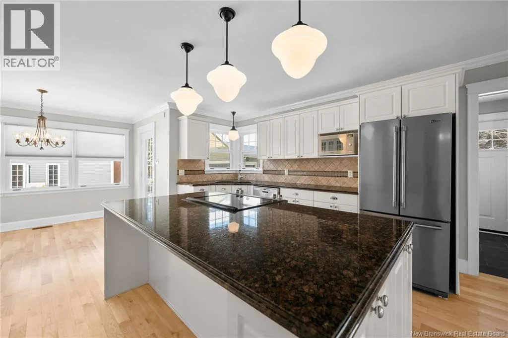 Off Chartersville Road take off to Central and then turn onto rue Vanier you will find the home to your right. *Click on link for 3D virtual tour of this property* Welcome to this charming 2 storey home located on Vanier Street in Dieppe, offering timeless curb appeal with classic wood siding, a welcoming covered front veranda & a detached double garage with loft space. The fenced backyard backs directly onto walking trail, creating a private outdoor setting. Step inside to a bright main floor featuring beautifully refinished hardwood floors & spacious living areas designed for comfortable everyday living. The large kitchen is both functional & inviting with abundant cabinetry, granite countertops & a central island ideal for meal preparation or gathering with family & friends. The main level also includes a spacious living room, dining room, office, cozy den/sitting room, mudroom & convenient 2 PC bathroom. Central heating & cooling provide year-round comfort throughout the home. The 2nd floor offers 3 generous bedrooms including a comfortable primary with a large walk-in closet. The family bathroom is renovated. An additional space is the ideal home office, yoga room or play room. The partially finished basement adds additional living space with a family room, combined 3-piece bathroom & laundry area, along with plenty of storage. Outside, the fenced backyard, detached double garage with loft storage & direct access to nearby trails complete this well maintained property, offering a wonderful blend of space, comfort & lifestyle in a desirable Dieppe neighbourhood. Lot size: 81x114 (id:27476)