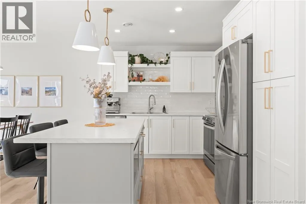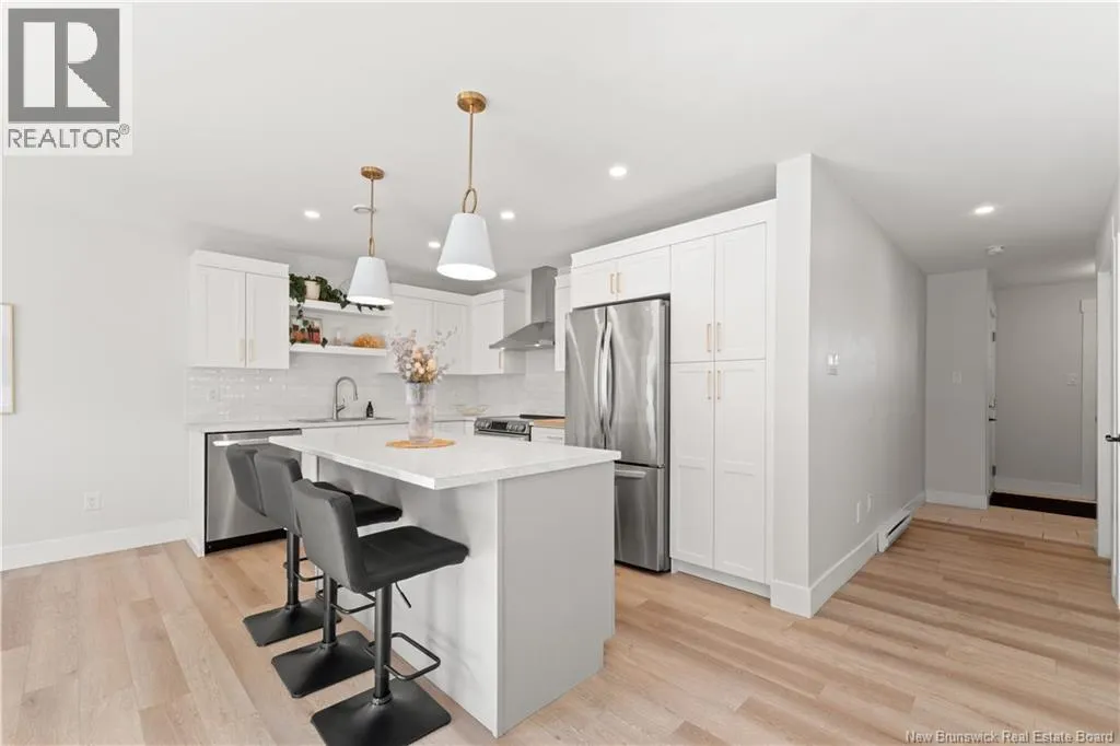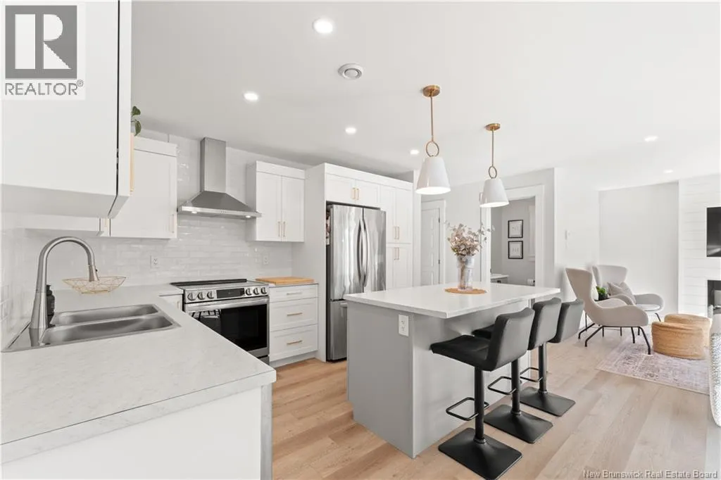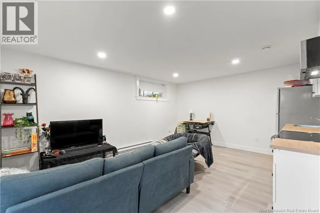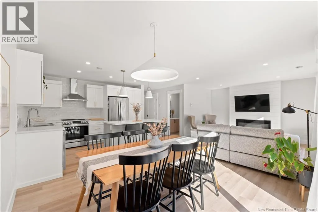From Melanie Street, Turn right onto Lorette. Built in 2022, this contemporary 2-storey home in sought-after Dieppe offers modern finishes and flexible living space for the whole family. The main floor features an open-concept living, dining, and kitchen area with a shiplap fireplace, white cabinetry, centre island, and quality vinyl plank flooring throughout. A 2-piece bath and large front entrance complete the level. Upstairs, three generous bedrooms include a primary suite with a huge walk-in closet and 3-piece ensuite. A 4-piece bath and dedicated laundry room with ample storage round out the second floor. The finished basement features a 1-bedroom in-law suite with its own living room, kitchenette, full bathroom, and private side entrance, perfect for extended family. Outside, enjoy a paved driveway, landscaped lot, attached single garage, and deck. Municipal water and sewer, and ductless heat pump complete this turnkey home in a great location. (id:27476)