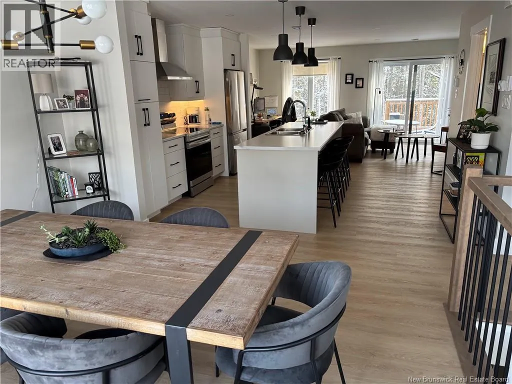 From Dieppe Blvd, turn onto Elsliger Street. Welcome to 150 Elsliger, a modern townhouse located in a desirable Dieppe neighbourhood and offering a setting that stands out from other properties in the area. What truly makes this home unique is the deeper lot backing onto a protected creek, creating a peaceful natural backdrop with no rear neighbours. This rare feature provides added privacy and a quiet outdoor space that is difficult to find in similar homes. The main level features a bright open-concept layout with a spacious dining area that flows into the centre kitchen complete with a large island and ample cabinetry, overlooking the comfortable living space. Patio doors lead to the back deck where you can enjoy the treed surroundings. A convenient half bath completes the main floor. The lower level offers three bedrooms, including the primary bedroom, along with a full bathroom with double vanity, laundry area, and additional storage space. Additional features include a mini-split heat pump for efficient heating and cooling, stainless steel kitchen appliances, paved driveway, landscaping, and modern exterior design elements. Located within walking distance to schools and close to shopping, daycares, walking trails, the airport, and major routes, this property offers both convenience and a rare natural setting. A great opportunity for first-time buyers, investors, or anyone looking for low-maintenance living in Dieppe. LUX Home warranty transferable to new owners! (id:27476)