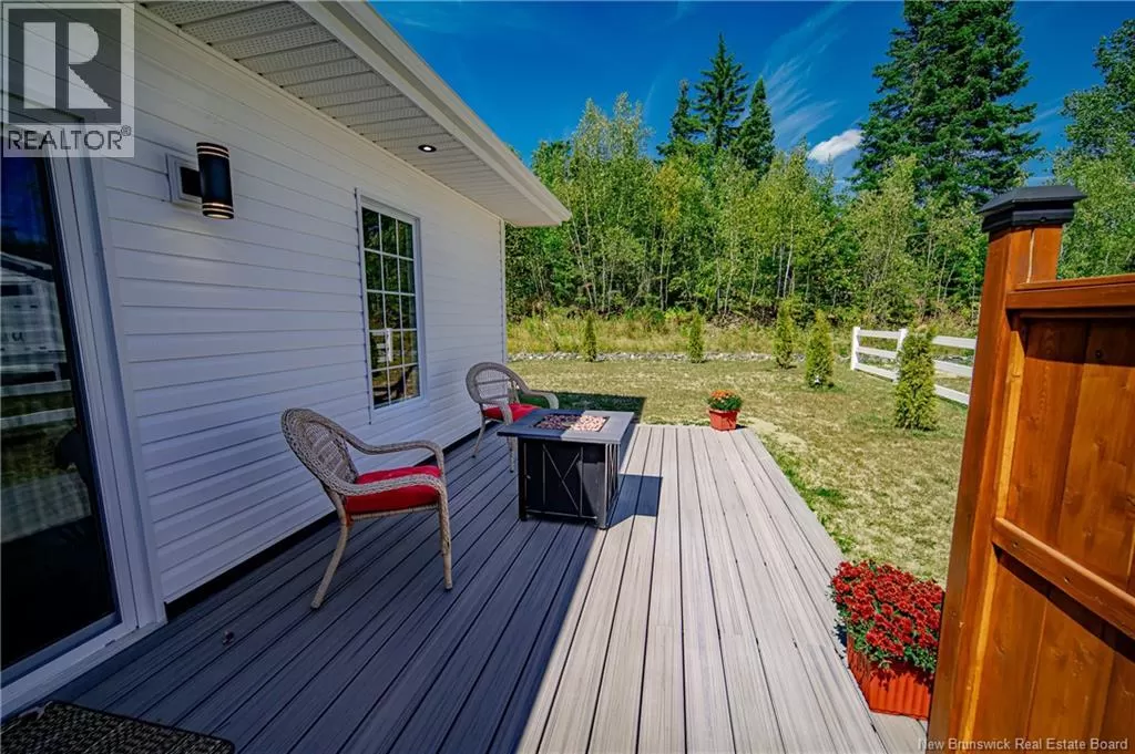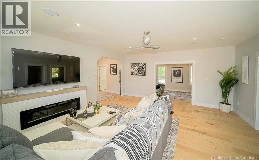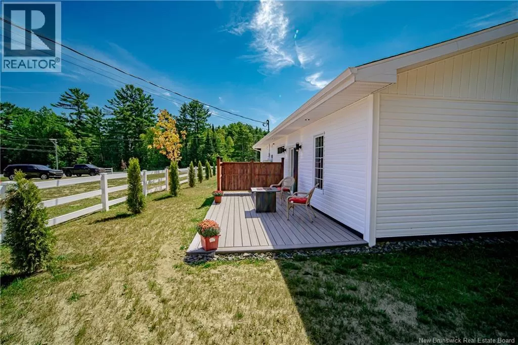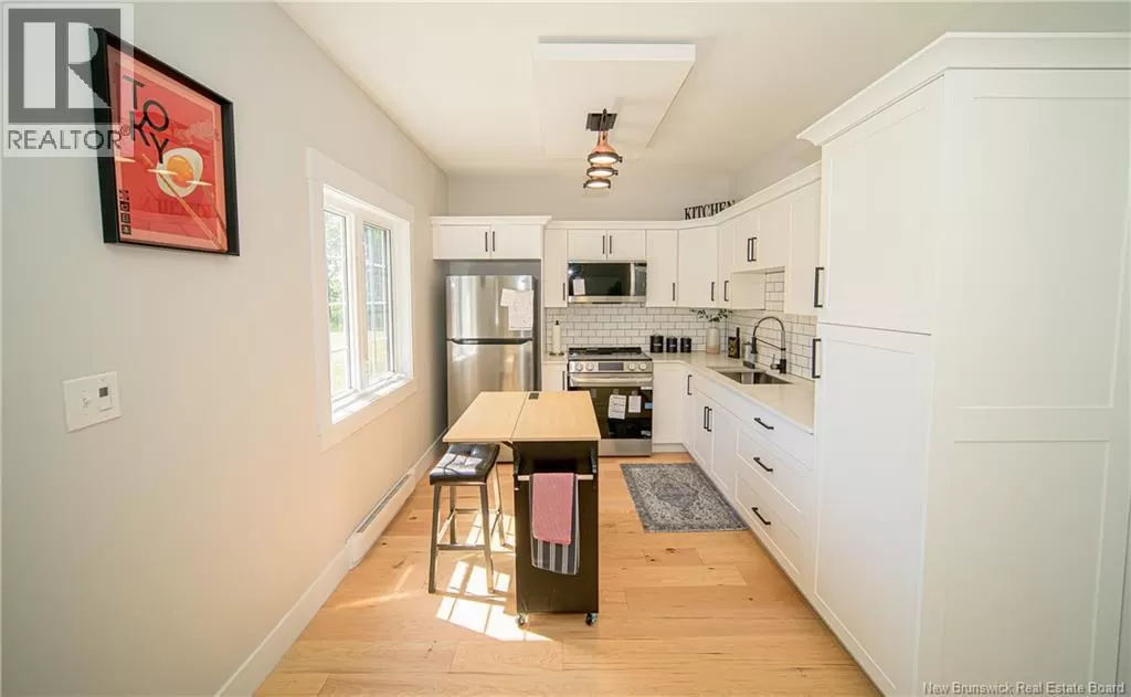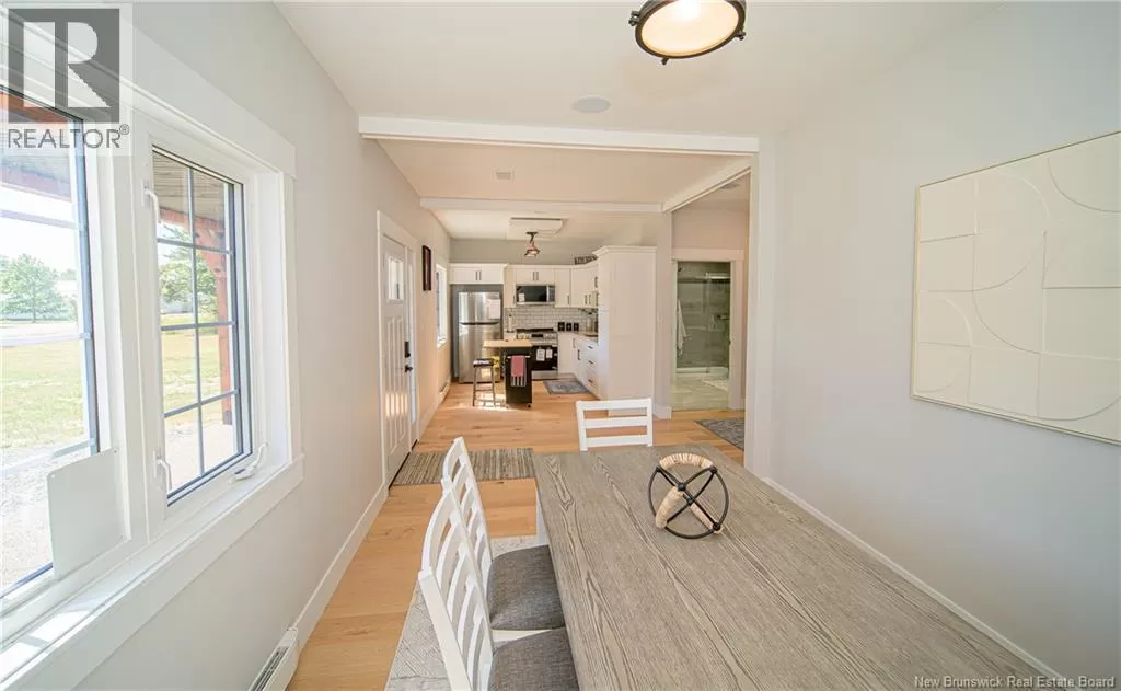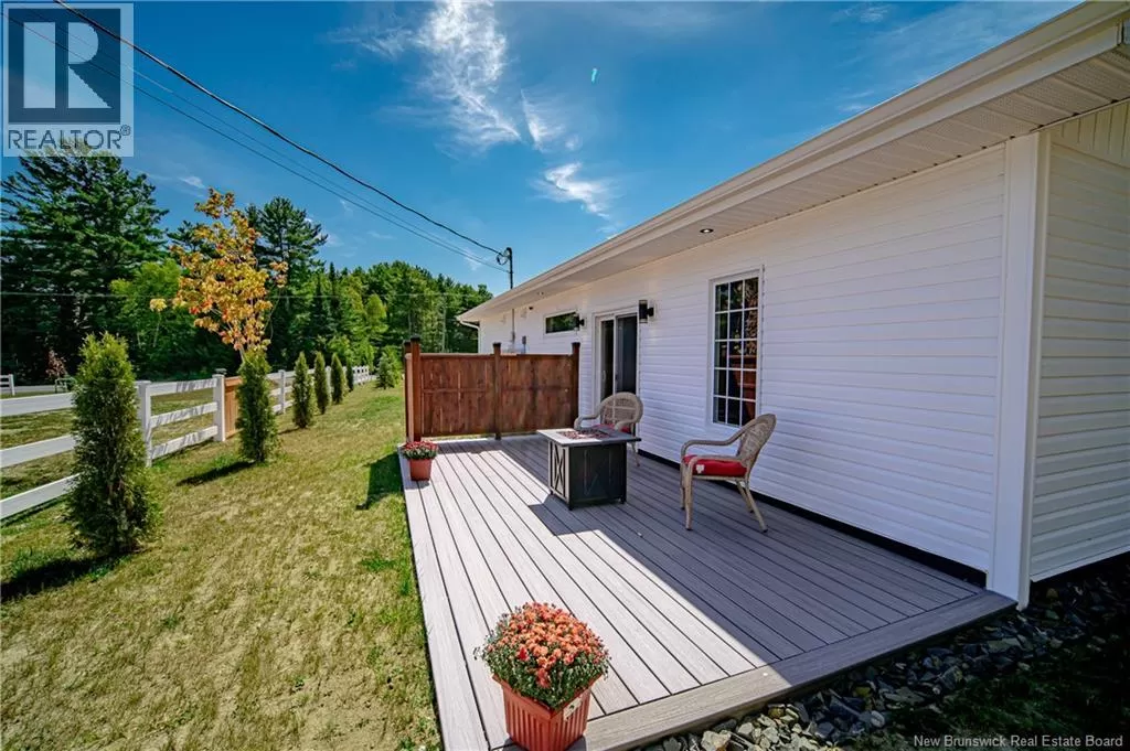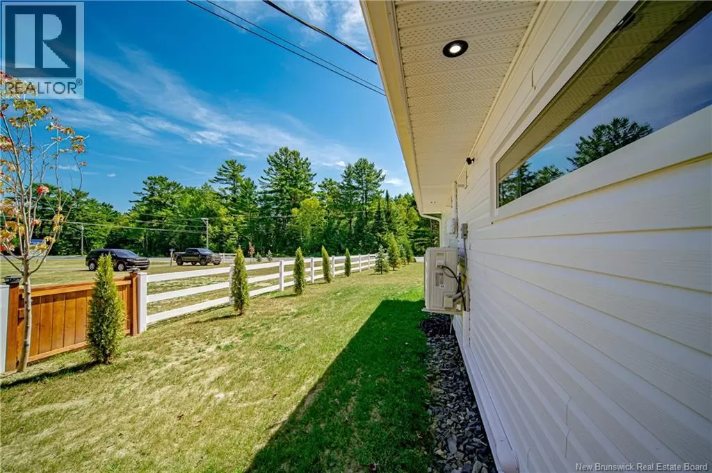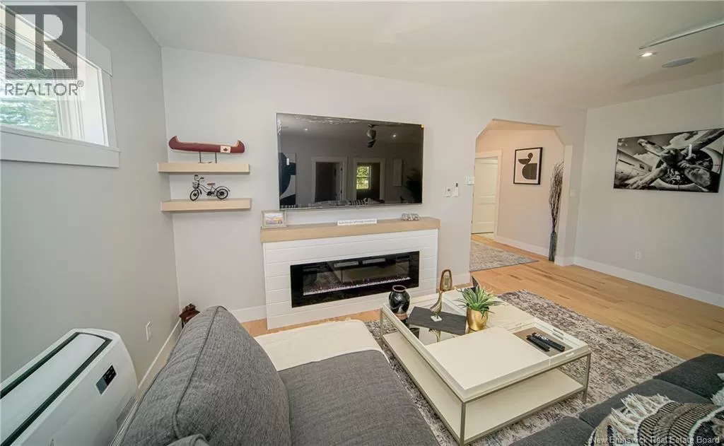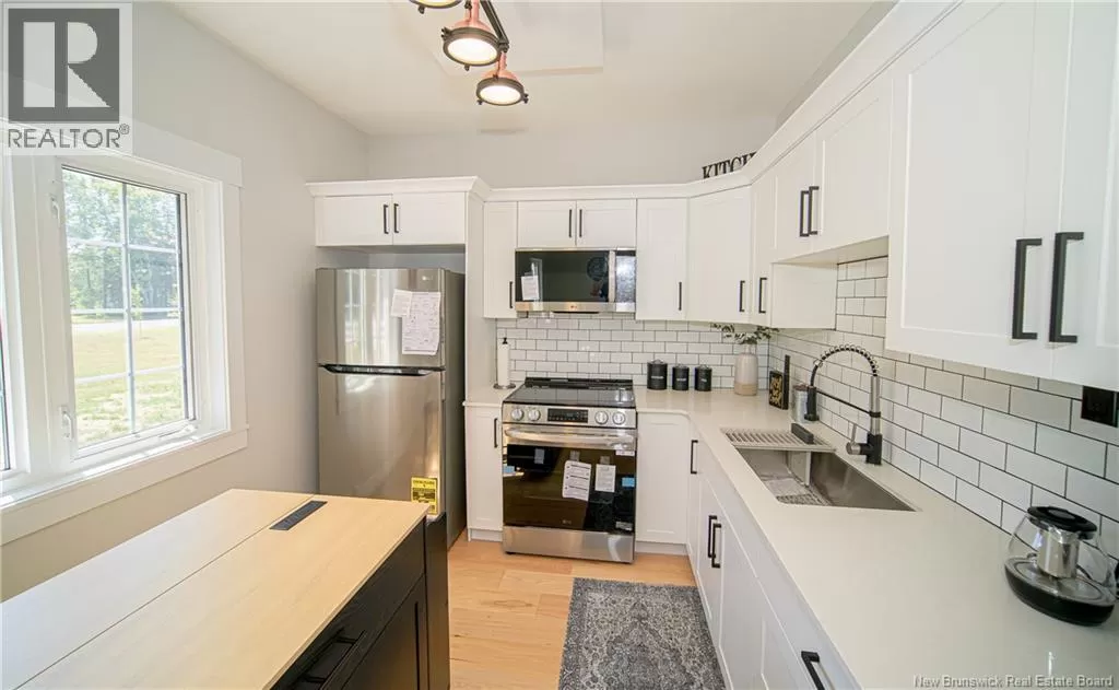 Fredericton to Route 8 to Doaktown Main Street civic #579 Beautifully renovated home is a showstopper! 3 bdrms, modern bath, every detail has been carefully crafted for comfort & style. Step into this gorgeous reimagined home, where modern design meets everyday comfort. 9 ceilings, wide hallways, & surround sound throughout! Every detail has been thoughtfully considered. A bright kitchen featuring custom white cabinetry, quartz countertops, brand-new appliances with an open layout flowing seamlessly into the dining areaperfect for entertaining. The bathroom boasts custom finishings, a walk-in shower, and convenient stackable washer/dryer. The wide hallway leads to the large living room filled with natural light, complete with striking fireplace with illuminated flame & stylish mantel. Stay comfortable year-round with a ductless heat pump in the living room. A spacious setting perfect for family time & hosting guests. A private deckideal for BBQs, relaxing evenings, and summer gatherings. The primary suite is a true retreat with a large walk-in closet and its own ductless heat pump. Two additional generously sized bedrooms provide flexibility for family, guests, or home office. sleek under-eave lighting for a modern exterior finishall ensuring peace of mind and long-lasting value.move in and enjoy. Amenities close by, golf course, grocery, hardware, pub/restaurant, Miramichi River, NB trails, this property offers the best of comfort and convenience. All measurements are approximate to be confirmed by purchaser (id:27476)