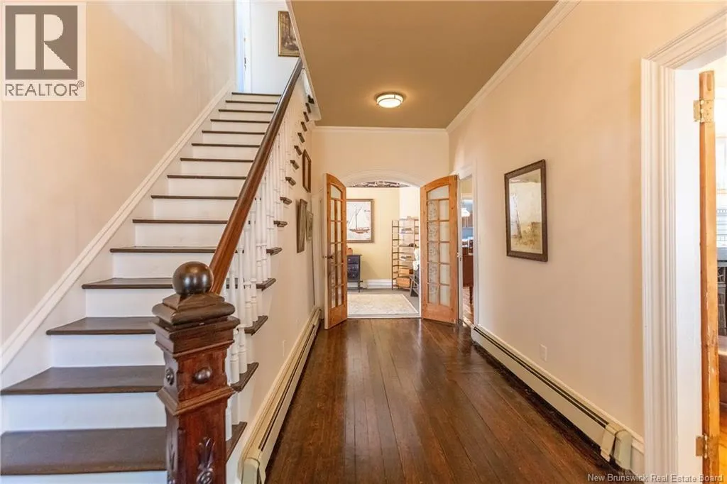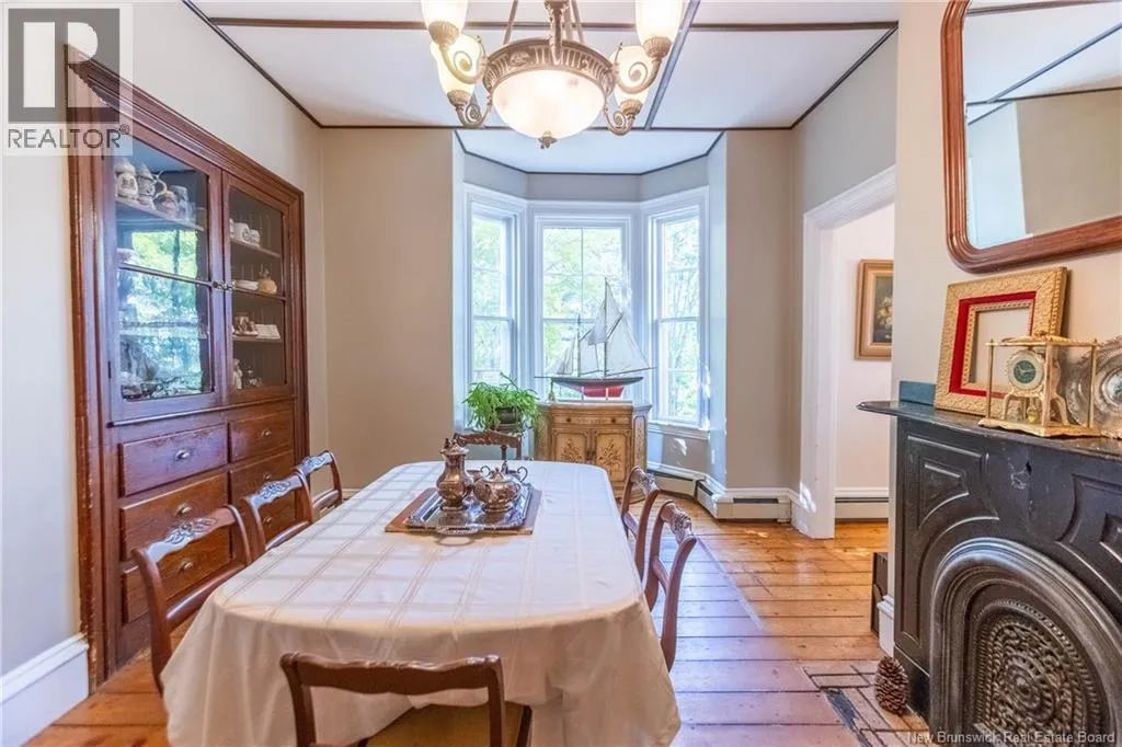 From Memramcook continue from Royal Road straight onto Route 106, continue to Dorchester straight onto Main. INTRODUCING: THE ELMS! This stunning 1880s grand home sits perched on a 2.1 acre lot with views of the valley, surrounded by mature trees, and in a fantastic quiet historic village. Originally built by John F Teed - this home mixes history with modern living. From the beautiful bay windows, to the cornice mouldings, and the enclosed sunporch - this home is truly a gem. A restored open-air porch leads through the sunporch into the foyer. This space features a gorgeous staircase, and leads through to the living room with wood burning fireplace and bay window. The formal dining room has a decorative fireplace and a second bay window, as well as a beautiful built-in china cabinet. The country kitchen has a wood stove, garden doors to the side deck, and space for informal dining. Also on the main floor is a den/office, half bath, and at the rear is a storage/workshop area with secondary staircase. The second floor has two large bedrooms, a full 4pc bathroom, and two additional bonus rooms (accessed through the second bedroom or the secondary staircase), as well as extra storage. The third floor has been beautifully renovated into an ideal primary suite - complete with a spa-like bathroom and kitchenette. This space could easily be used as an in-law suite as well. The property is stunning - including two parcels of land, a ravine with a brook running through, and many stately hardwood trees. This home sits 10 mins to Sackville/Memramcook, and 25 mins to Dieppe/Moncton. (id:27476)