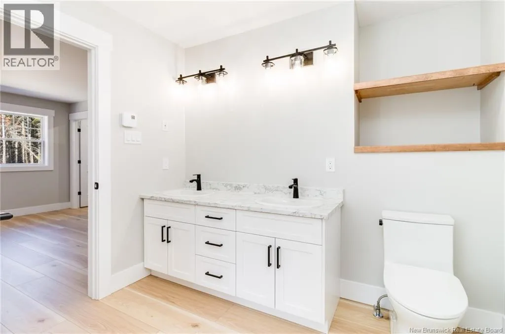 Take Carlisle Rd to James, left on Belle, right on Katie, left on Courtney, right on Sandlewood Situated on a private 1.5-acre lot at the end of a quiet court, this beautifully designed home offers designer board batten siding and an Imperial handrail system on the covered front porch, creating exceptional curb appeal. Inside, the bright, open-concept layout is both stylish and functional, featuring luxury laminate flooring throughout and a heat pump for year-round comfort. The kitchen is a large, complete with a quartz island, contemporary cabinetry, and a pantry with rollouts. Patio doors lead to a spacious deck, perfect for outdoor entertaining. The inviting living room is filled with natural light from oversized windows and a soaring cathedral ceiling. The primary suite offers a walk-in closet and a spa-like ensuite with a tiled walk-in shower, stand-alone soaker tub, and double  vanity. Two additional bedrooms are thoughtfully positioned on the opposite side for privacy, along with a stylish main bath featuring custom cabinetry . The attached 2-car garage leads into a mudroom with a custom bench and a laundry area with custom cabinetry for added convenience. The unfinished basement offers endless potentialcustomize it to suit your needs. This new build also comes with a Lux New Home Warranty, offering peace of mind. Enjoy a beautiful lifestyle just minutes from the city (id:27476)