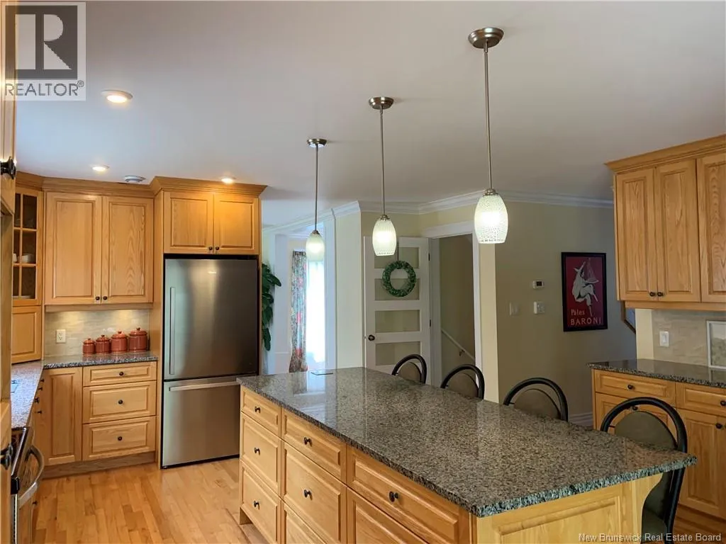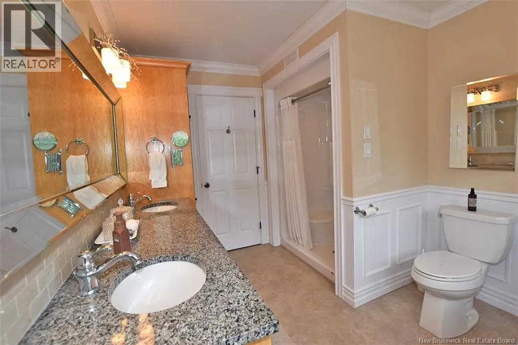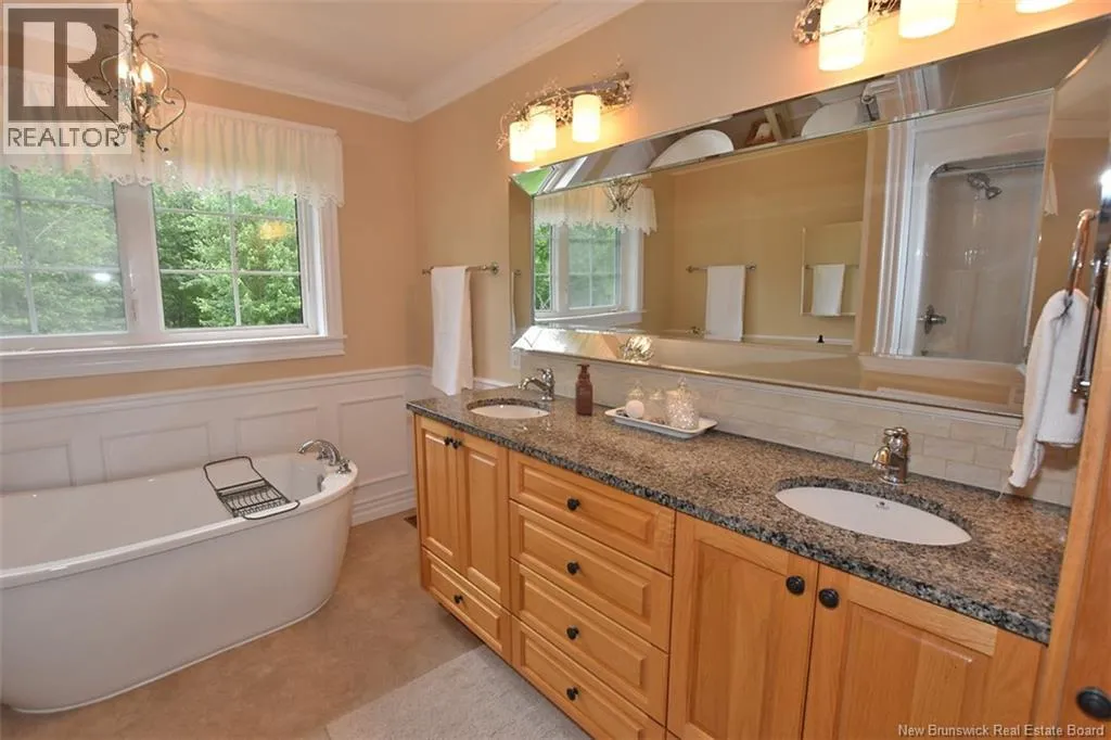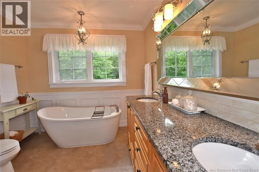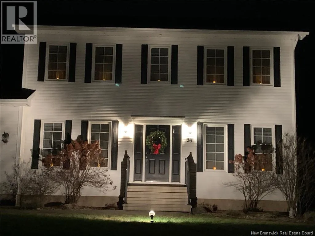 Carlisle Rd to Islandview Drive, first right to Robby St. Beautiful custom Colonial on a professionally landscaped 1.1-acre lot in Greer Heights, just off Carlisle in Douglas. Set on a quiet road near trails, its ideal for snowmobiling, ATVing, snowshoeing, or walking the dog, with wildlife often seen in your private wooded backyard. Enjoy peaceful living within city limits10 minutes to Brookside Mall, 15 to downtown, 30 to Oromocto. This immaculate 2,820 sq. ft. home offers elegance and modern function across three levels. The custom kitchen features granite counters, ample cabinetry, and patio doors to a large covered deck. The main level also includes formal living and dining rooms, full laundry, and half bath. Upstairs is a luxurious primary suite with walk-in closet and spa-like ensuite, plus two additional bedrooms and a full bath. The finished lower level offers a fourth bedroom, full bath, and spacious family roomperfect for guests or family living. Extras include a ducted heat pump, generator panel, abundant storage, and pristine condition inside and out. A stunning property combining style, space, and comfort in a prime location. (id:27476)