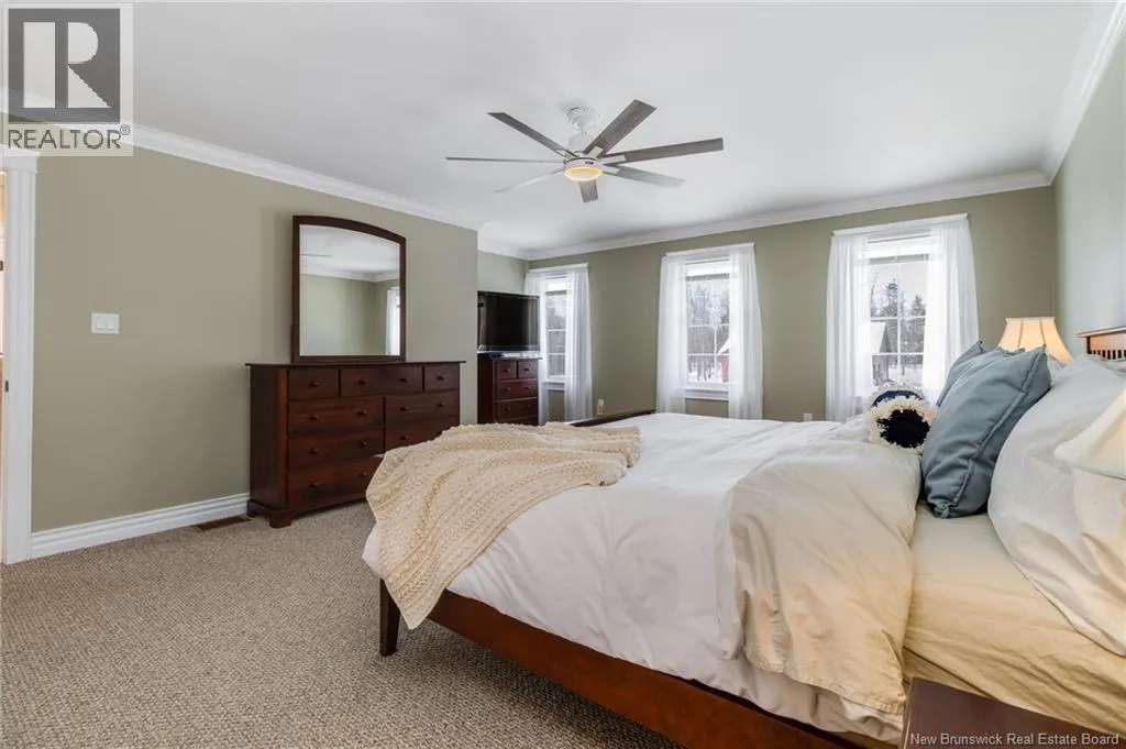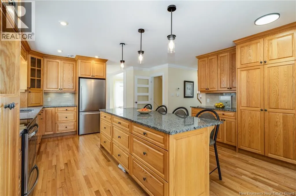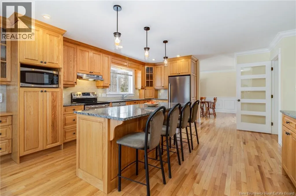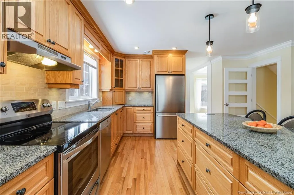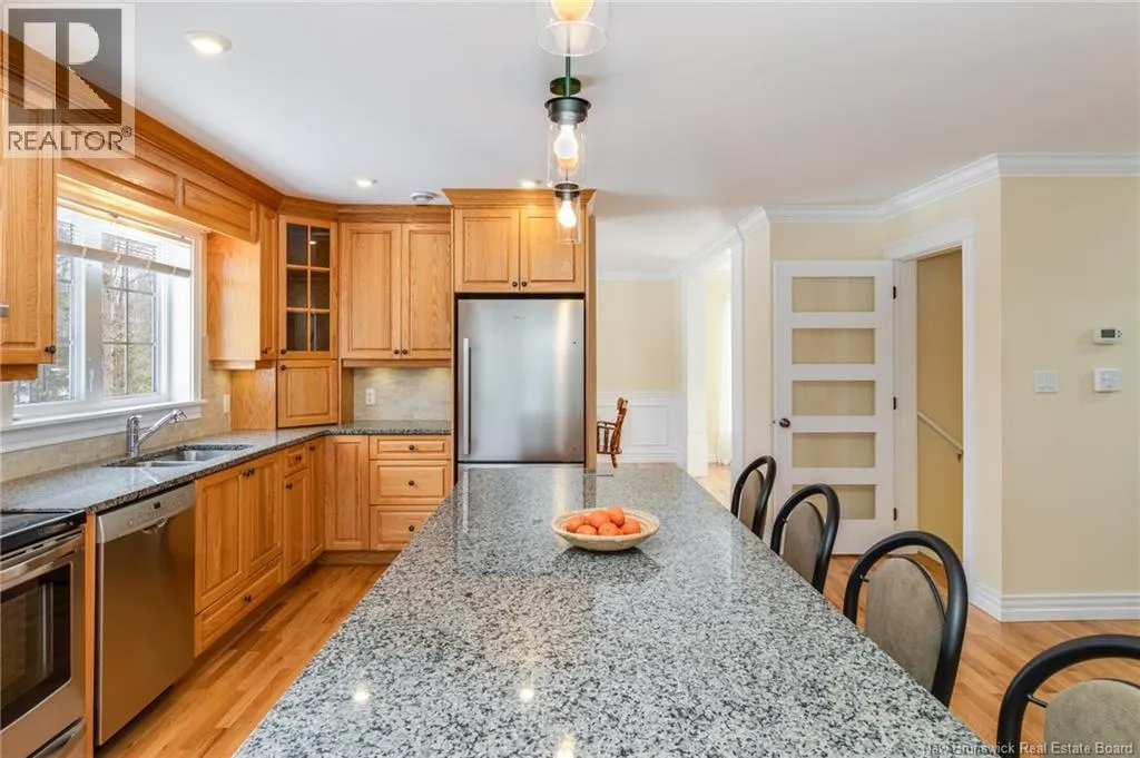 Route 105 to Carlisle Road. Turn right on Islandview Drive. Robby Street is first street on the right. Some homes are flashy. 36 Robby Street on the other hand? Confident, well-built, and quietly impressive. A classic colonial with curb appeal and enduring charm, combined with a large and private lot, and surrounded by mature trees on one of Douglas most peaceful streets. You can expect low traffic, reduced speeds, kids playing outside, and an actual community around you. This, while being 15 minutes from downtown. Inside feels solid the moment you walk through the door. The main floor is made for everyday life and entertaining. The custom kitchen is the star of the show, with solid wood cabinetry, granite countertops, a big island, and more storage than you think you need (until you have it). The rest of this level has an open flow, with intention. Formal dining, living room with custom columns, updated modern lighting, main-floor laundry, and a functional mudroom setup right off the front door. All bedrooms are tucked away upstairs away from the chaos. The primary suite is over-sized with an ensuite (complete with soaker tub!). The basement is fully finished and flexible, the garage is large and practical, and the outdoor spaces were designed to host (especially the professionally finished covered deck with privacy screens). Efficient ducted heat pump (NB Power $272/month). Generator hookup & hot tub negotiable. The whole space feels more boutique than builder-grade. No, this isnt a trendy house. Its a stay-for-a-long-time house. And those are the hardest ones to find. (id:27476)