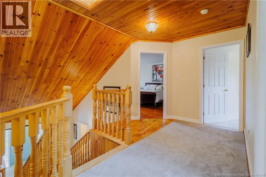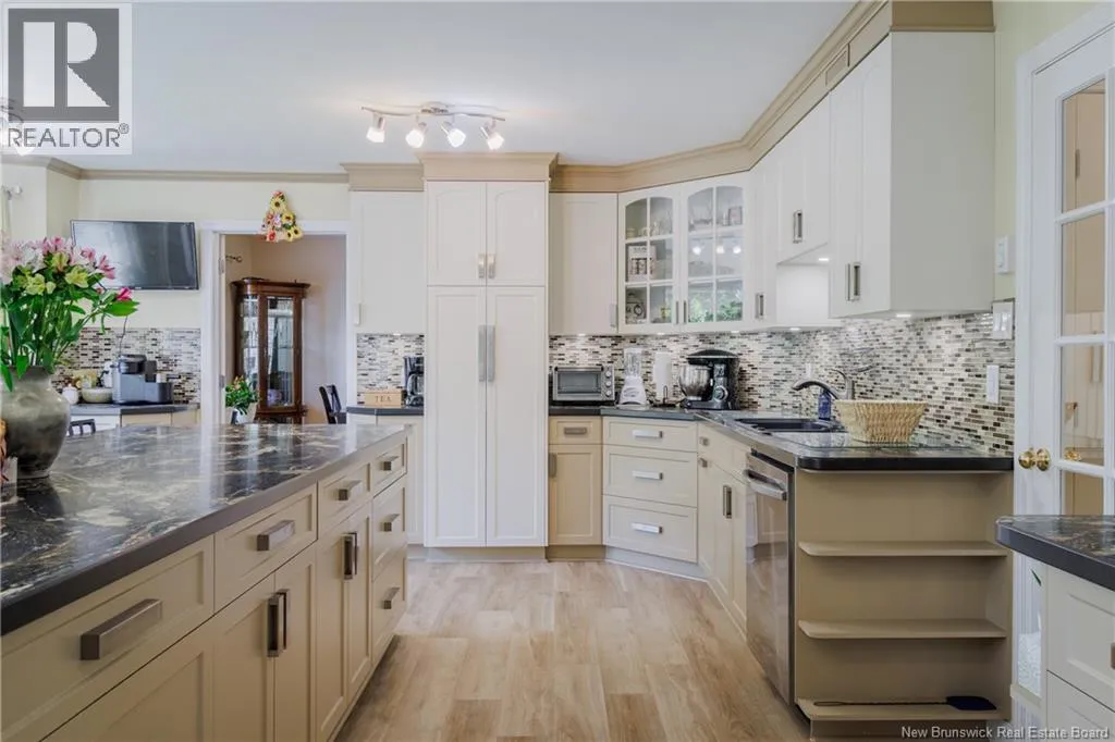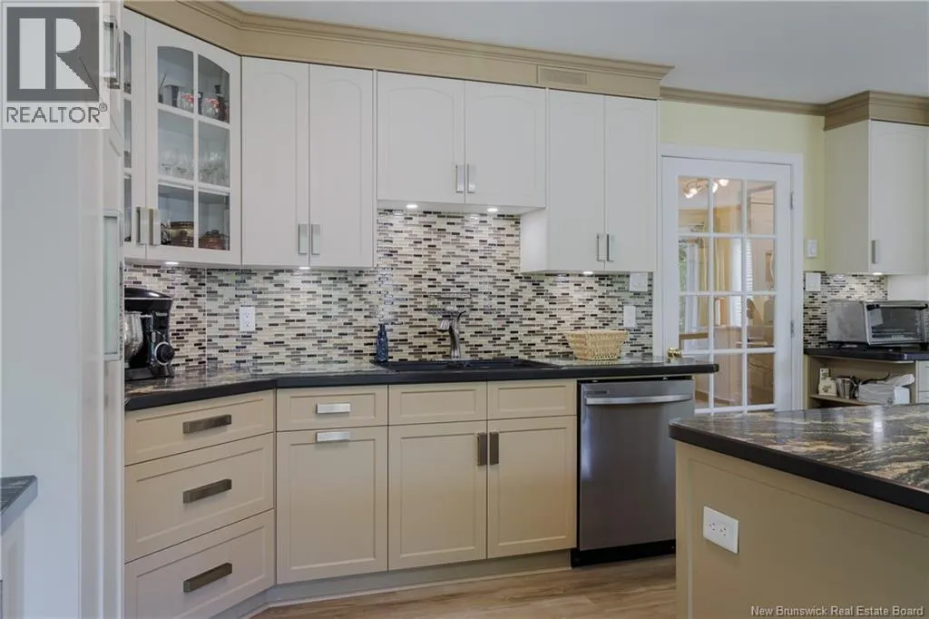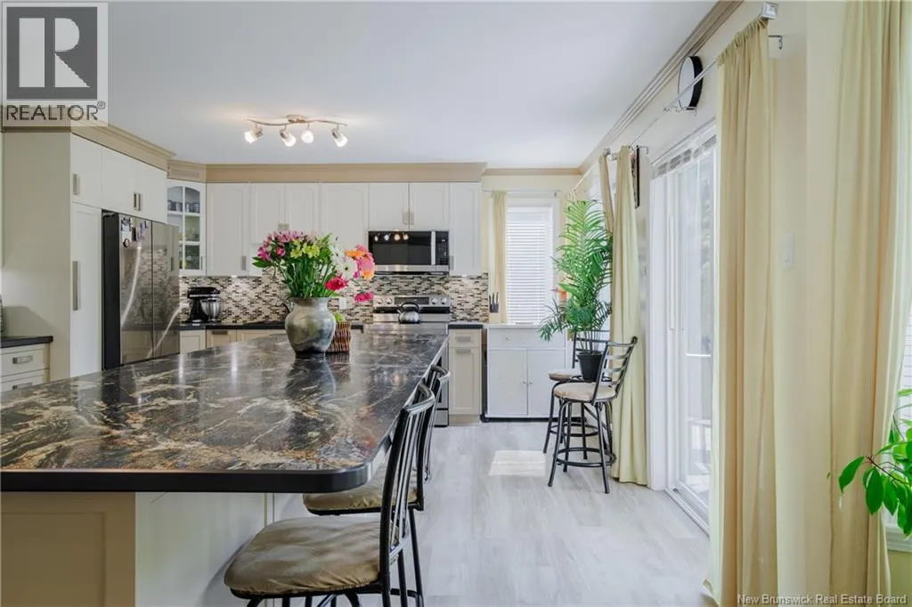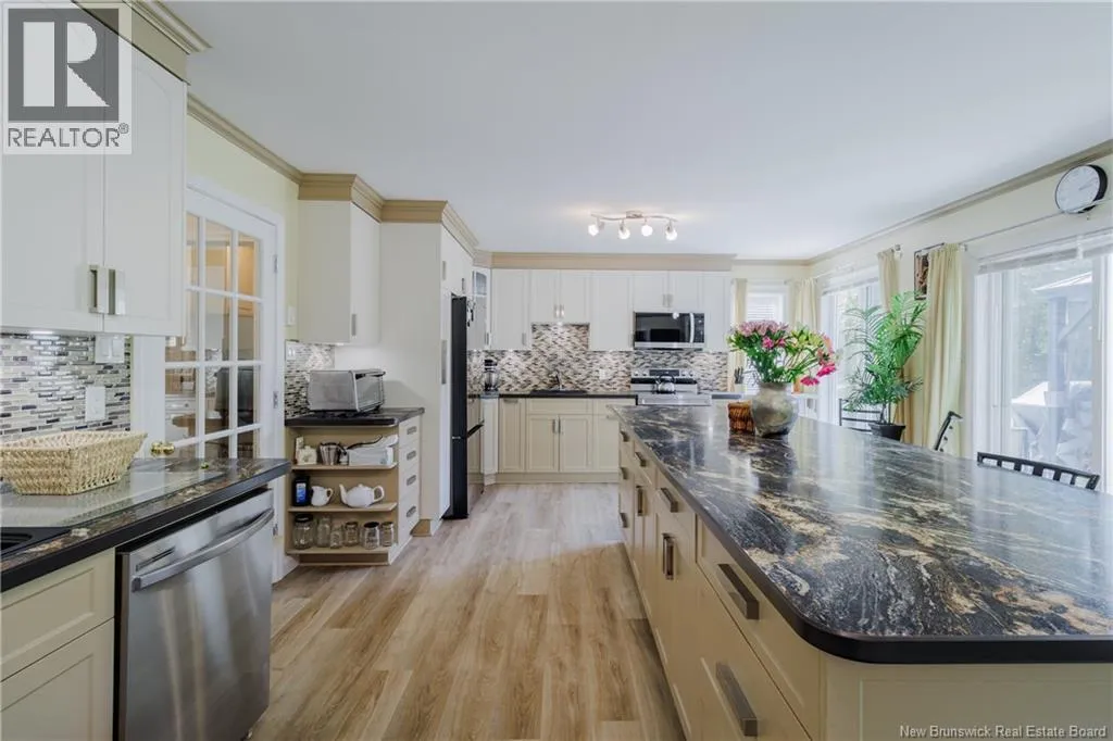 Take Route 105N in western direction, turn right unto Carlisle Rd, right unto James St, left on Belle Dr and right unto Katie Ave. House is second from end of street on your left, civic #81. Tucked away at the end of a quiet street, this well-maintained home reflects true pride of ownership, with an extensive list of upgrades and maintenance completed over the years. Soaring vaulted ceilings lead to the inviting living room with a pellet stove and heat pump, seamlessly connected to the dining area. At the heart of the home is the expansive, fully renovated kitchen where a stunning 12-foot island serves as the centerpiece. This oversized space features two sinks, a pantry, stainless-steel appliances, and large picture windows overlooking the partially fenced backyard. Sliding doors lead to a spacious composite deck. The main floor also offers a laundry room, a guest half-bath, and direct access to the heated, insulated double garage with attic insulation. Upstairs, youll find 3 generously sized bedrooms, including a primary suite with walk-in closet and private ensuite. The main bath features a corner tub, separate shower and double vanity. The finished basement adds more living space with 2 bedrooms (egress windows), a heat pump, comfortable living area, and full bath. With its own separate side entrance, this level offers excellent potential for a granny suite or rental. Outside, a triple-wide driveway leads to an impressive 35 x 50-foot double-trussed storage building with custom 14-foot doorperfect for hobbyists, storage, or workspace needs. A gravel path winds through the private wooded portion of the property, offering a peaceful retreat and added privacy. (id:27476)