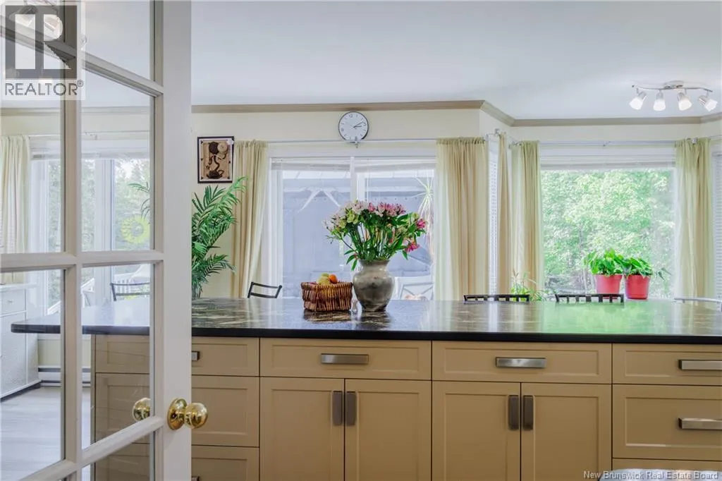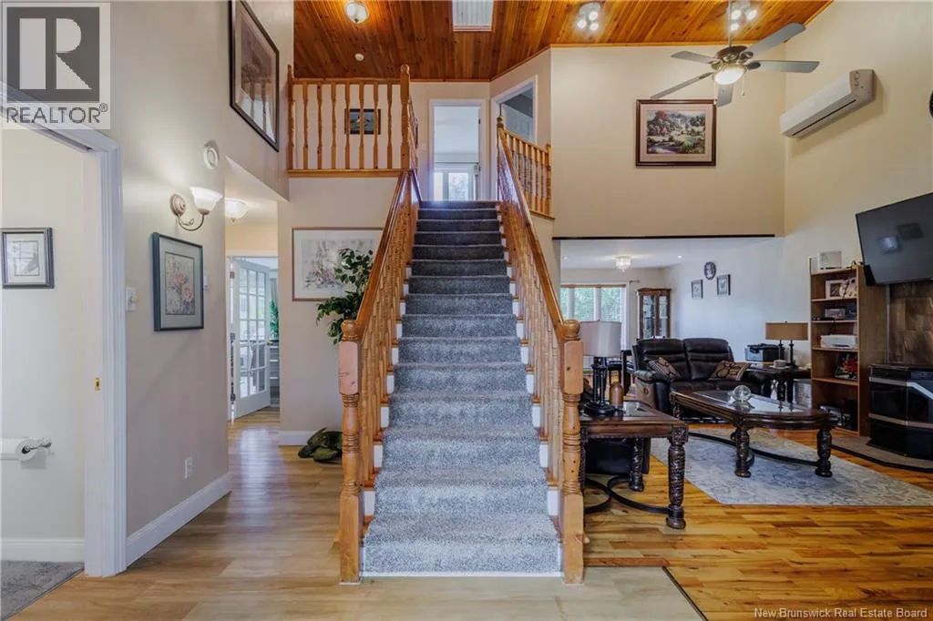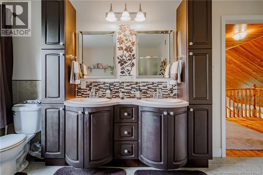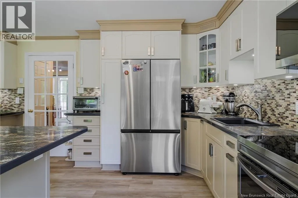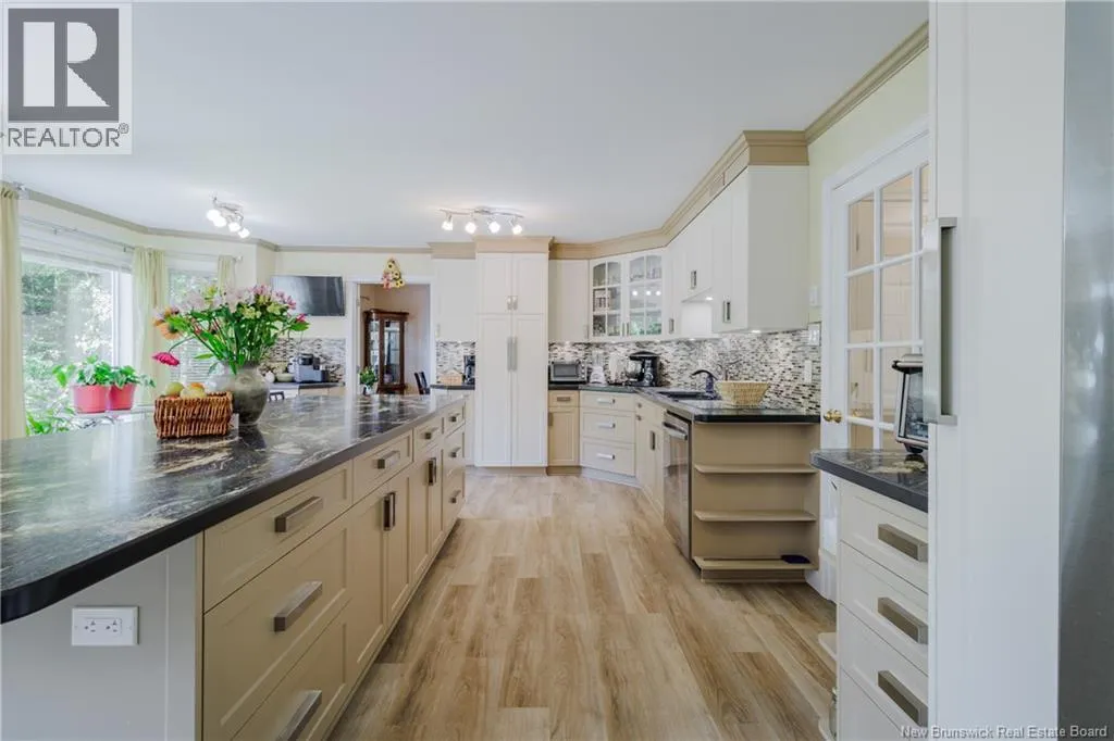 Take Route 105N in western direction, turn right unto Carlisle Rd, right unto James St, left on Belle Dr and right unto Katie Ave. House is second from end of street on your left, civic #81. Tucked away at the end of a quiet street, this well-maintained home reflects true pride of ownership, with an extensive list of upgrades and maintenance completed over the years. Soaring vaulted ceilings lead to the inviting living room with a pellet stove and heat pump, seamlessly connected to the dining area. At the heart of the home is the expansive, fully renovated kitchen where a stunning 12-foot island serves as the centerpiece. This oversized space features two sinks, a pantry, stainless-steel appliances, and large picture windows overlooking the partially fenced backyard. Sliding doors lead to a spacious composite deck. The main floor also offers a laundry room, a guest half-bath, and direct access to the heated, insulated double garage with attic insulation. Upstairs, youll find 3 generously sized bedrooms, including a primary suite with walk-in closet and private ensuite. The main bath features a corner tub, separate shower and double vanity. The finished basement adds more living space with 2 bedrooms (egress windows), a heat pump, comfortable living area, and full bath. With its own separate side entrance, this level offers excellent potential for a granny suite or rental. Outside, a triple-wide driveway leads to an impressive 35 x 50-foot double-trussed storage building with custom 14-foot doorperfect for hobbyists, storage, or workspace needs. A gravel path winds through the private wooded portion of the property, offering a peaceful retreat and added privacy. (id:27476)