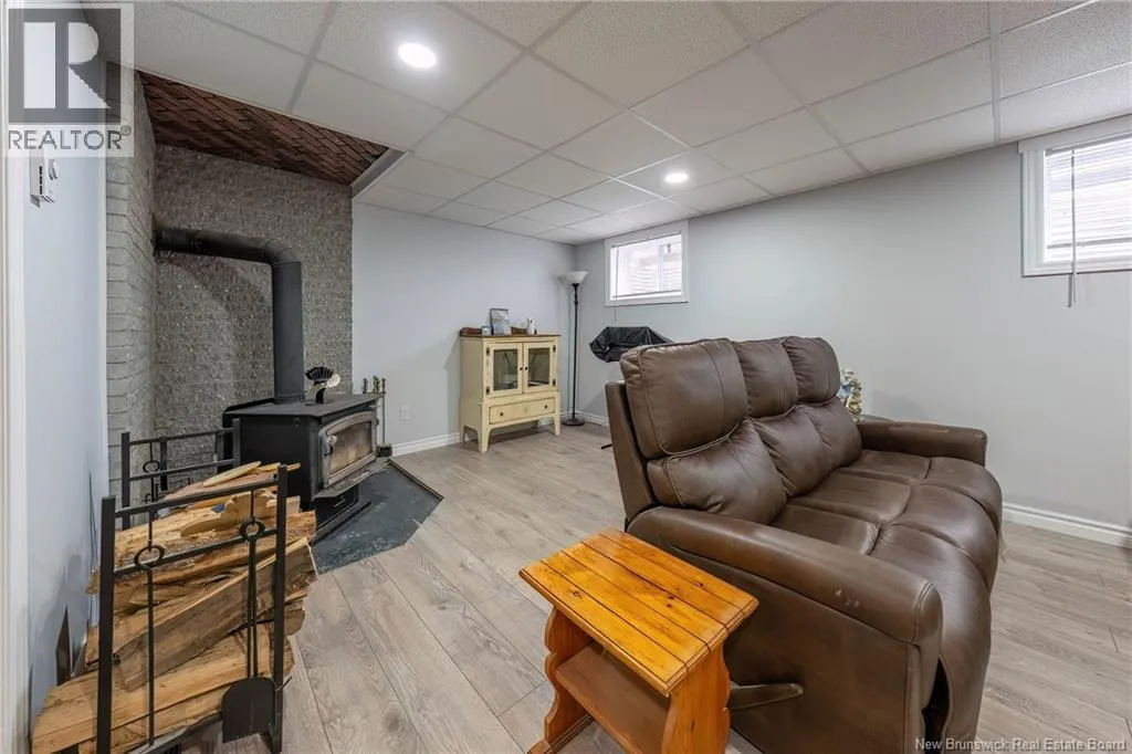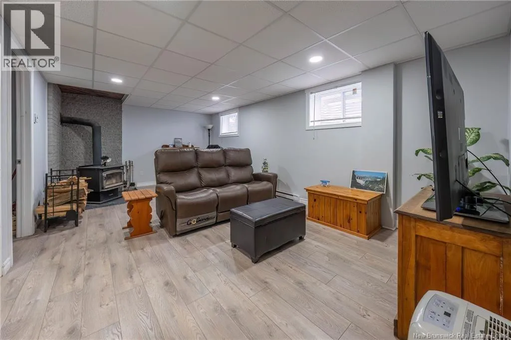 Ch Route 108 towards Drummond, turn left onto Drummond Station Road until you reach civic #124. Fresh on the market and absolutely stunning! Welcome to 124 Drummond Station Rd a beautifully renovated bungalow thats ready to impress from the moment you walk in. The main floor features a welcoming entryway leading into a gorgeous, modern kitchen that flows seamlessly into the bright and open living room perfect for entertaining or relaxing in style. Youll also find two comfortable bedrooms and a full bathroom, all thoughtfully updated with a clean, contemporary feel. Head downstairs and youll love the stylish shiplap accent along the staircase, setting the tone for the fully finished lower level. This space offers a cozy family room highlighted by a wood stove, an additional bedroom, a den or home office, a full bathroom, and plenty of storage. The walkout basement also provides direct access to the attached garage adding both convenience and functionality. Outside, enjoy a private backyard complete with a cozy deck, storage shed, and paved driveway all just minutes from downtown Grand Falls and close to amenities. This home truly checks all the boxes modern updates, functional layout, and a great location. Dont miss your chance to make it yours! (id:27476)