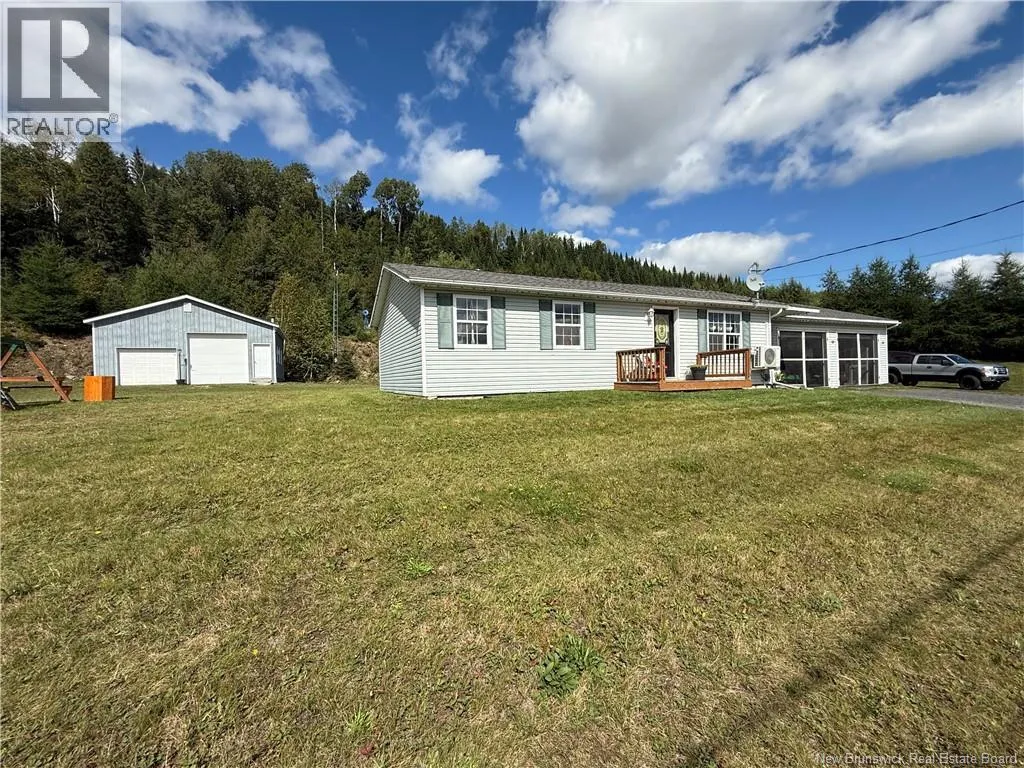 From Broadway Blvd turn left onto Tobique Rd. 7.2km turn left onto Violette Station Rd. 3.7km turn right onto Sutherland Rd. 400m destination is on your left. This charming 2-bedroom, 1-bathroom bungalow offers comfortable living on a quiet, 1+ acre property. Perfect for those who value space and privacy. Step inside to an open-concept layout that combines the kitchen, dining, and living areas, creating a bright and welcoming atmosphere. A walk-in entry adds extra convenience. The unfinished basement provides plenty of potentialwhether youre looking to add more living space, create a rec room, or set up a workshop. Outside, the property features attached garages and detached workshops, ideal for storage, hobbies, or home-based projects. With plenty of room to grow, this property offers flexibility for a variety of lifestyles. Located in a peaceful rural setting, yet just a short drive to nearby amenitiesthis home is a great fit for first-time buyers, downsizers, or anyone looking for a bit more space. (id:27476)