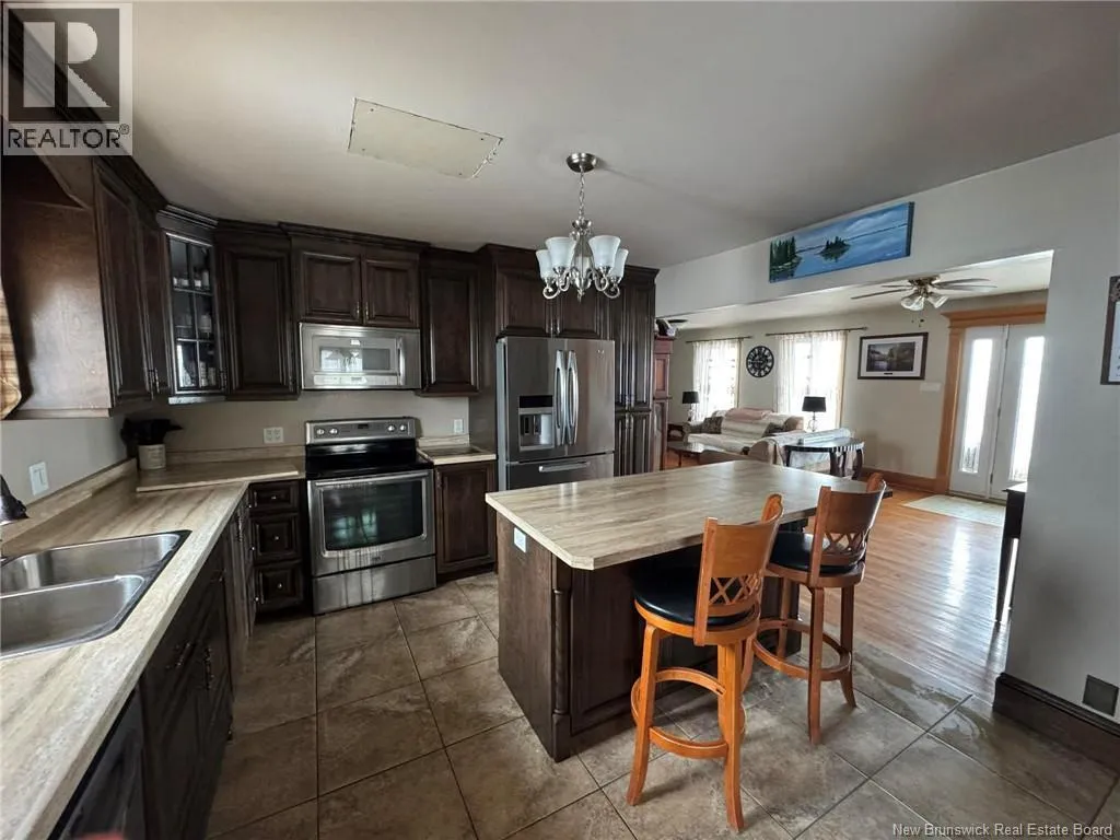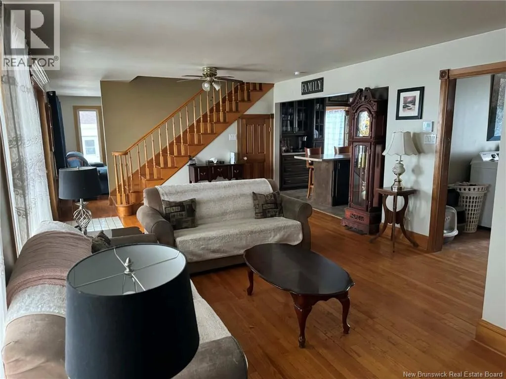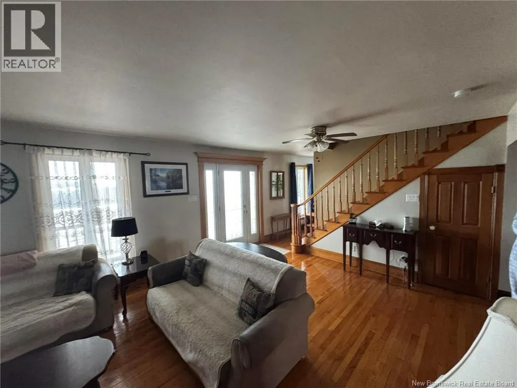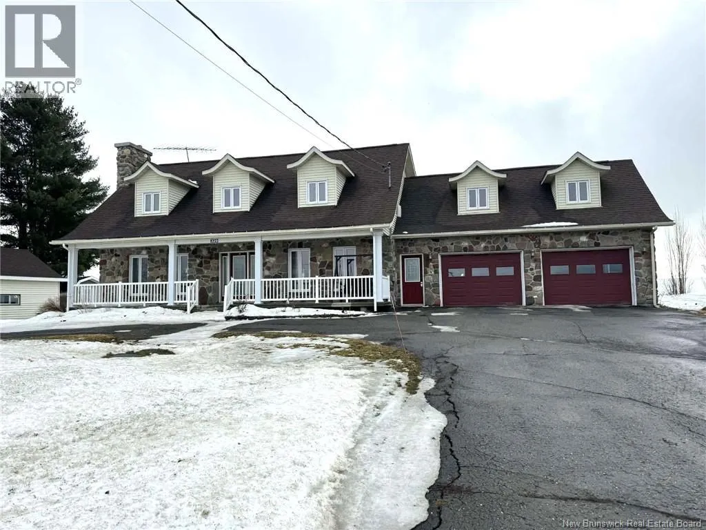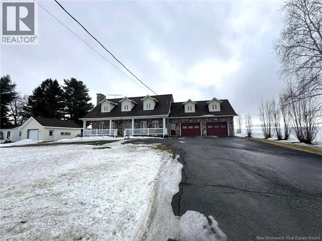 From Grand Falls on route 108 to Drummond at four corners in Drummond turn onto chemin Desjardins travel 1.3 kms until Price Rd. Turn right onto Price Rd. -329 Price Rd. Nestled in the countryside, this beautiful 4-bedroom, 1.5 bath Cape Cod style home offers the perfect blend of space, comfort, and charm. Featuring a double attached garage, this property provides plenty of room for vehicles, storage, and everyday living. Inside, you are welcomed by a warm and inviting atmosphere with a bright living room filled with natural light. The main level offers convenient laundry, a powder room, and an updated eat-in kitchen with newer appliances, generous counter space, and plenty of cabinetry ideal for family meals and entertaining. The dining area features patio doors leading to a spacious deck, while a stunning wood archway with beautiful craftsmanship opens into the great room, where windows allow natural light to pour in and create a bright, open feel. Upstairs offers a full bath, a spacious primary bedroom with walk-in closet and 2-piece ensuite, plus three additional good-sized bedrooms. A large loft/games room, currently used as a bedroom, provides extra space for a growing family. The full unfinished basement offers excellent storage and future potential, extending under the garage with walk-up access. The home also features a newer furnace and heat pump for added comfort. Outside, enjoy scenic views from the charming front porch, along with two storage sheds (18Ã24 with loft & 12Ã9.5). A must-see family home offering space, updates, and country charm. (id:27476)