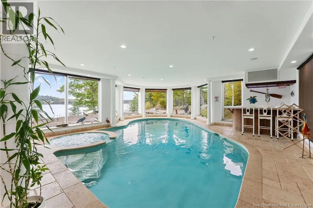 From King St towards Milltown turn left onto prince William Prince William becomes ledge road Stay right onto Todd's point 78 todds point is on the right-hand side Welcome to 78 Todds Point Rd, Charlotte Countys most exceptional riverfront property. This sprawling, luxurious waterfront estate sits on 12 acres of private tranquility, where the historic St. Croix River meets the mouth of the Passamaquoddy Bay, home to the highest tides in the world! Offering versatility as a stately residence or a luxury boutique inn, the estate features 11 bedrooms, 9 full baths, and 3 half baths, each with its own attached closet and private ensuite. Elegant living and dining spaces surround a gourmet kitchen, and a full elevator connects all levels of the home. The lower level is designed for recreation and relaxation with an indoor heated pool, spa and gym area, and golf simulator, with the option for a future outdoor pool. Two self-contained apartments add flexibility, one attached to the main home with a private balcony, and another in the carriage house with its own fenced yard and hot tub. Outdoors, enjoy Ipe hardwood decks, a private boat landing, and a 6-bay garage with additional carriage house, with apartment and workshop space. Imagine mornings watching the sunrise over the river, afternoons cruising from your boat landing, and evenings entertaining as the tide rolls in, every day here feels like a luxury retreat. (id:27476)