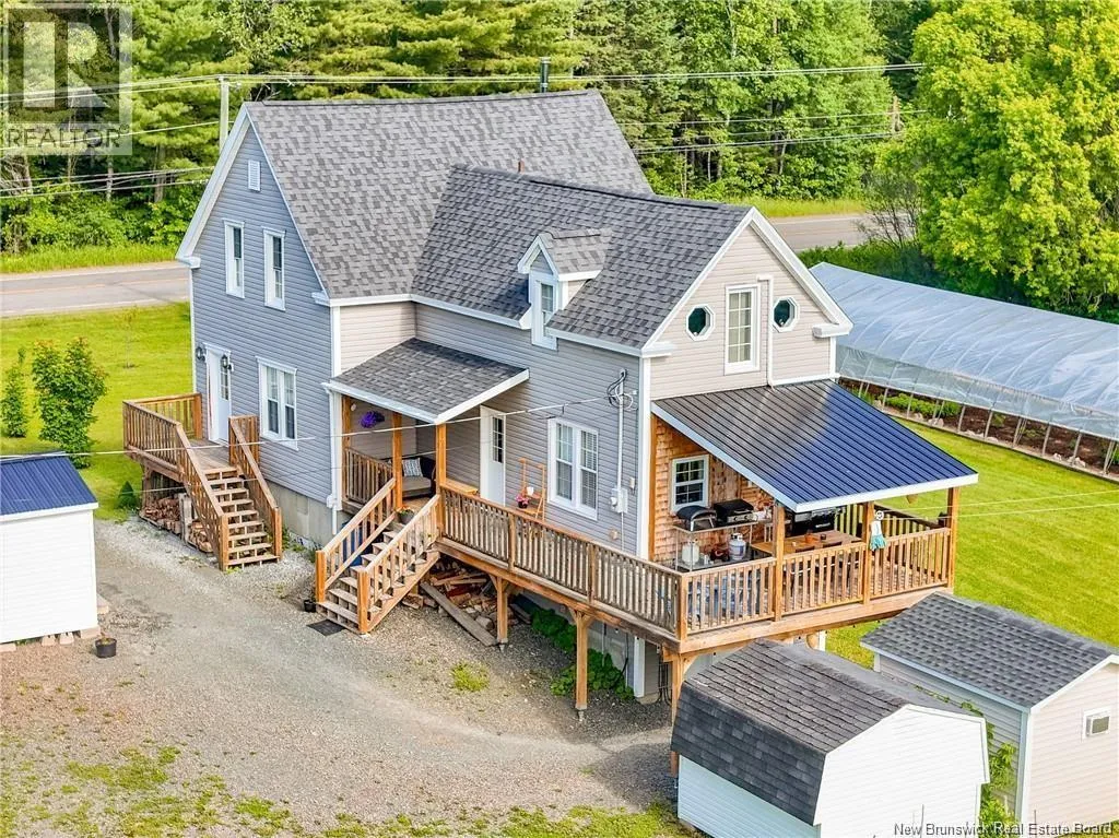 Route 148, Civic #1322 Turn-key Organic Family Farm on 4.9 acres, just 15 minutes from Fredericton! This beautifully renovated 3-bedroom, 2-bath, 1.5-storey home blends timeless character with modern comfort. Fully updated in 2015, improvements include a new foundation elevated over 9 feet, new siding, windows, roof shingles, and flooring. Inside, enjoy vaulted ceilings, hardwood floors, a classic clawfoot tub, stylish barn doors, epoxy countertops, and a WETT-certified woodstove. Four ductless heat pumps provide efficient year-round comfort. The upper level offers a spacious primary bedroom with ensuite, two additional bedrooms, and a cozy sitting area. Outside, the property is well equipped for both lifestyle and income potential, featuring three operational greenhouses with irrigation, three outbuildings (storage shed, walk-in cooler, and insulated/heated nursery), a detached 2-car garage, and a 3-season park model trailer. Updated environmental septic system and well. Ideal as a family homestead, farm-to-table operation, eco-tourism retreat, or Airbnb opportunity. A rare offering with space, privacy, and endless potential, just minutes from the city. (id:27476)
