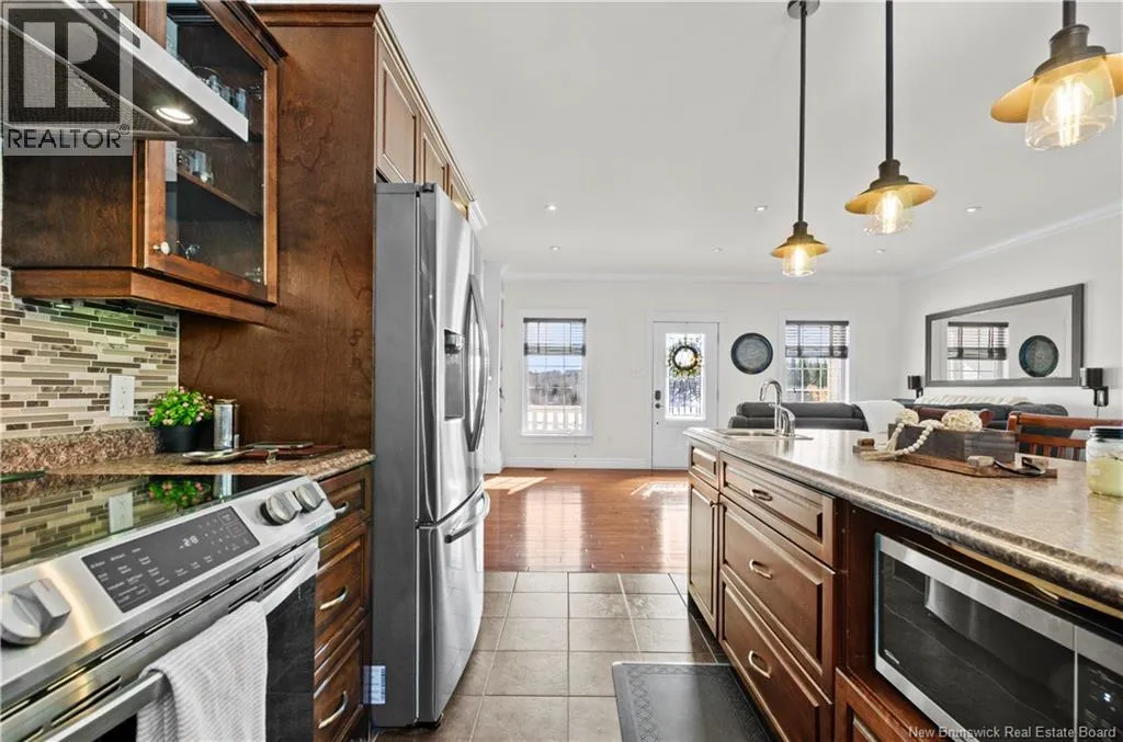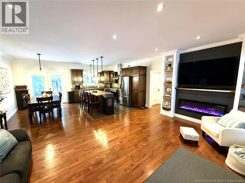Route 148 to Fallsview Lane Welcome home to this pristine 3-bedroom, 2.5-bath open-concept bungalow set on a beautifully manicured 1+ acre lot offering peace, privacy, and direct access to ATV and snowmobile trails. The bright main living area showcases hardwood flooring, ceramic tile in the kitchen, crown moulding, a stunning custom wall unit with built-in electric fireplace, and many freshly painted rooms throughout. The kitchen features dark wood cabinetry with underlighting, an XL centre island with additional storage, and a breakfast bar. The spacious dining area easily accommodates a large table and opens through patio doors to the back deck, gazebo, and sun-filled yard - perfect for enjoying afternoon sun by the heated 24-ft above-ground pool (48-inch depth, installed 2020) with Hayward heater and chlorine system. The primary suite offers a walk-in closet and 4-piece ensuite, while two additional bedrooms, a full bath, half bath with laundry, and access to the double car garage complete the main level. The lower level includes an oversized family room with room to grow. Ducted heat pump provides efficient heating and central A/C throughout. Appliances included. Septic system features monitoring and alarm. 14x16 shed, gorgeous perennial beds, abundant wildlife, walking trails and Dunbar Falls nearby, plus exceptional neighbours and shared snow removal agreement. Peaceful, serene, pre-inspected and truly move-in ready. Private Lane. (id:27476)