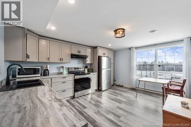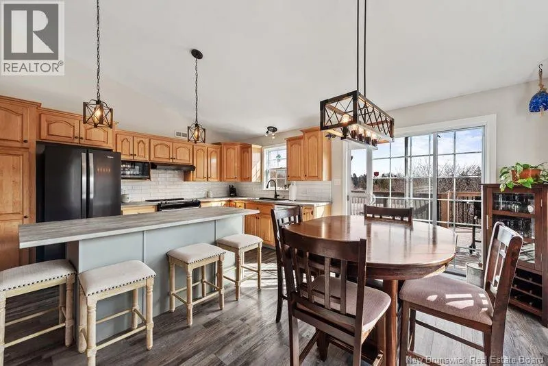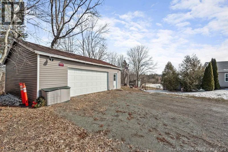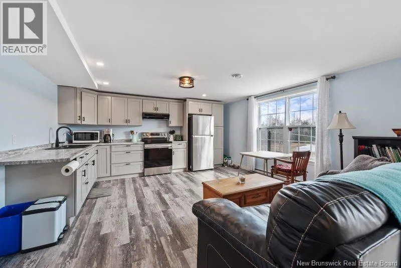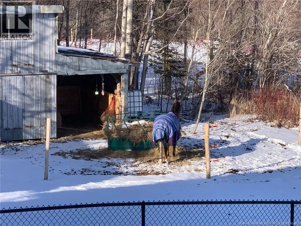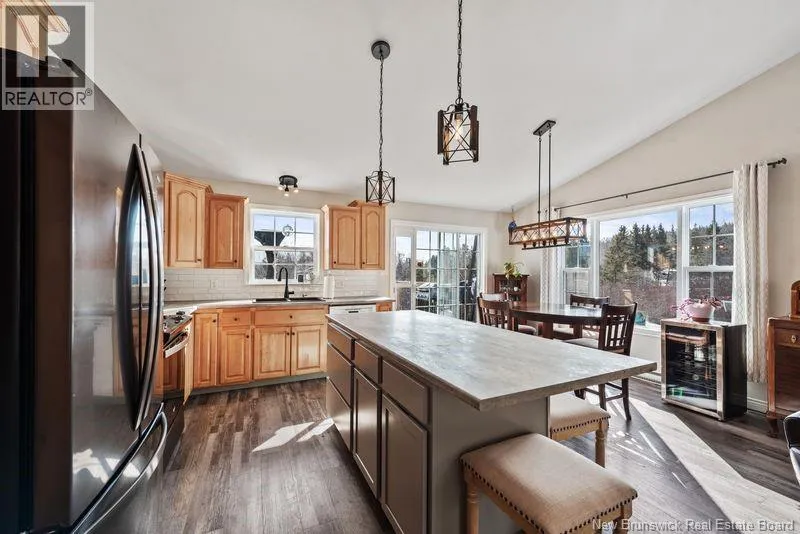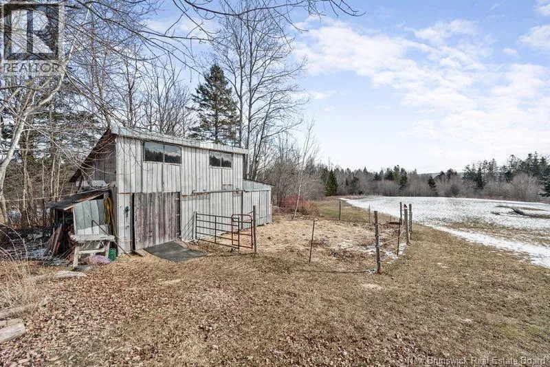 If traveling from Moncton, property is just past Hillsborough on the waterside Set on 11 picturesque acres, this property offers exceptional versatility, including a fully finished 1-bedroom in-law suite and a great little hobby farm! The main floor features a bright, open-concept kitchen, dining, and living area highlighted by a vaulted ceiling. The kitchen is equipped with a spacious island, pantry, and patio doors that lead to a large, updated deck overlooking your acreage and beautiful views. This level also includes a primary bedroom with a 4-piece ensuite, two additional bedrooms, and a full family bathroom. Both main floor bathrooms have been remodeled. The walkout basement is flooded with natural light and includes a 1-bedroom in-law suite including a full kitchen (suite completed just four years ago), a shared laundry area, and two storage rooms. With its own private entrance and full-sized windows, the suite feels anything but like a basement apartment. Additional features include a generator panel for peace of mind and 2 mini split heat pumps. Outside, youll find a 24 x 28 ft detached garage, a small barn with a run in (currently set up for horses), a storage shed, a fenced dog area, open pasture, and a charming firepit perfect for enjoying the private backyard. Recent updates include lots of new flooring, modern lighting, and fresh paint. The property is further enhanced by apple trees, a stream running through the backyard, and walking trails, truly a special place to call home. (id:27476)